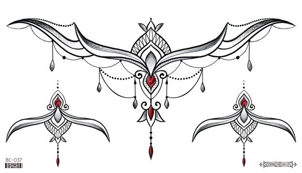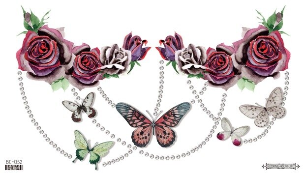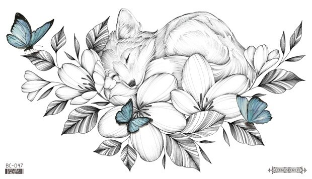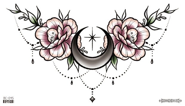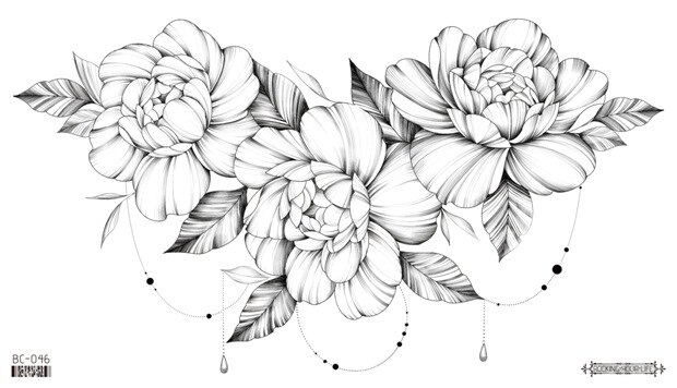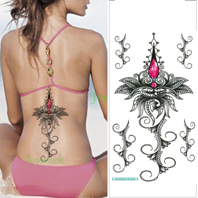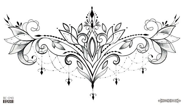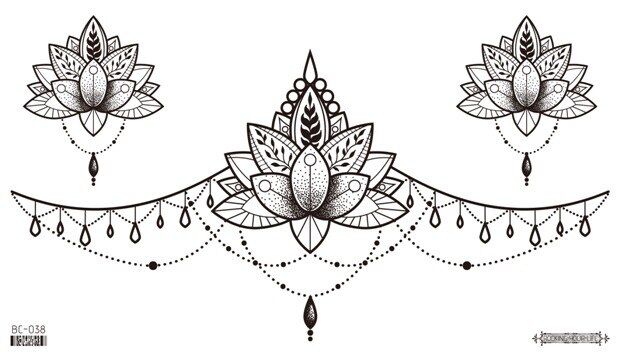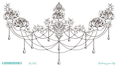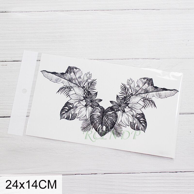 Sdrawing Temporary Tattoo Sticker leaf flower plant black sketch Fake Tatoo Breast Chest Back Belly Flash Tatto For Women Girl