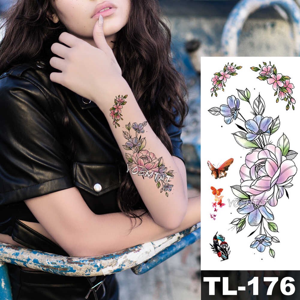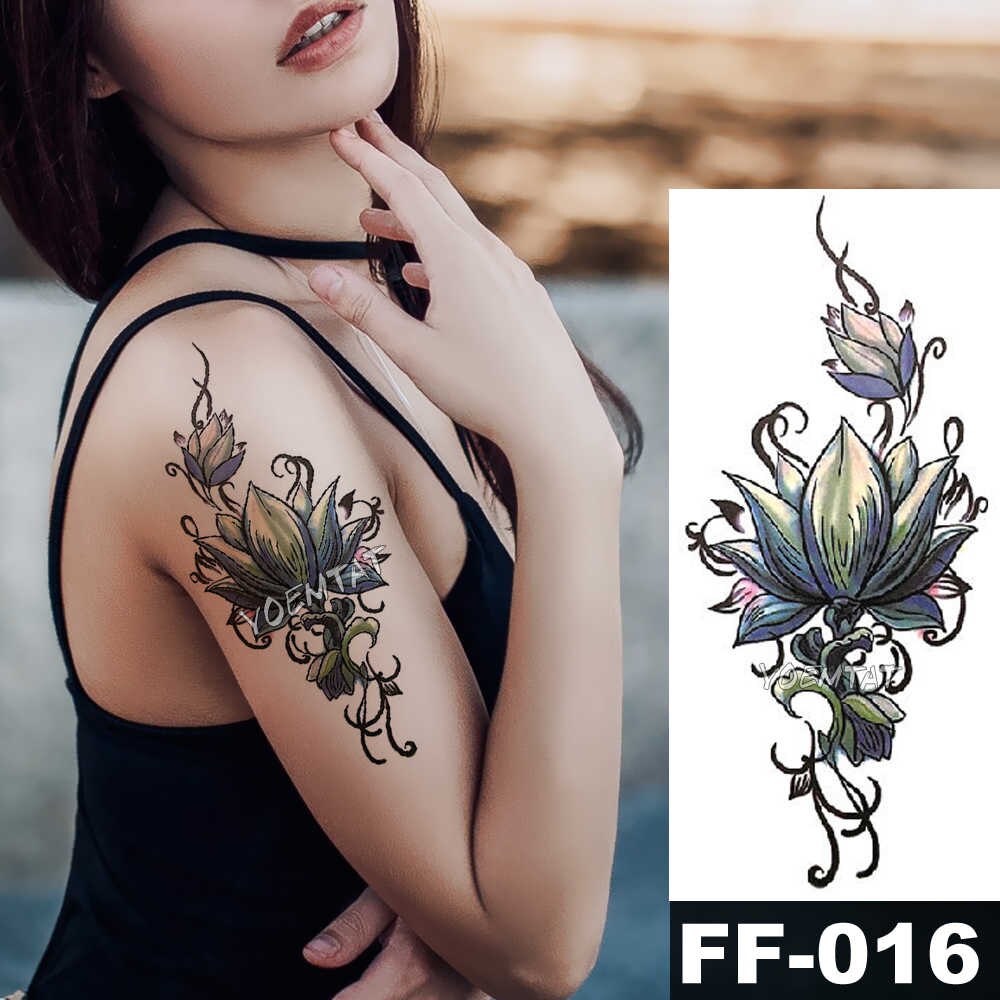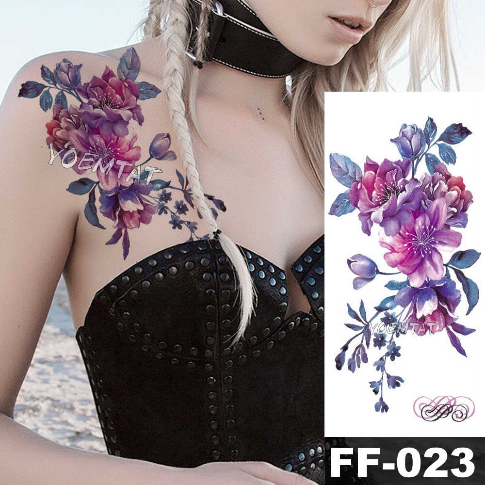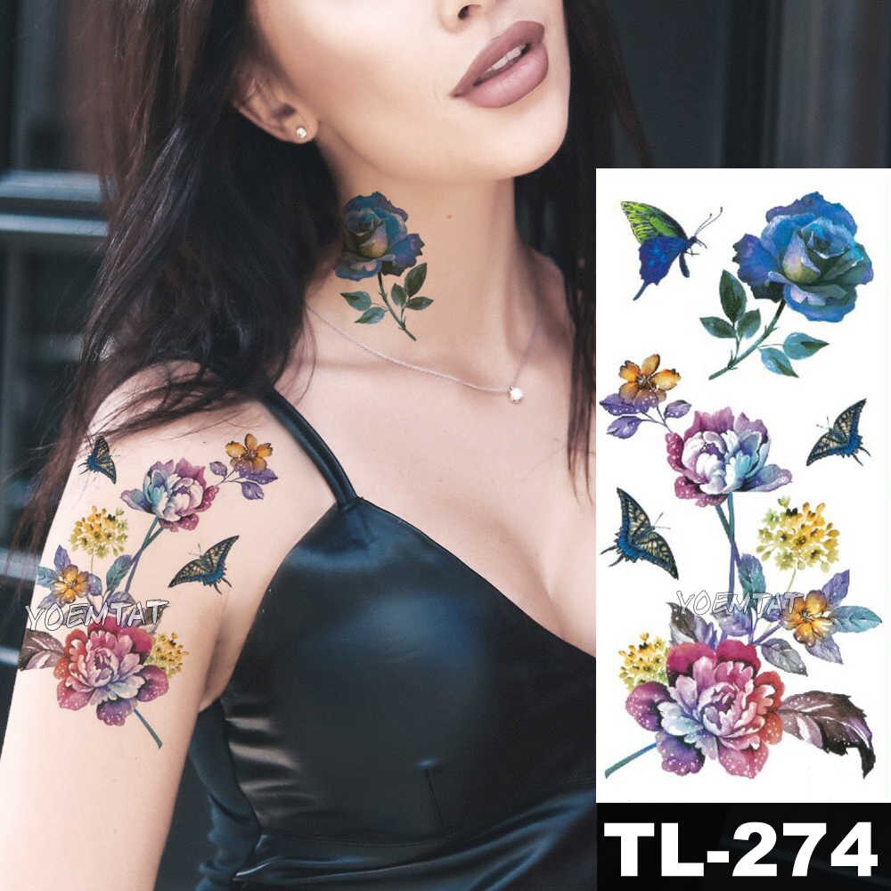 Sdrawing Watercolor Rose Lily Flower Waterproof Tattoo Stickers Women Body Chest Art Temporary Tatto Girl Waist 3D Flowers Tatoo