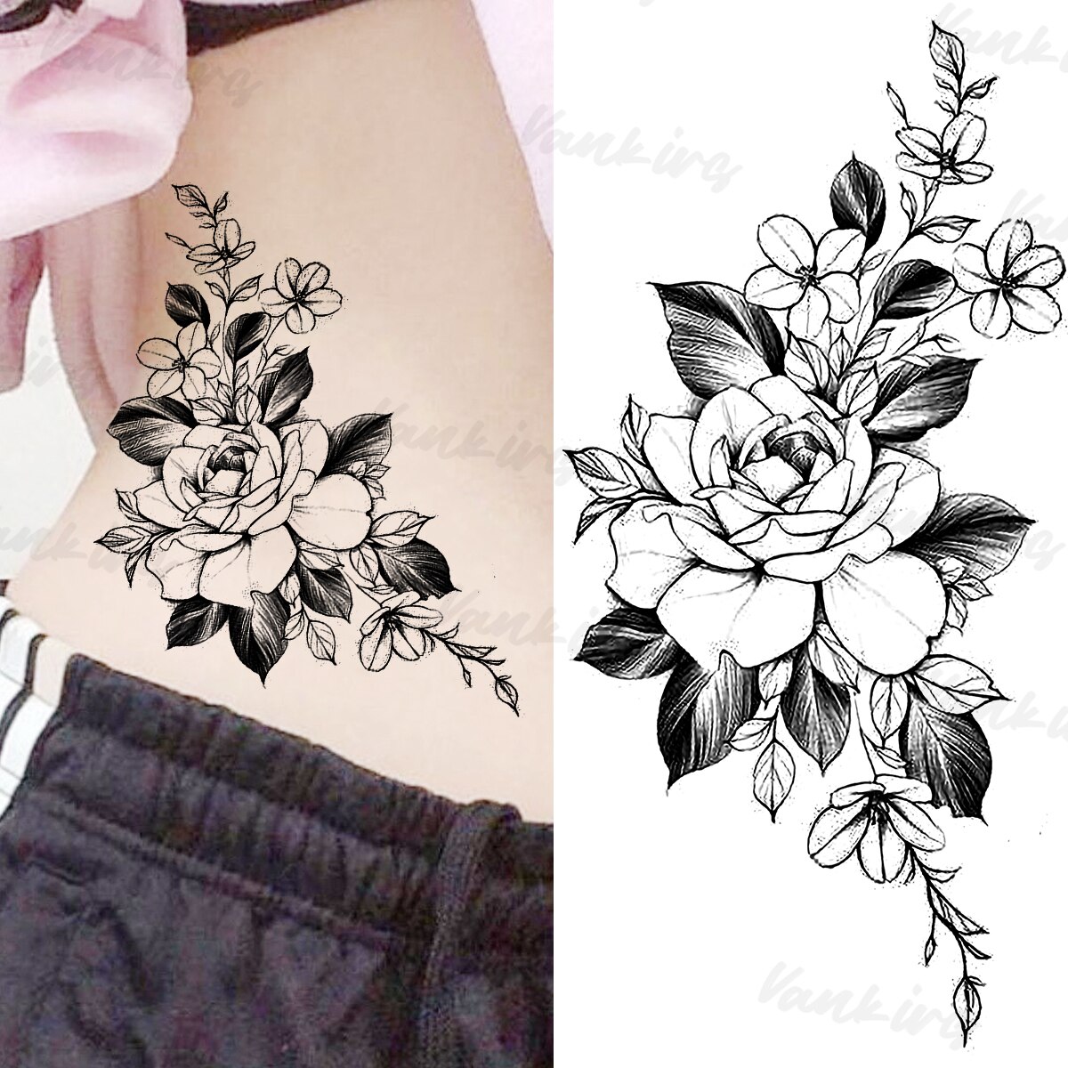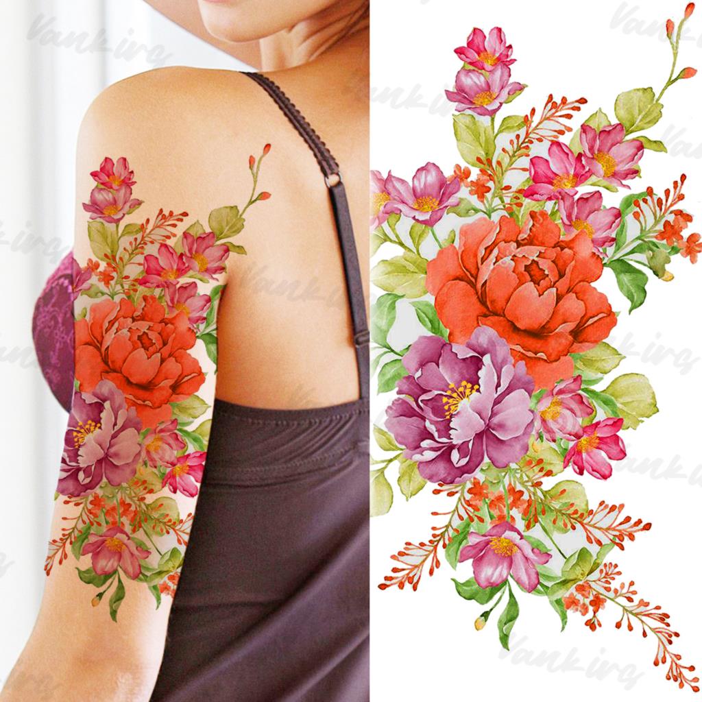 Sdrawing Flower Temporary Tattoos For Women Girls Realistic Lavender Butterfly Flower Fake Tattoo Sticker Forearm Body Tatoos 3D
