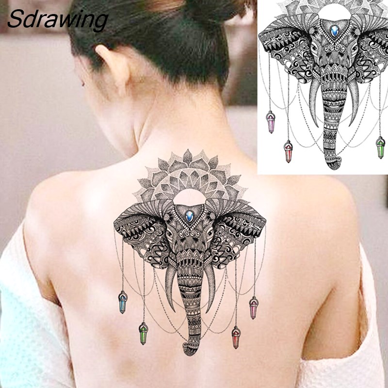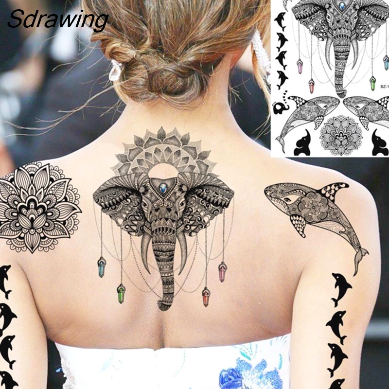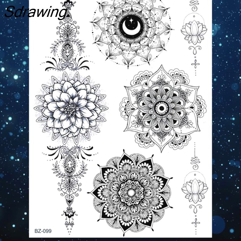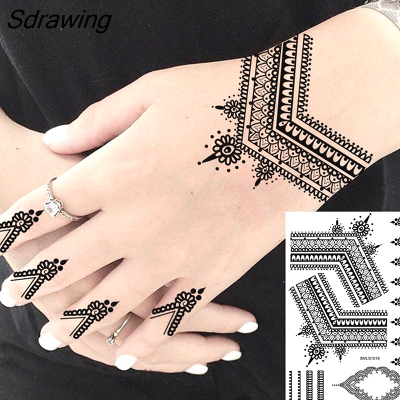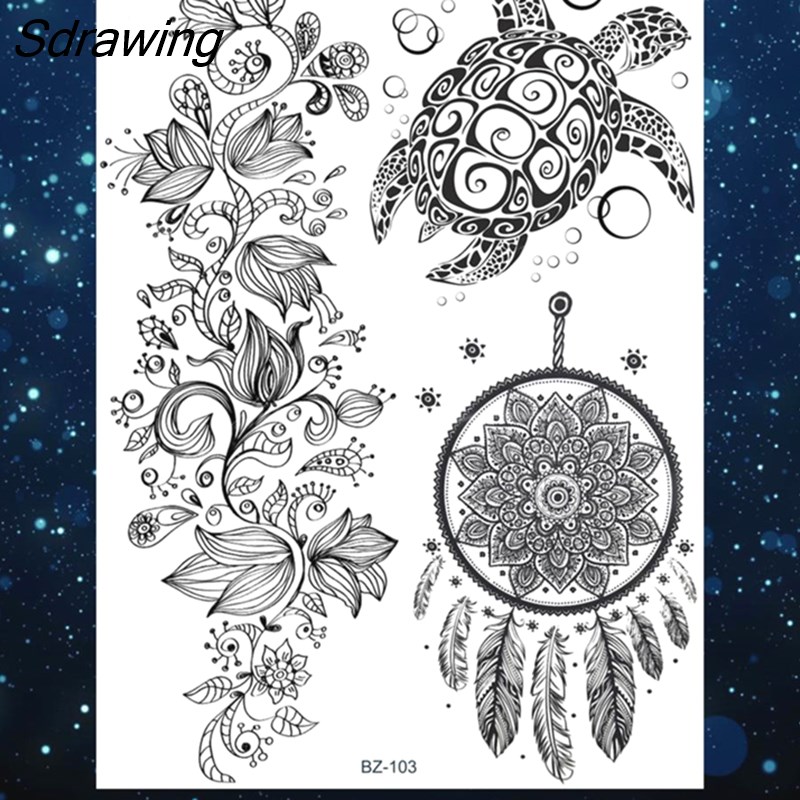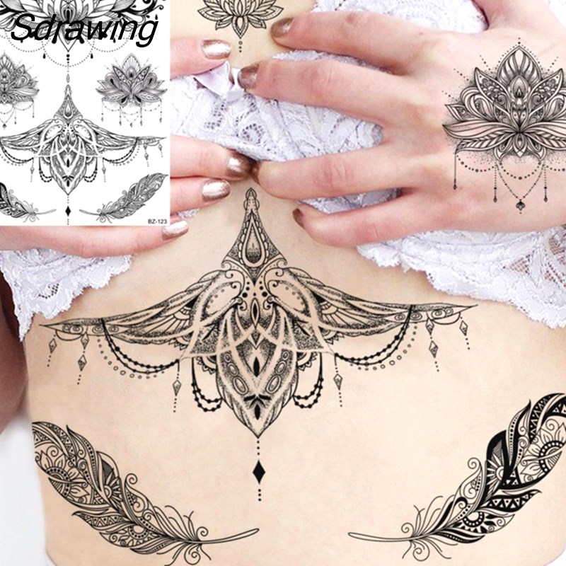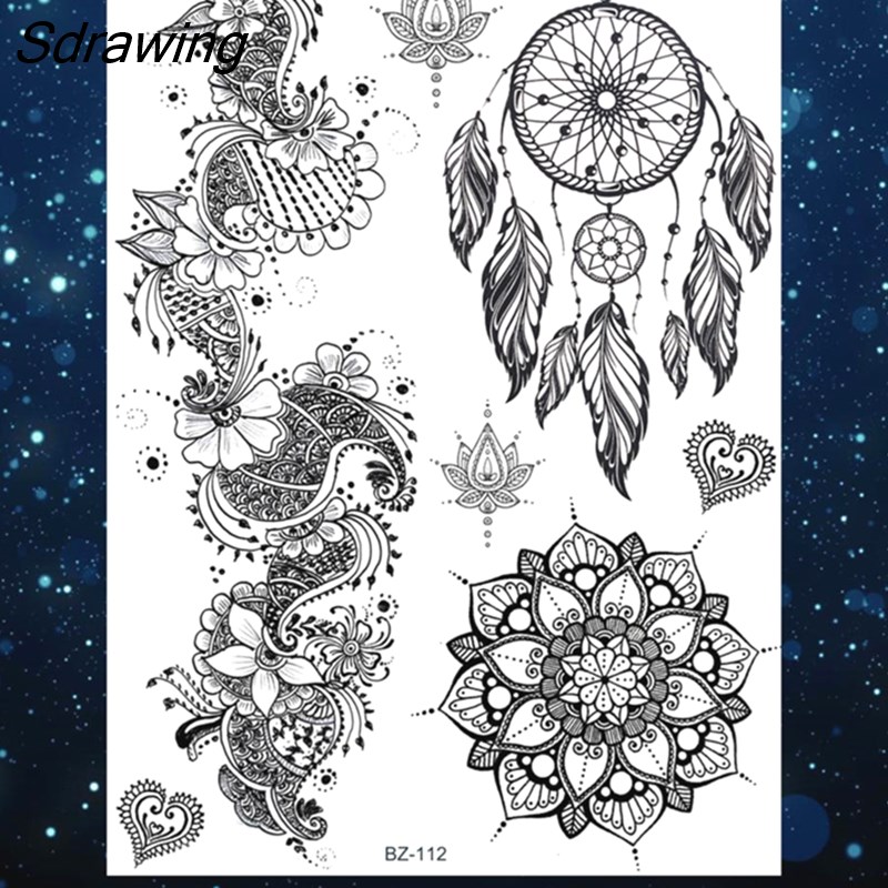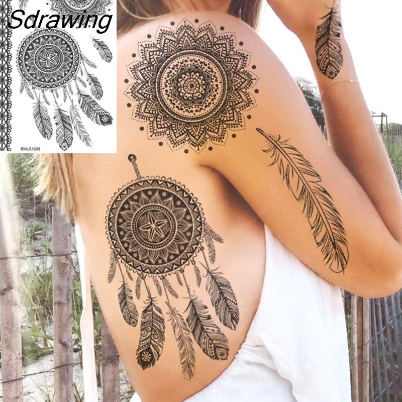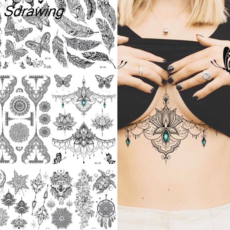 Sdrawing Henna Temporary Tattoos For Women Girls Feather Butterfly DreamCatcher Fake Gem Tattoo Sticker Chest Arm Tatoos Tribal 328-1