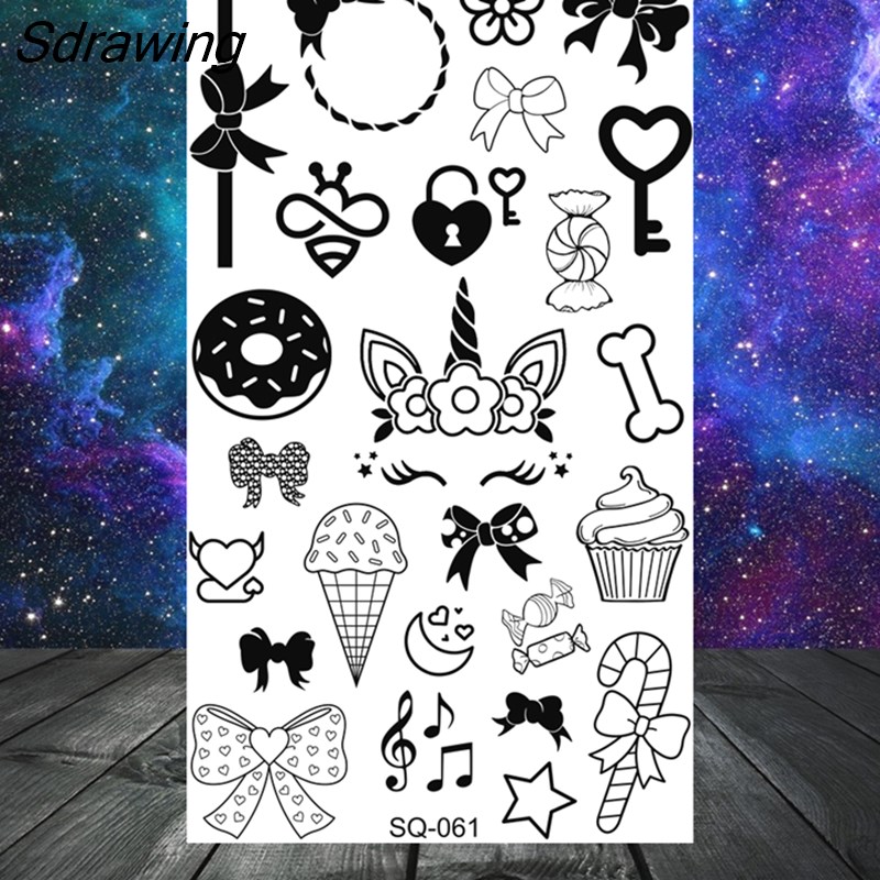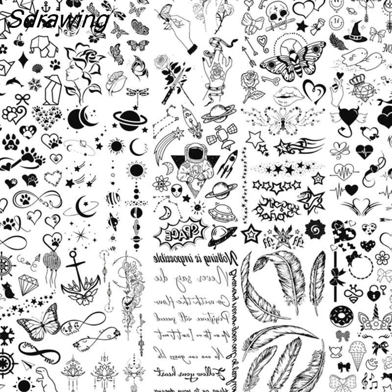 Sdrawing Stars Moon Sun Temporary Tattoos For Women Kids Girl Butterfly Feather Letters Fake Tattoo Neck Arm Hands Small Tatoos