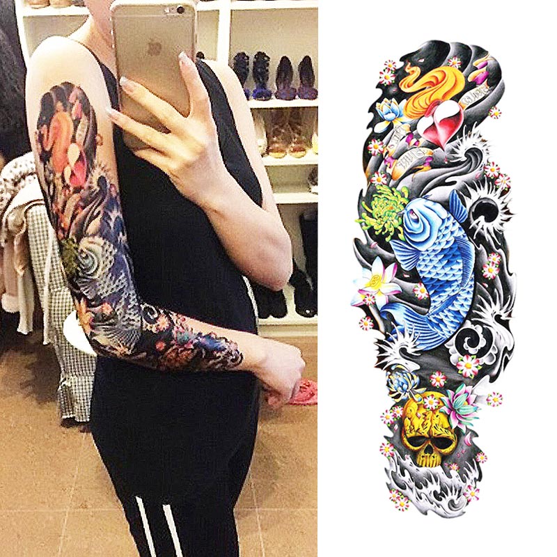 Full Flower Arm Tattoo Sticker 40models Fish Peacock Lotus Temporary Body paint Water Transfer fake Tatoo sleeve