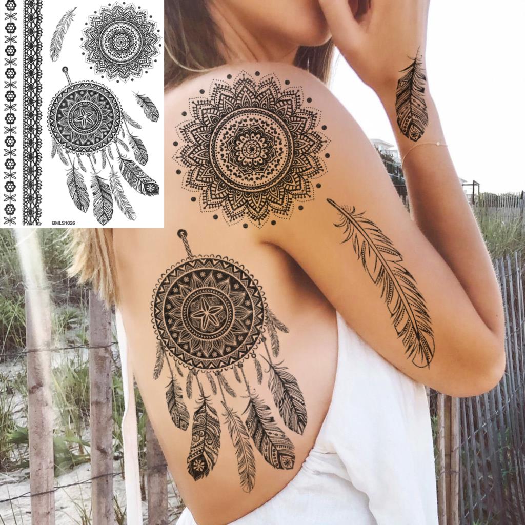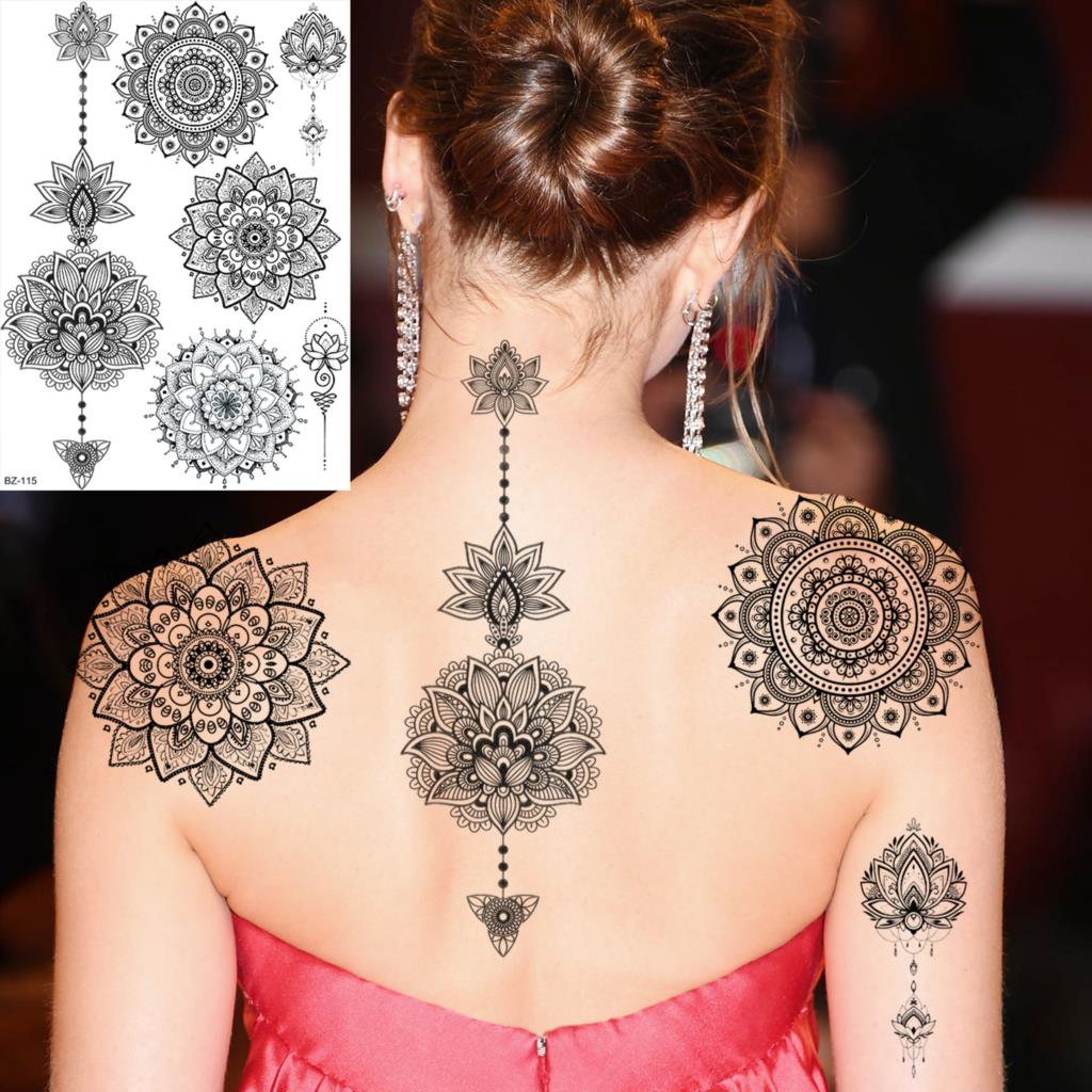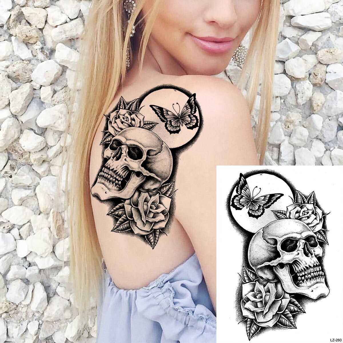 Sdrawing Peony Flower Temporary Tattoos For Women Adults Realistic Compass Moon Pendant Fake Tattoo Sticker Arm Body Tatoos