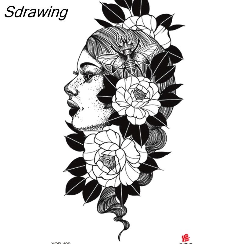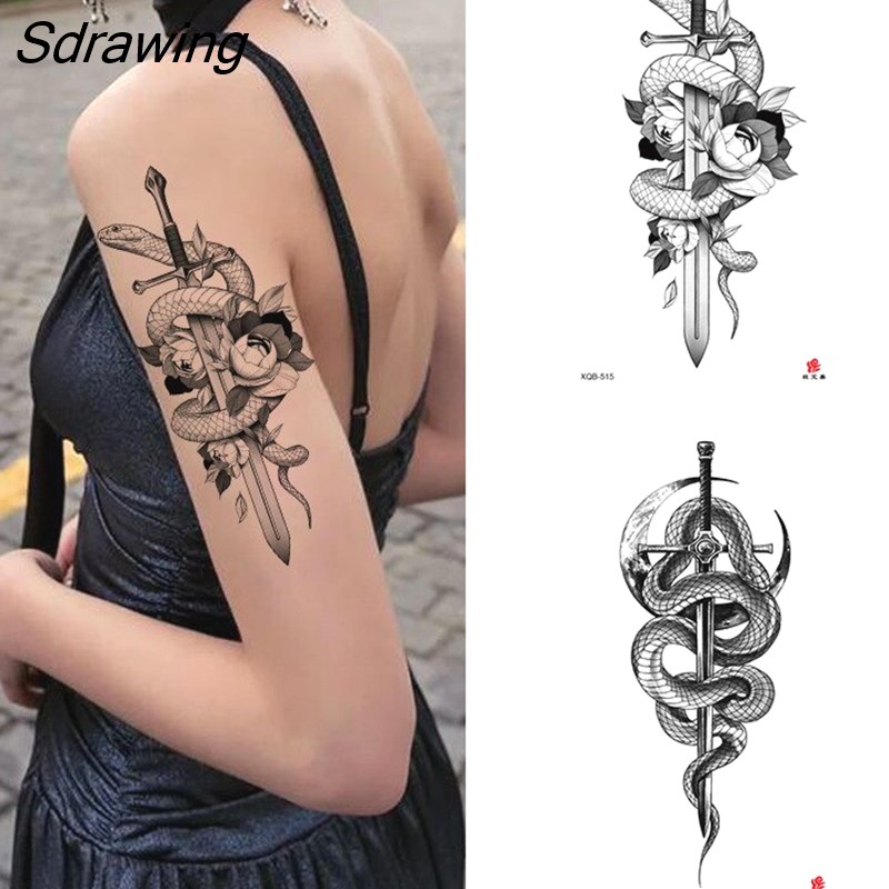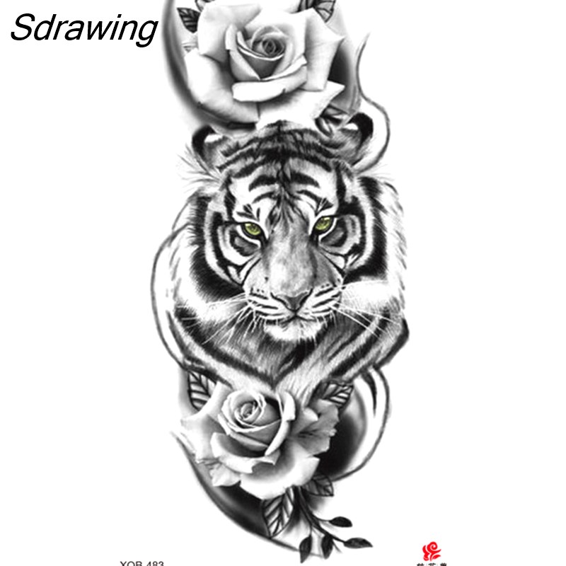 Sdrawing Waterproof Lasting Temporary Tattoo Flower Arm Tattoo Stickers Dark Hot Girl Snake Tiger Lion Fake Tattoo for Women Gifts 328-0