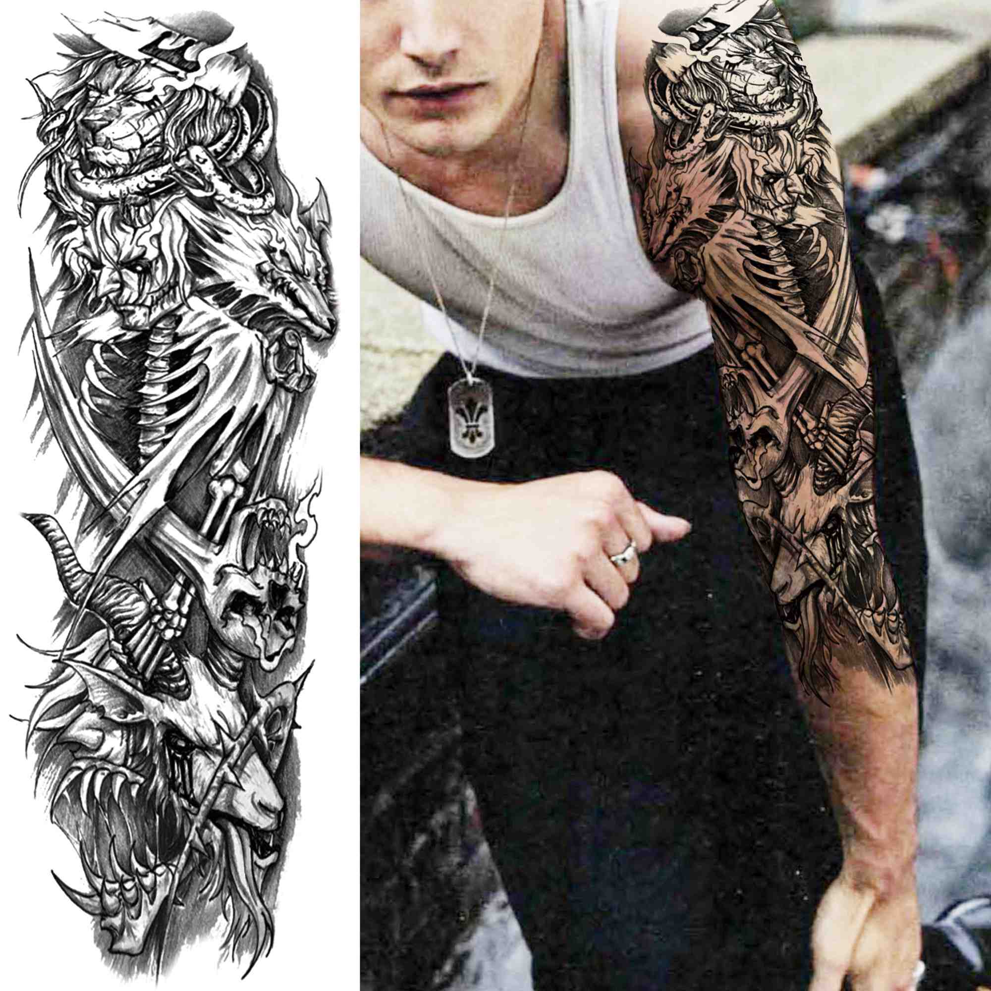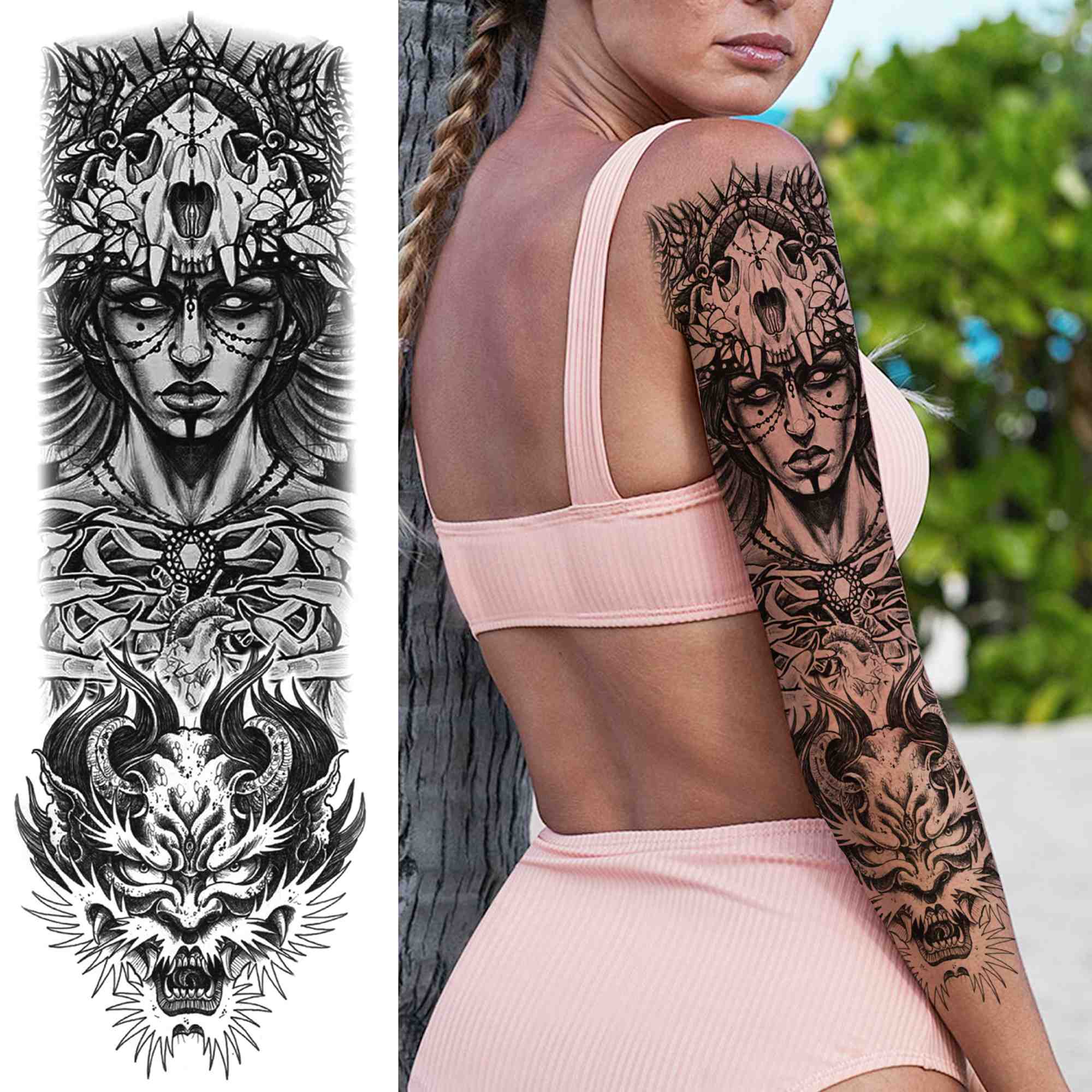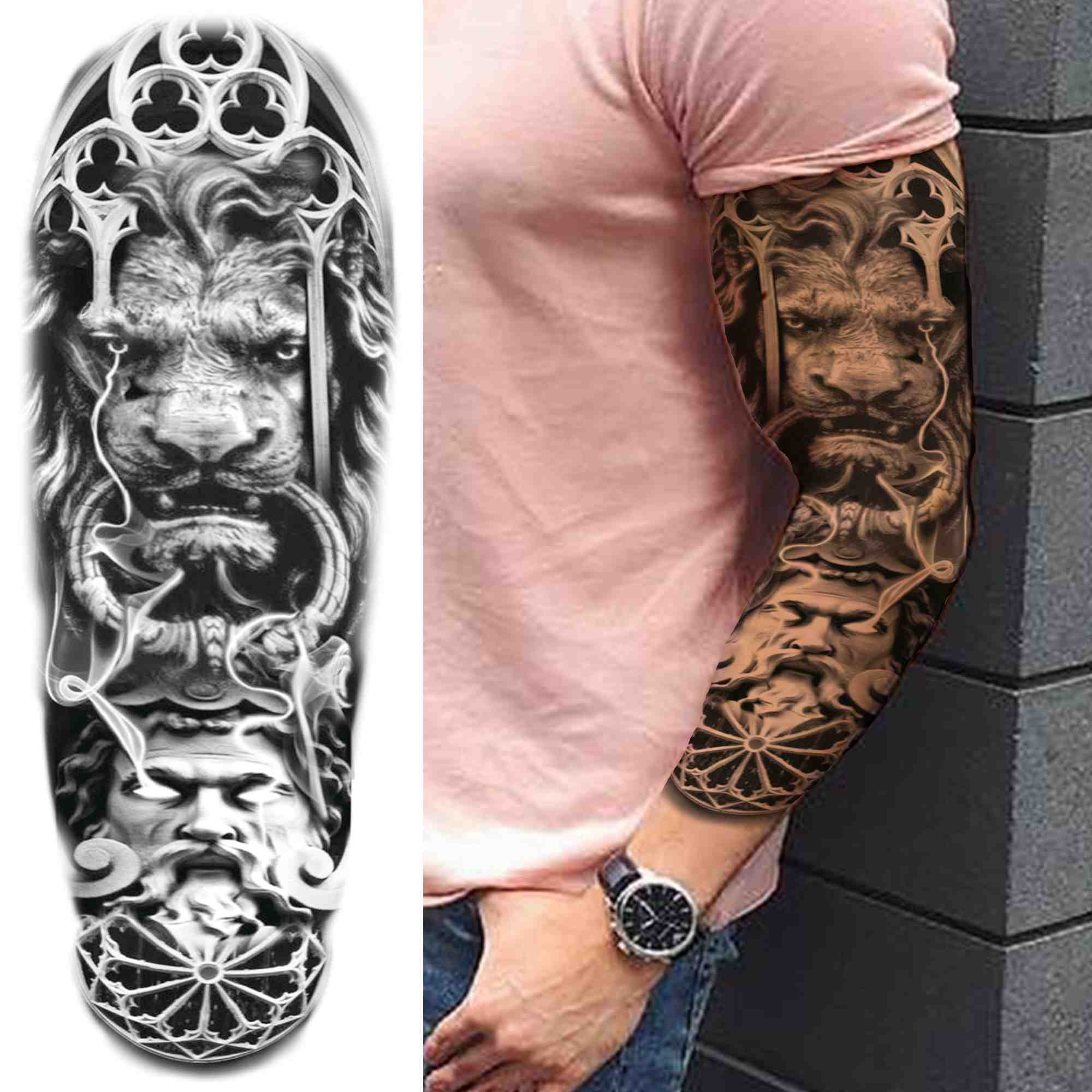 Sexy Girl Flower Temporary Tattoos For Women Men Black Lion Triangle Tattoo Sticker Fake Tribal Full Arm Sleeve Tatoos Paste 923