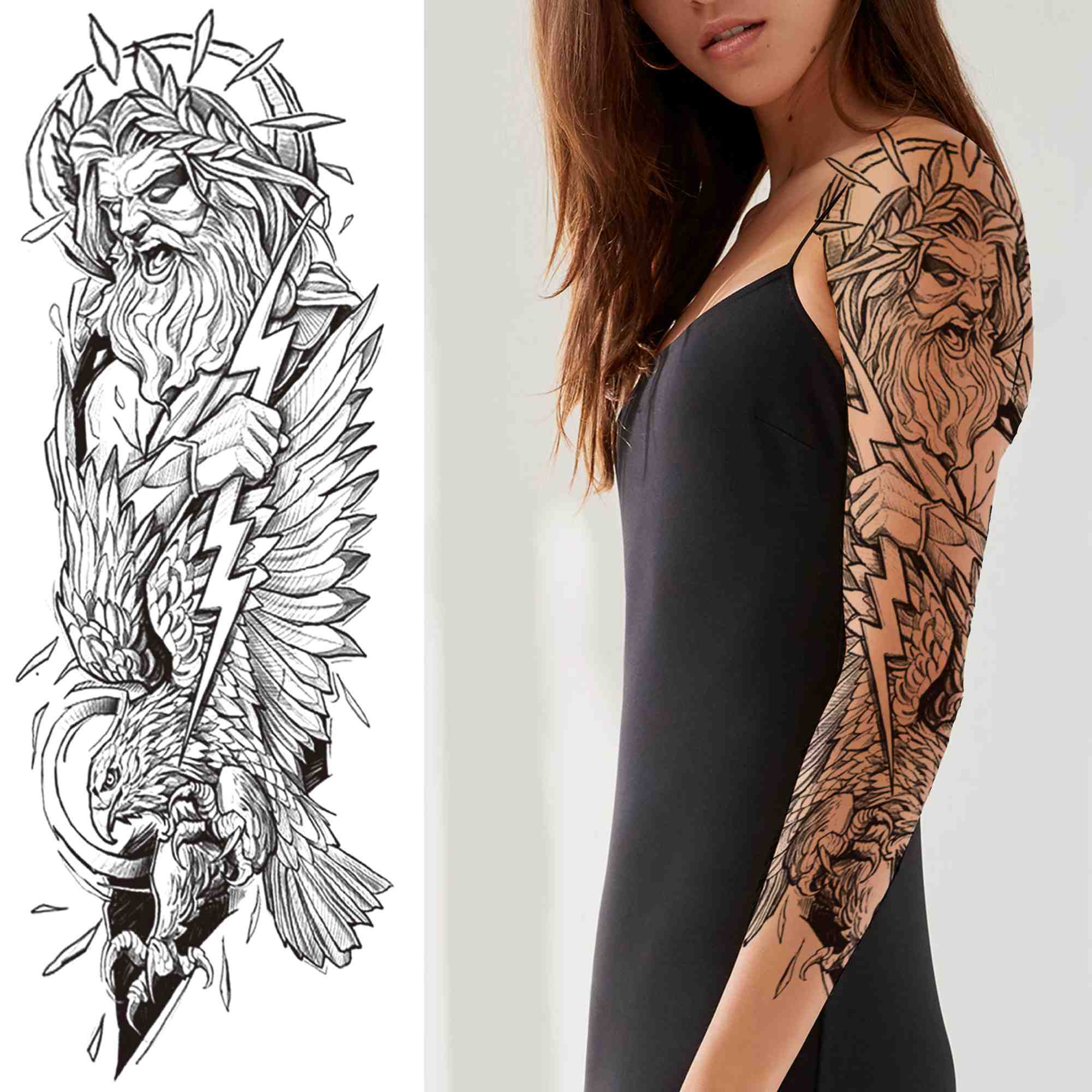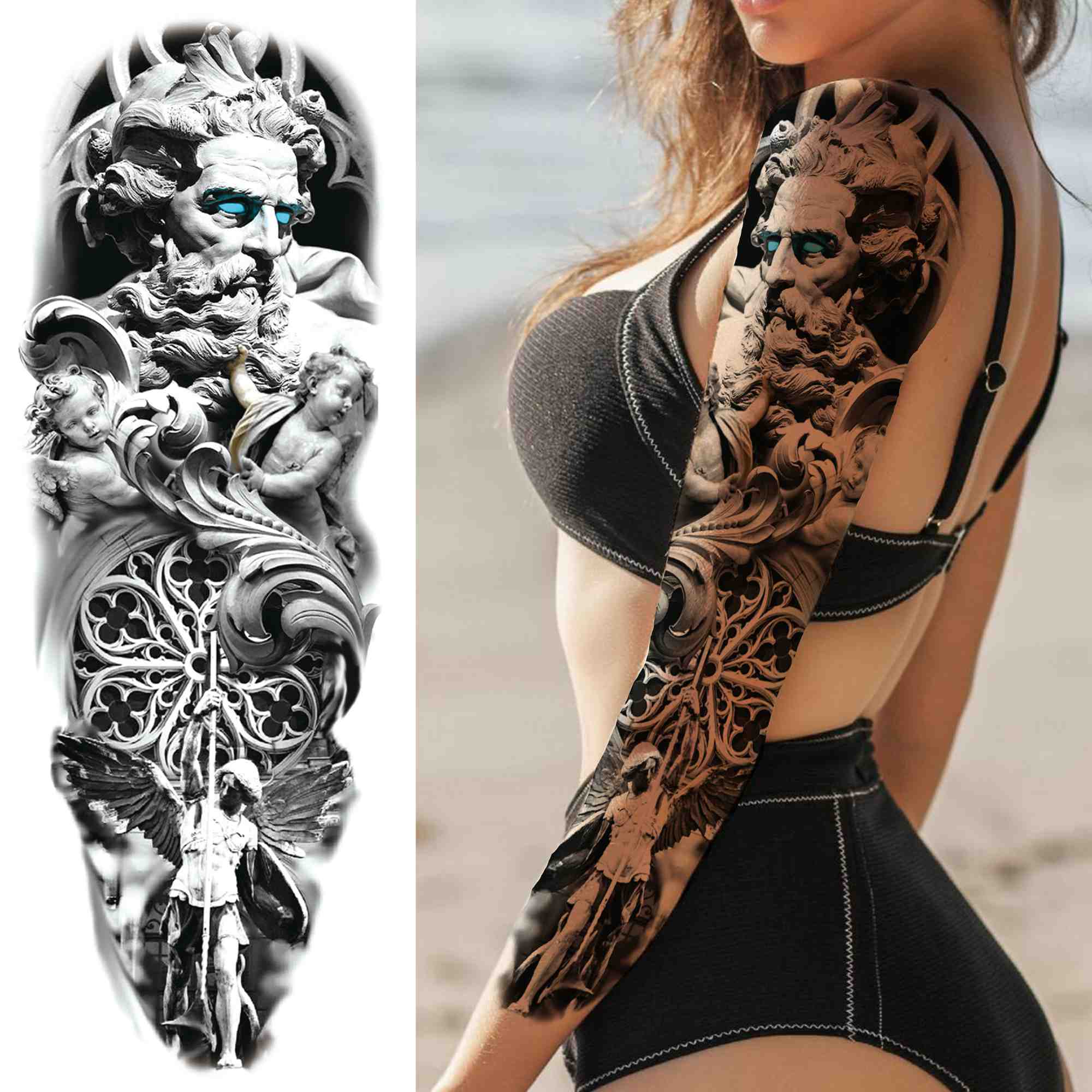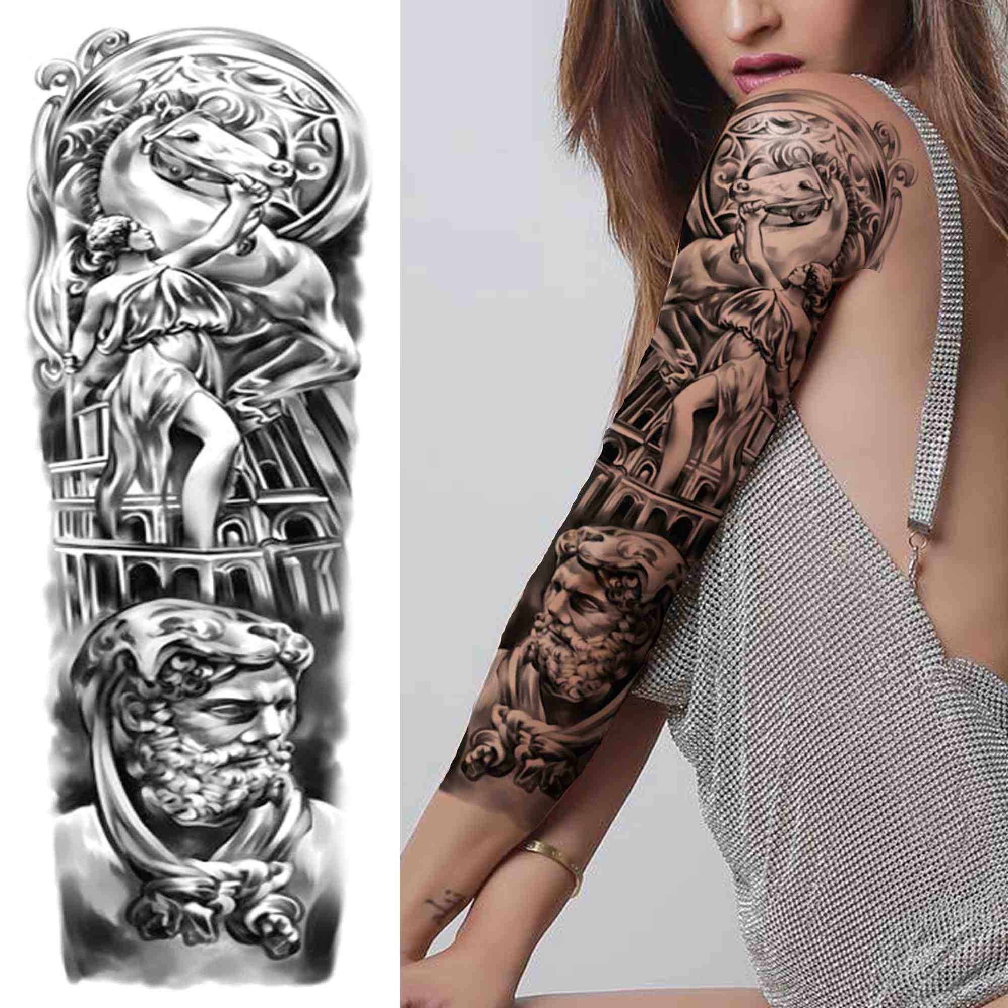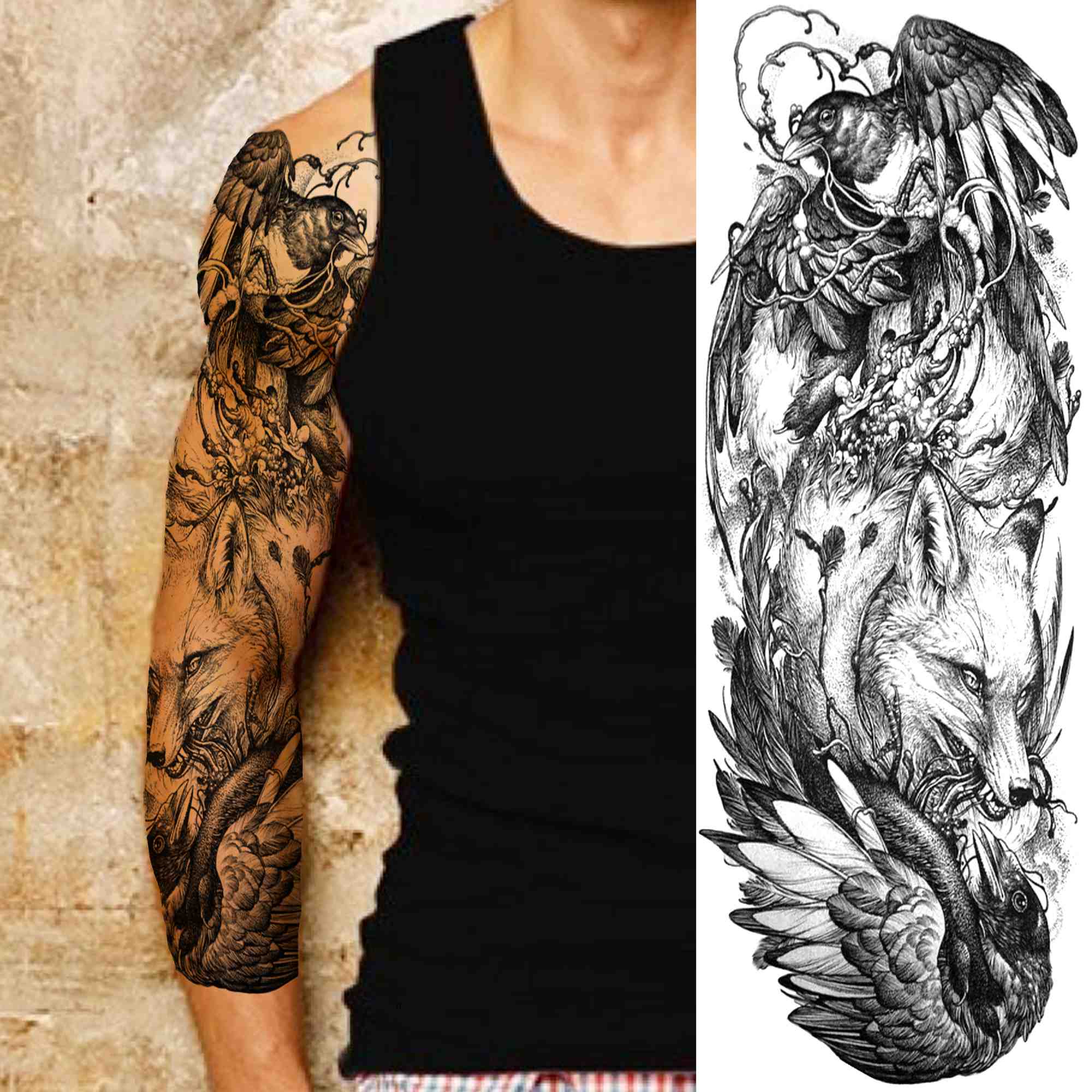 Sexy Girl Flower Temporary Tattoos For Women Men Black Lion Triangle Tattoo Sticker Fake Tribal Full Arm Sleeve Tatoos Paste 923