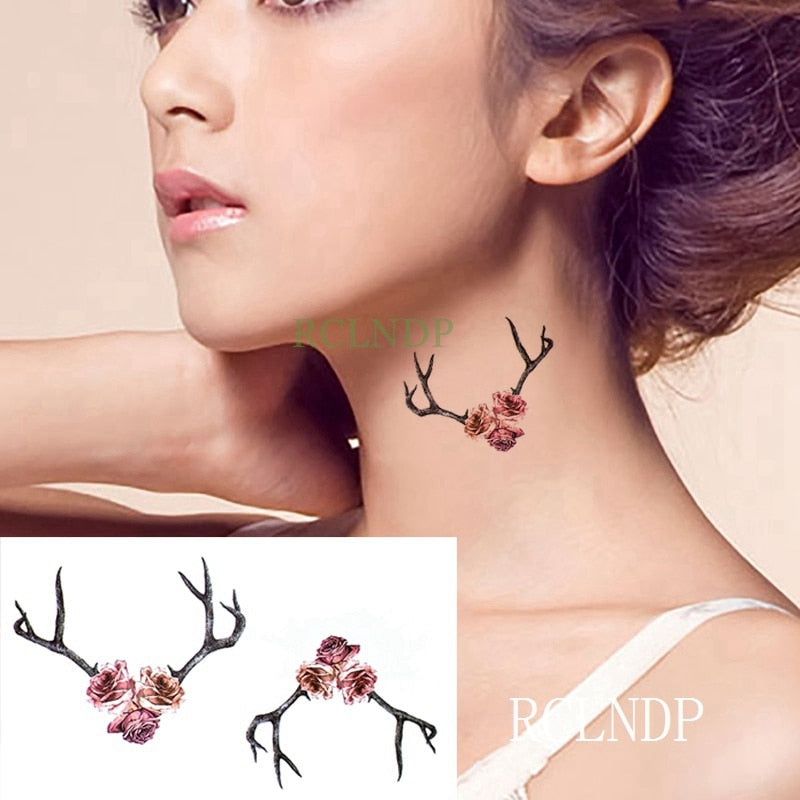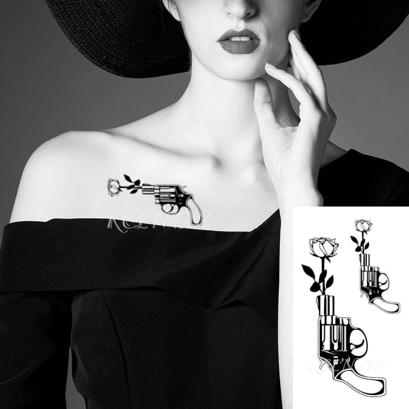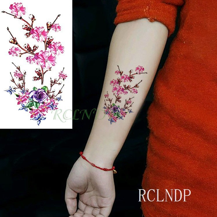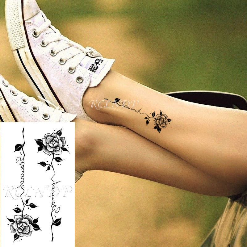 Waterproof Temporary Tattoo Sticker Rose Flower Leaf Letter Black Small Body Art Flash Tatoo Fake Tatto for Kids Girl Men Women