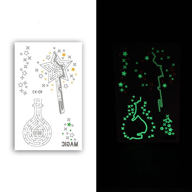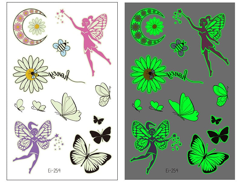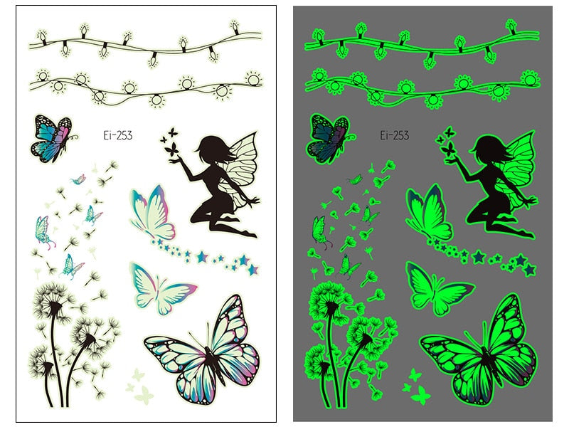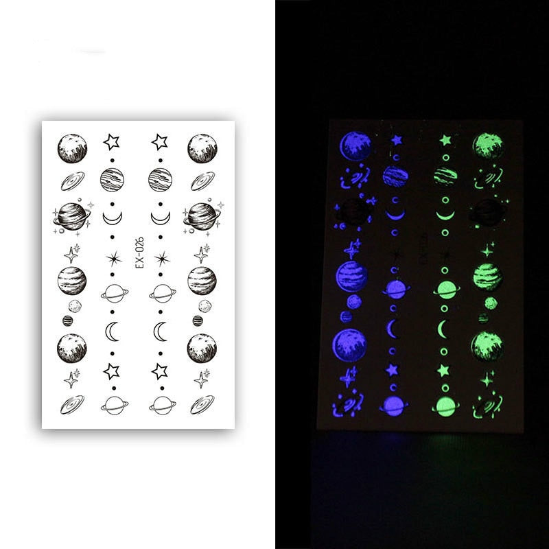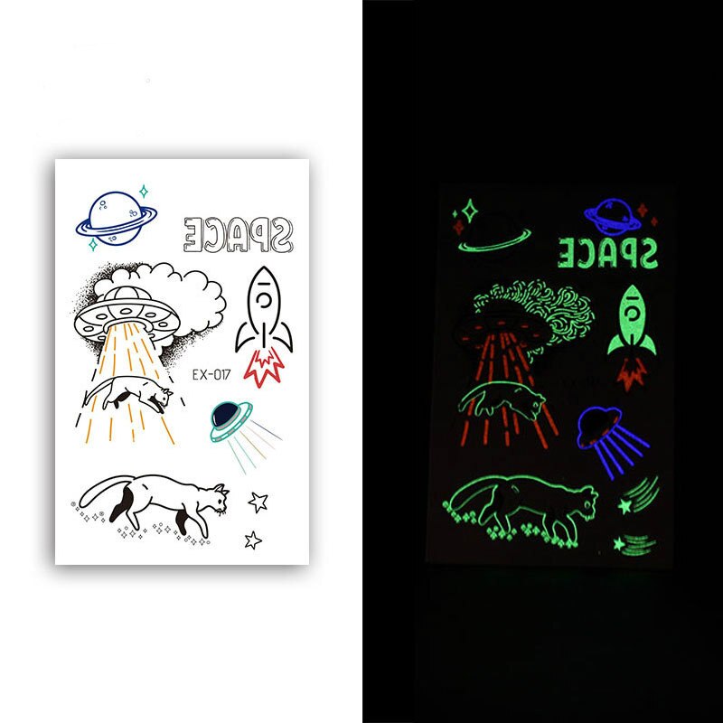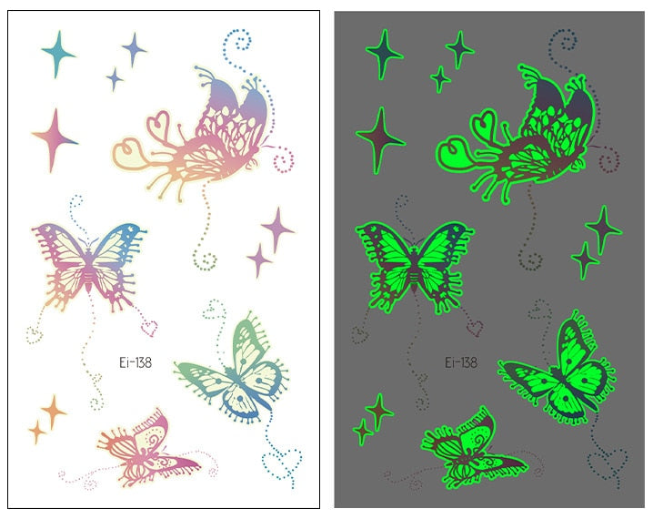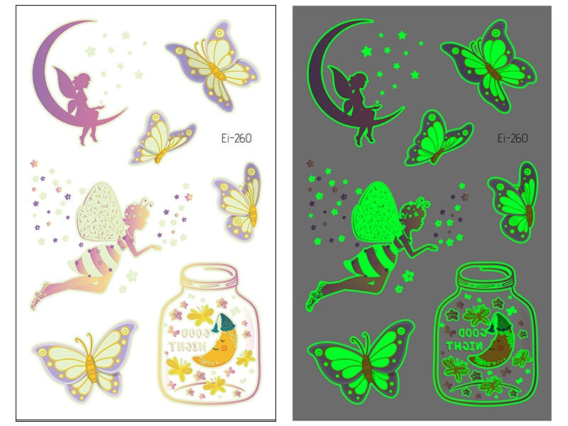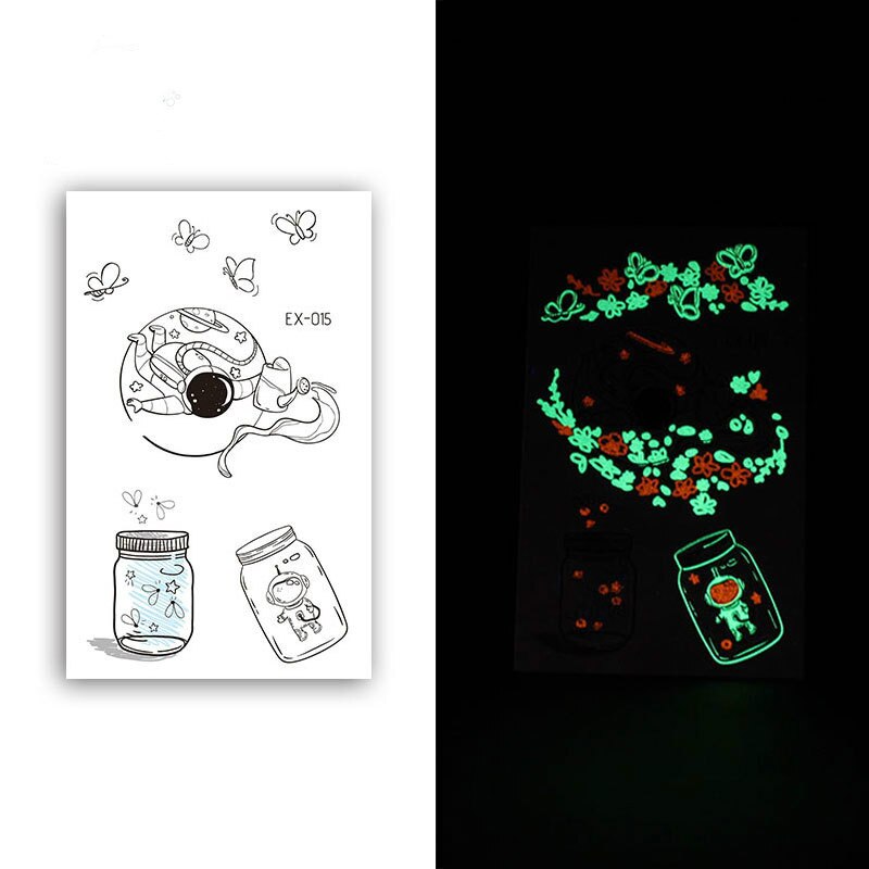 Night Luminous Tattoo Butterfly Starry Star Universe for Kids Fake Tattoo Glowing In Dark Waterproof Temporary Tattoo Stickers