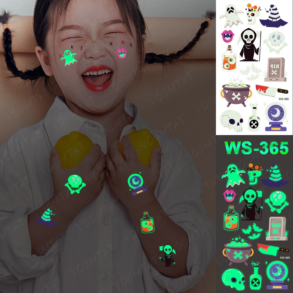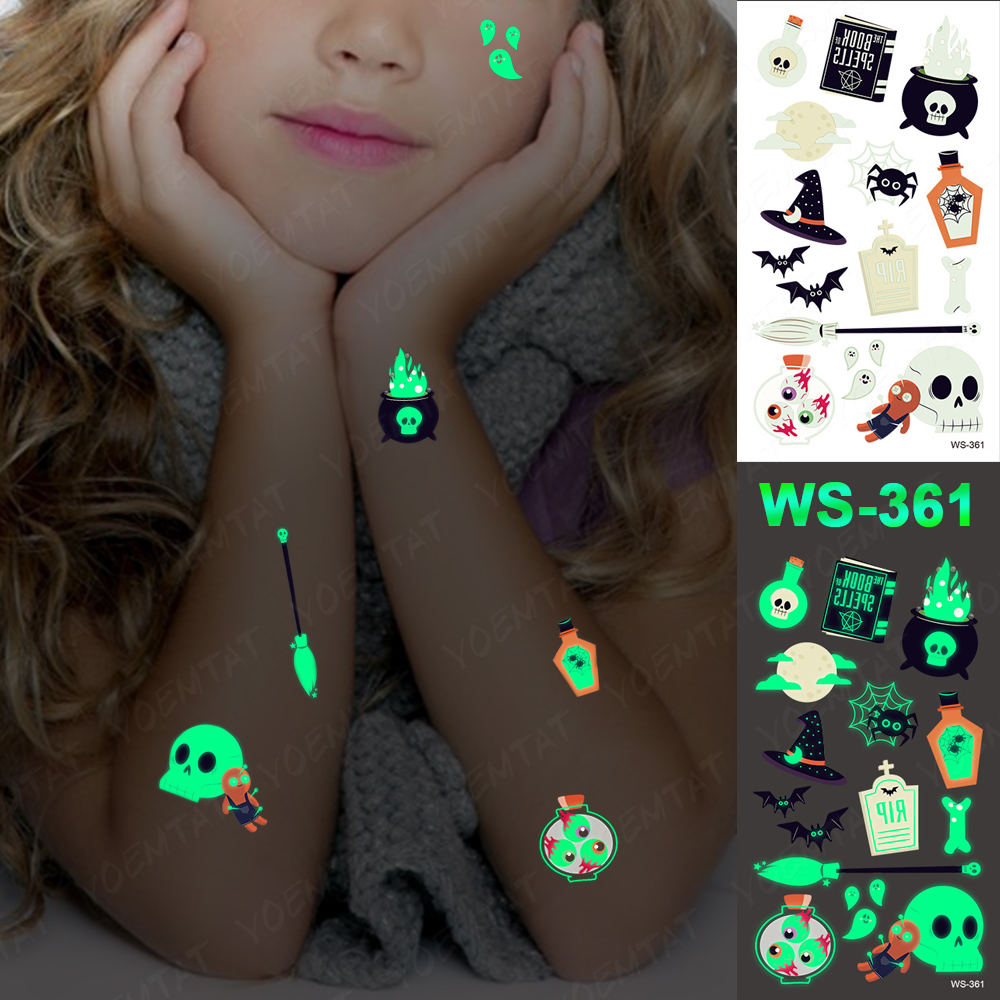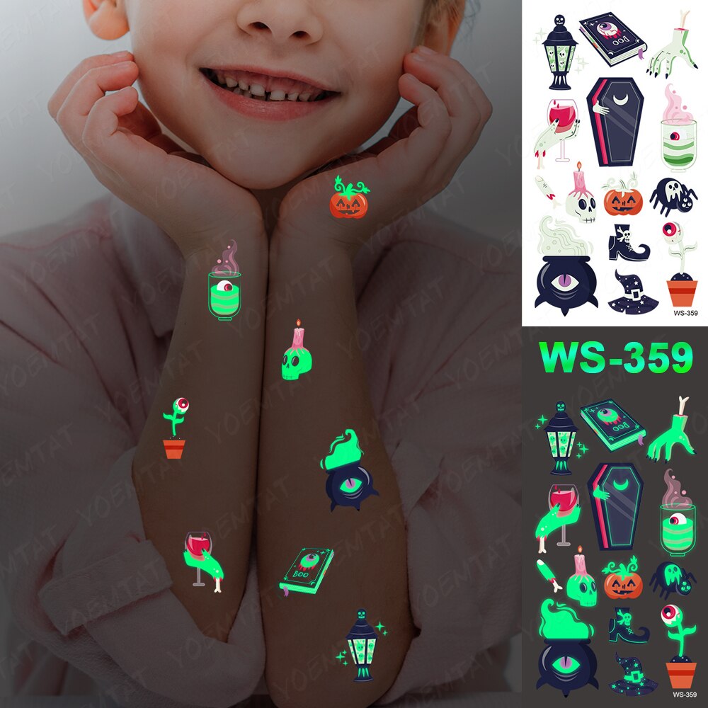 Sdrawing Temporary Luminous Tattoo Sticker Waterproof Pumpkin Skull Tatoo Arm Glowing Tattoos On Child Halloween Party Decor