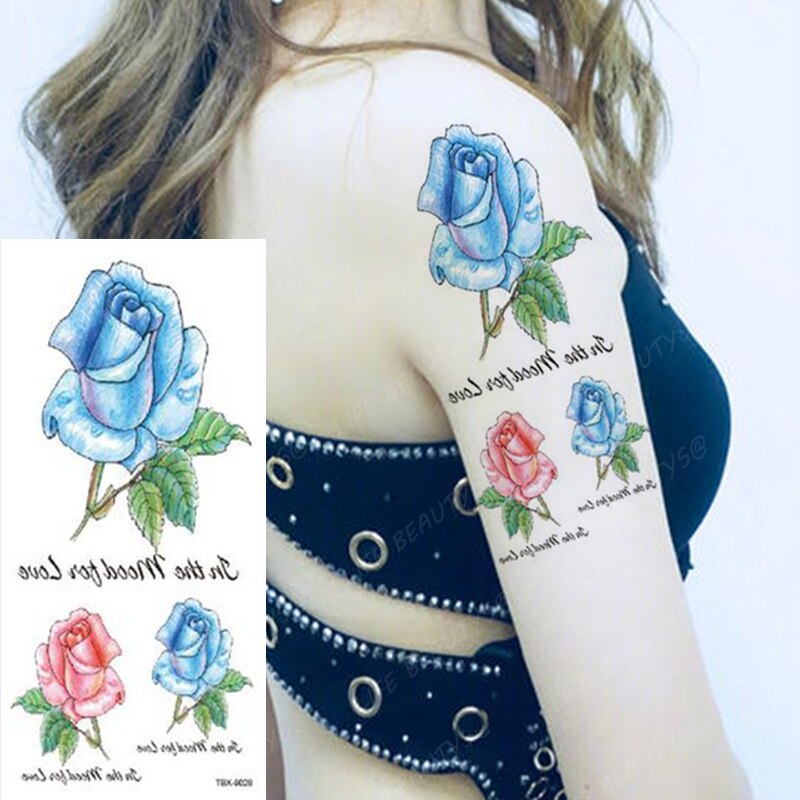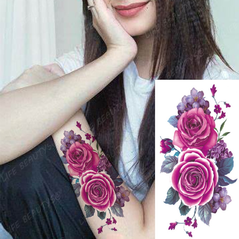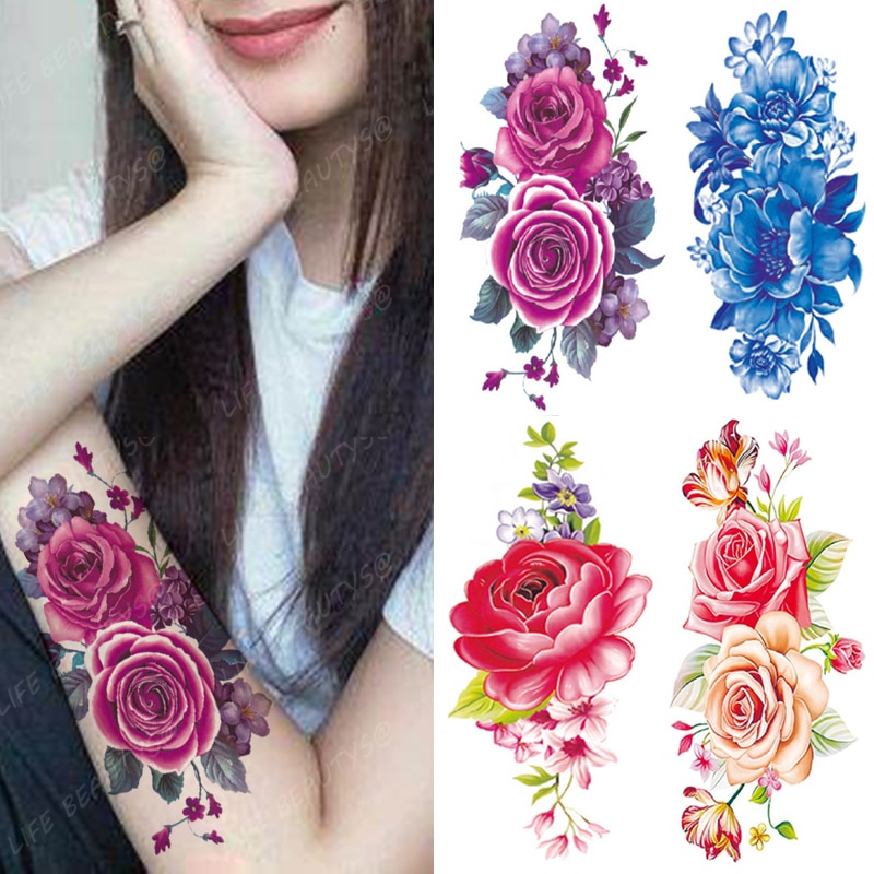 Sdrawing Temporary Flower Tattoos Women Fashion Beauty Rose Butterfly Flash 3D Fake Tattoo Arm Sleeve Pink Blue Sticker Girl