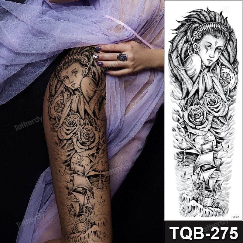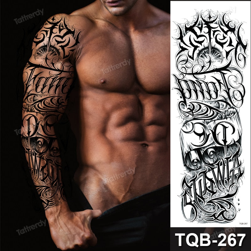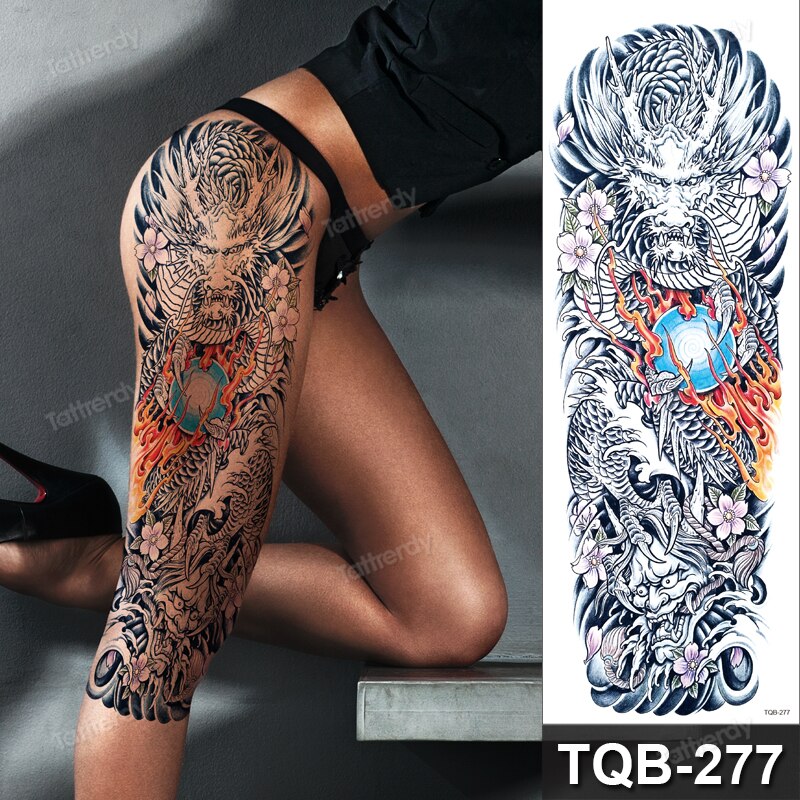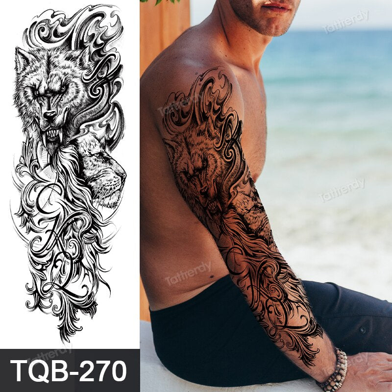 Totem Tribal Dragon Dragon Wolf Temporary Tattoos Full Arm Sleeve Large Body Art Painting Men Adult Sexy Tattoo Waterproof Black