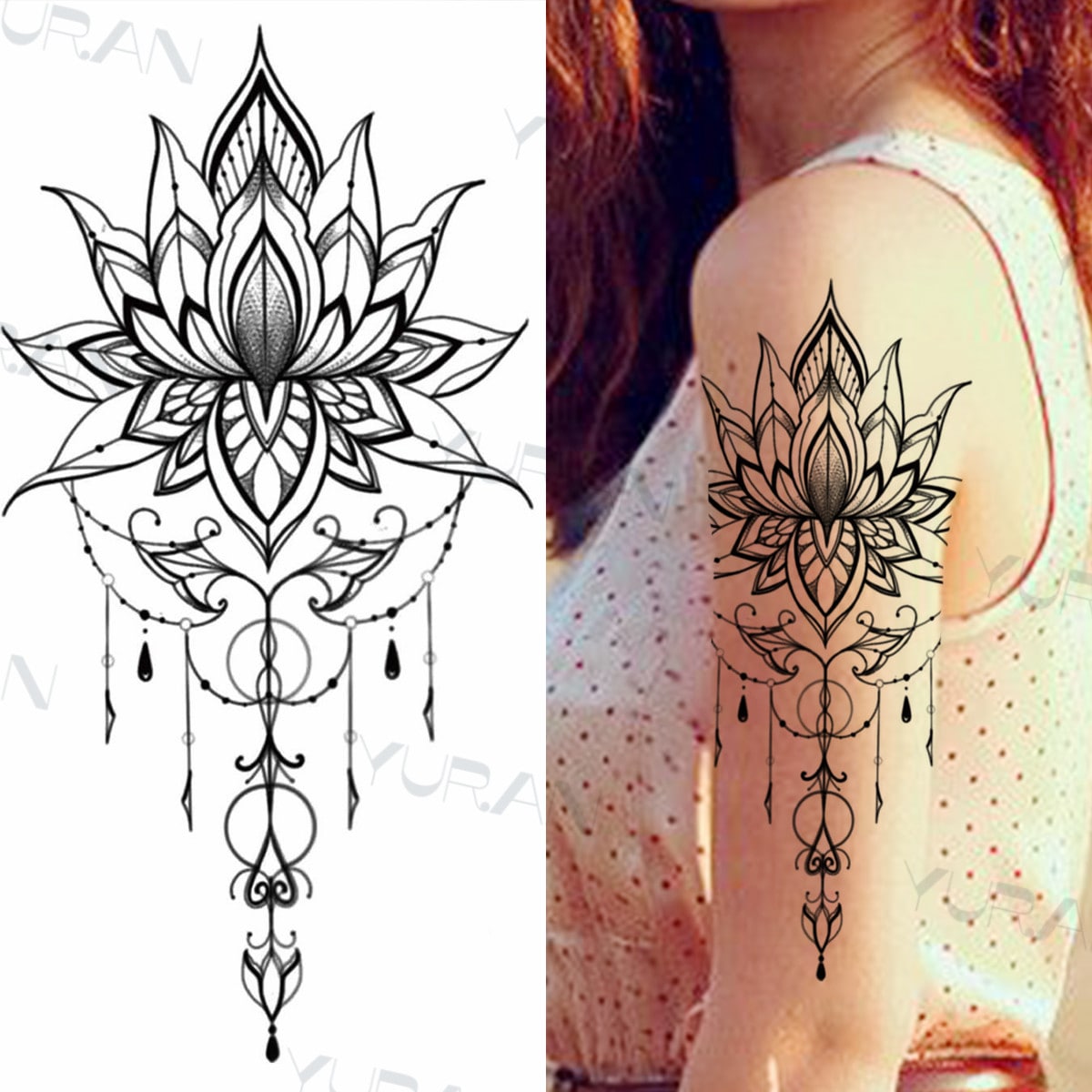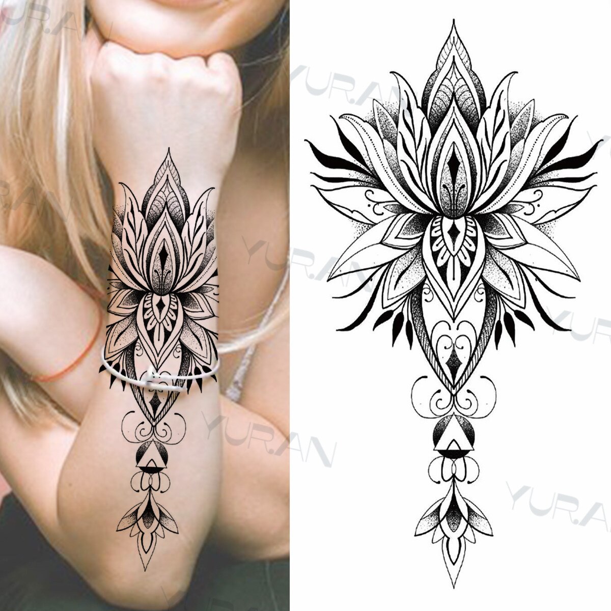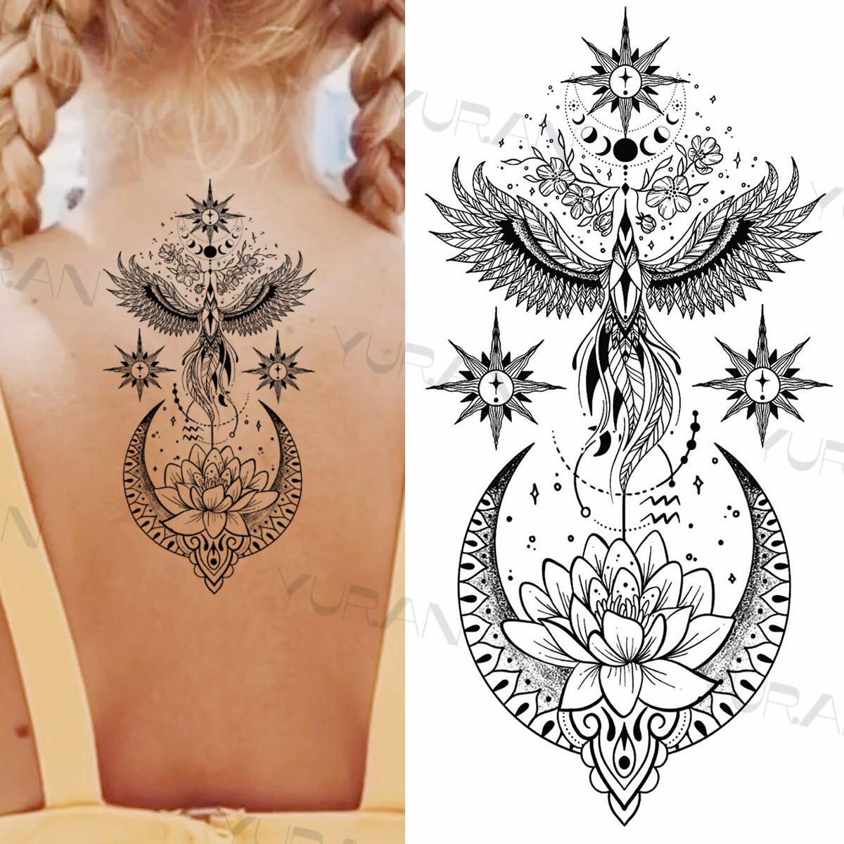 Sdrawing Catcher Rose Flower Temporary Tattoos For Women Adult Henna Moon Feather Owl Fake Tatoos Realistic Sexy Chest Tattoo Paste