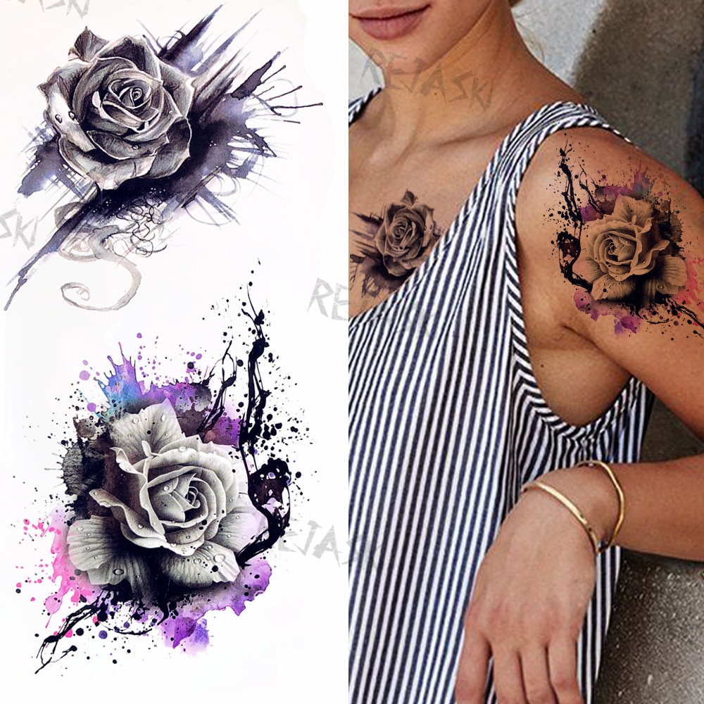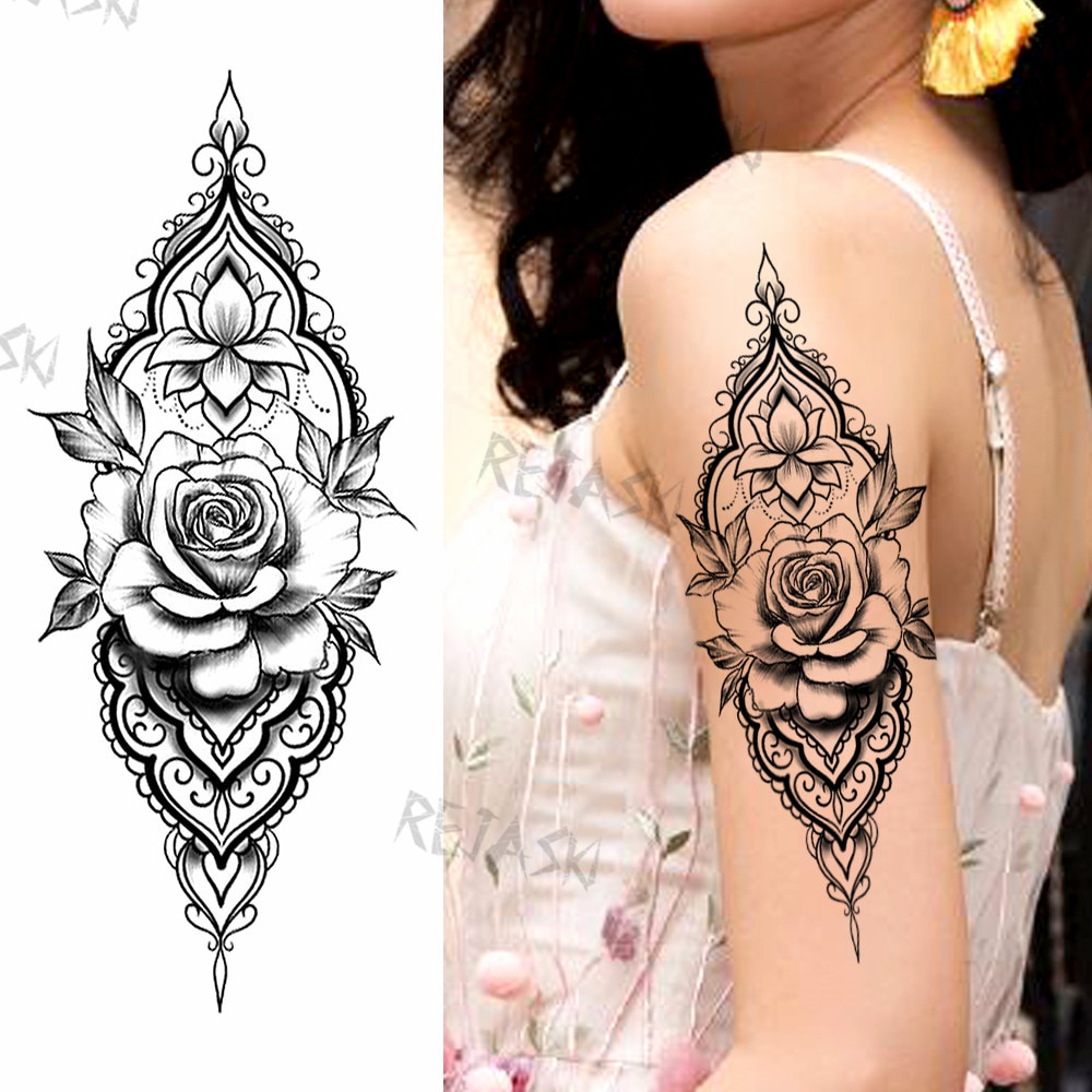 Sdrawing Rose Jewelry Water Transfer Tattoo Stickers Women Body Chest Art Temporary Tattoo Girl Waist Bracelet Flash Tatoos Flower