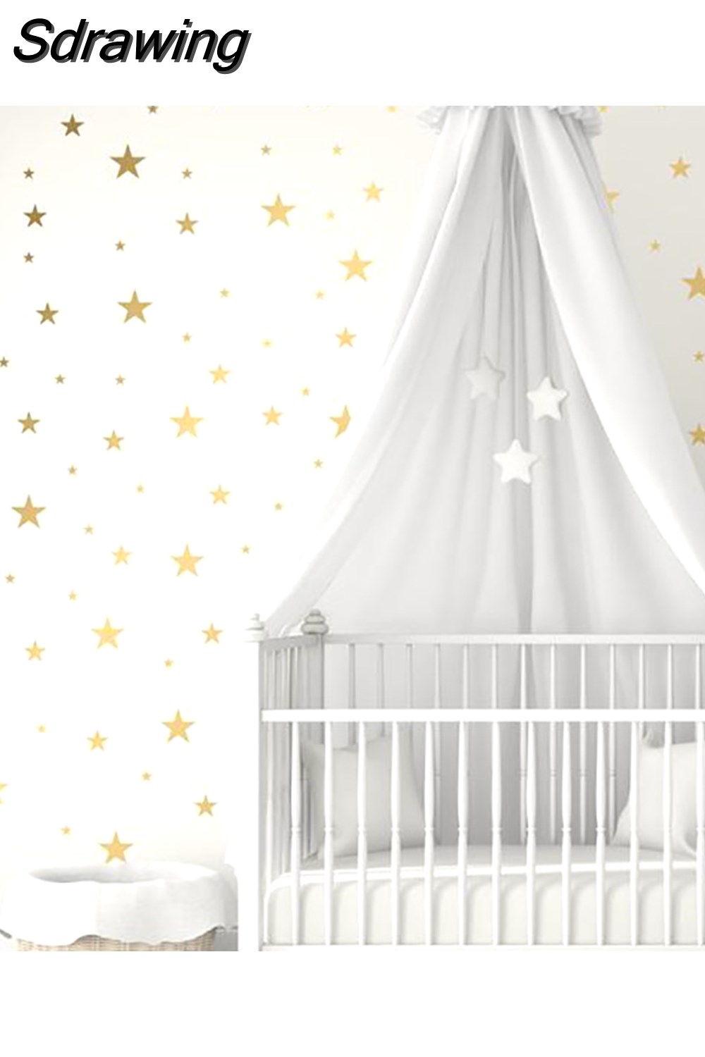 Sdrawing Silver Stars Wall Stickers for Kids Room Baby Nursery Room Decoration DIY Art Stickers Wall Decals Home Decoration Bedroom