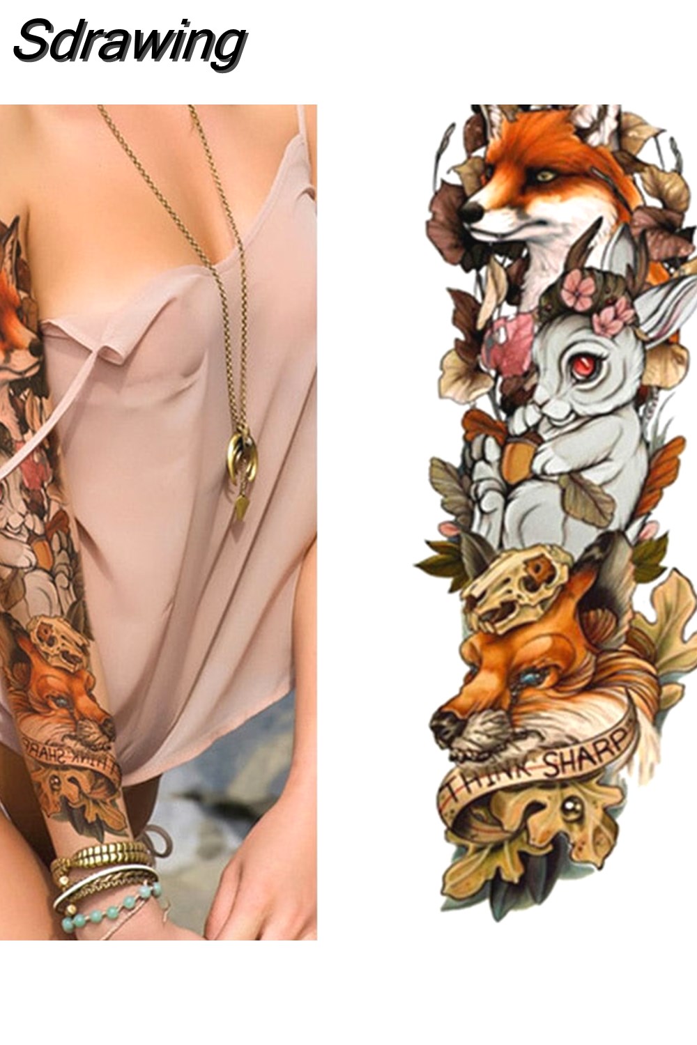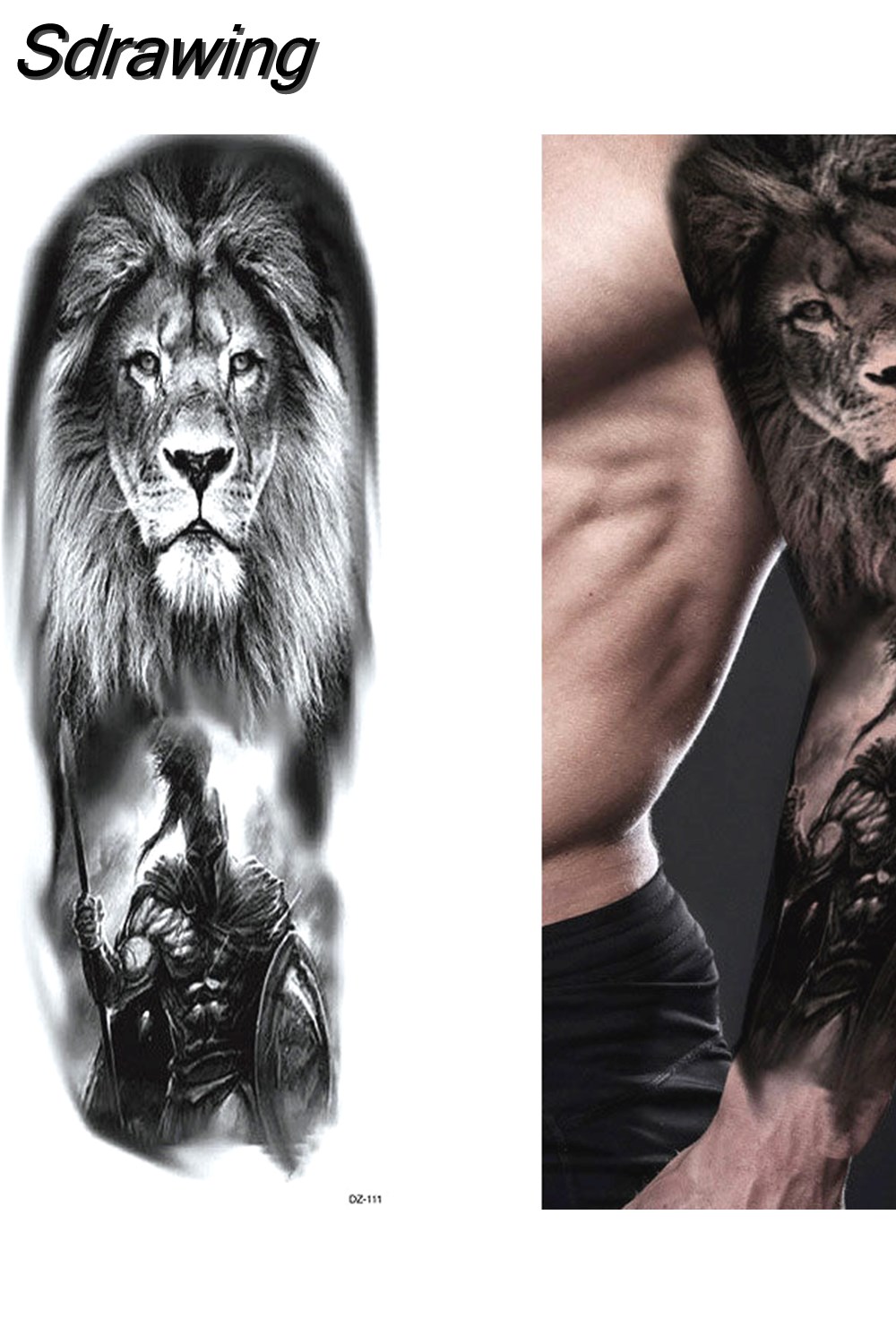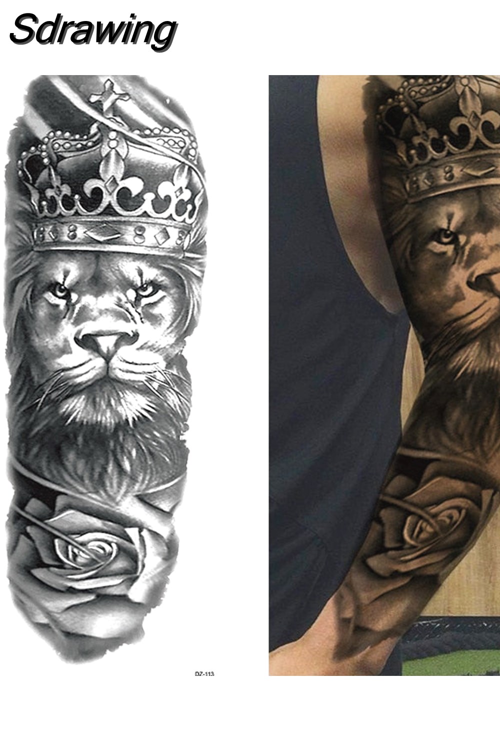 Sdrawing Full Arm Tattoo Lion Crown King Rose Waterproof Temporary Tatoo Sticker Wild Wolf Tiger Men Skull Totem Tattoo 430-1