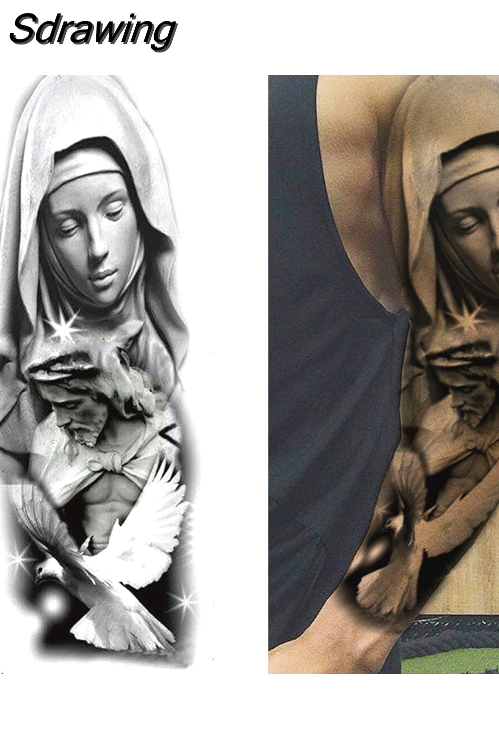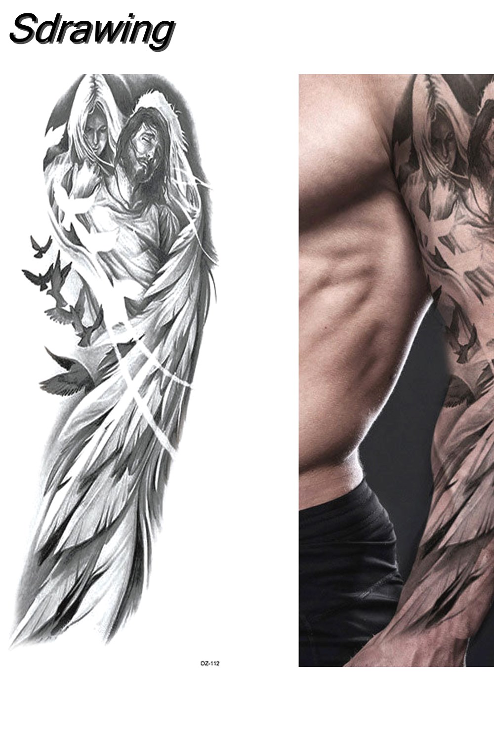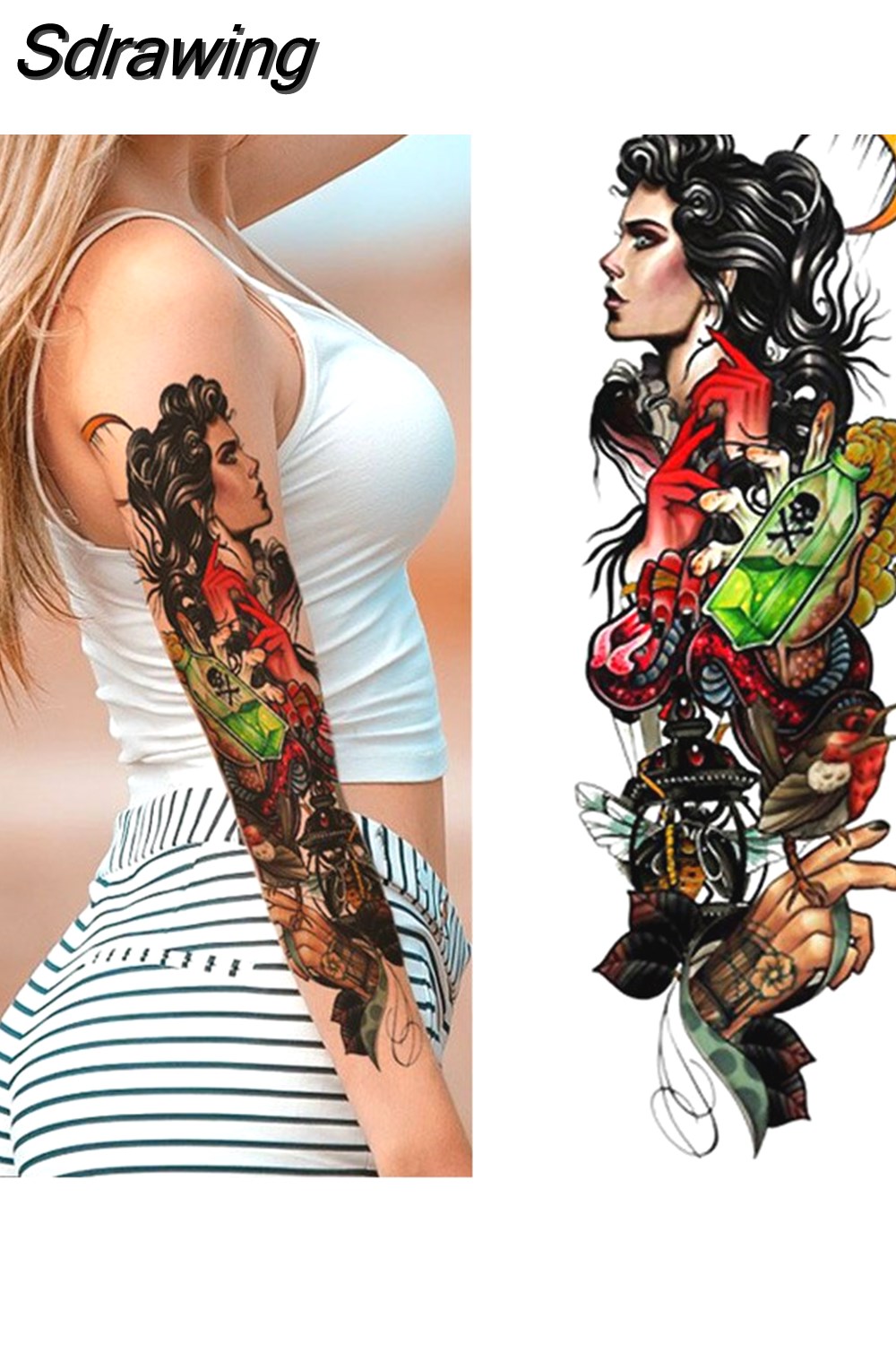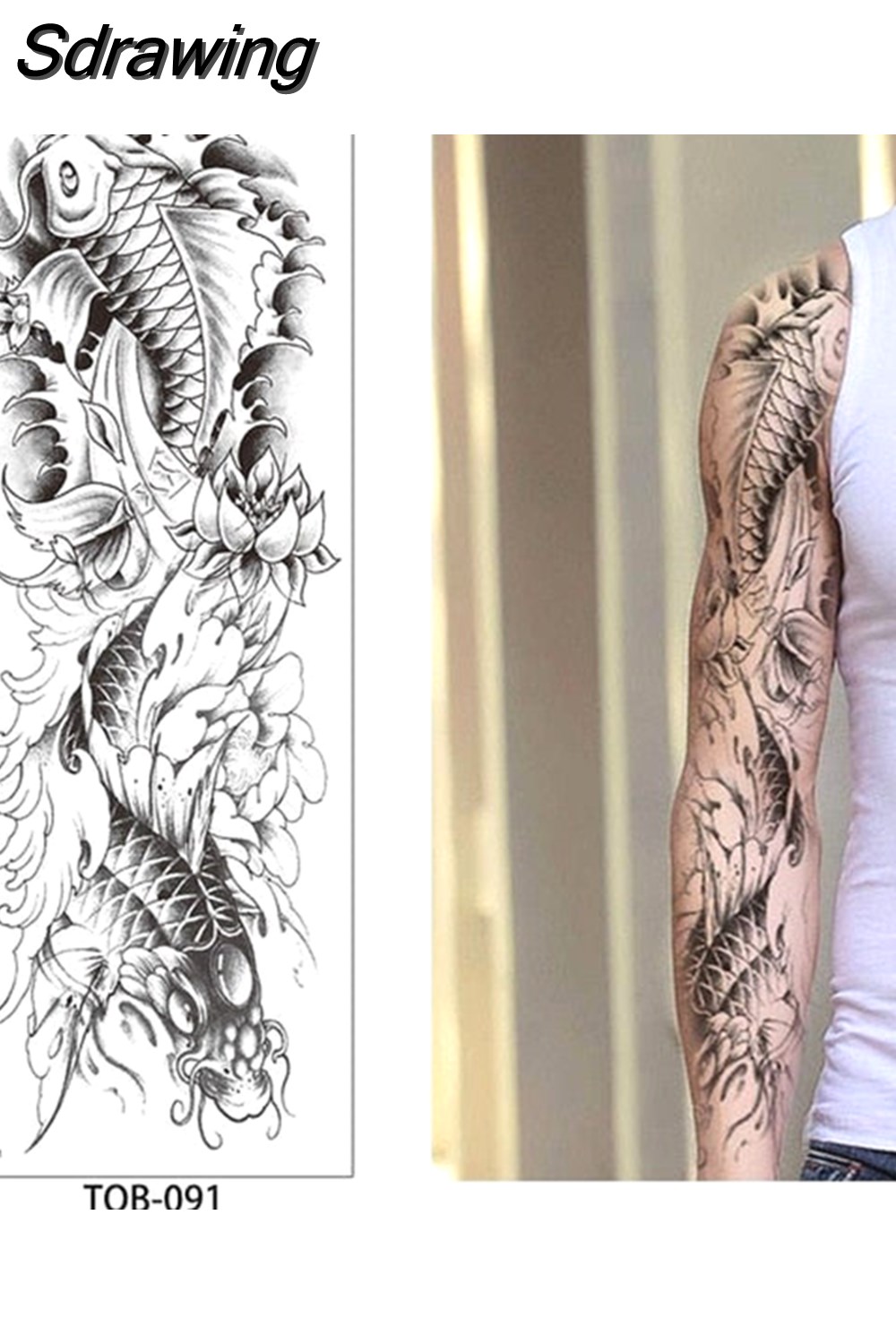 Sdrawing Full Arm Tattoo Lion Crown King Rose Waterproof Temporary Tatoo Sticker Wild Wolf Tiger Men Skull Totem Tattoo 430-1