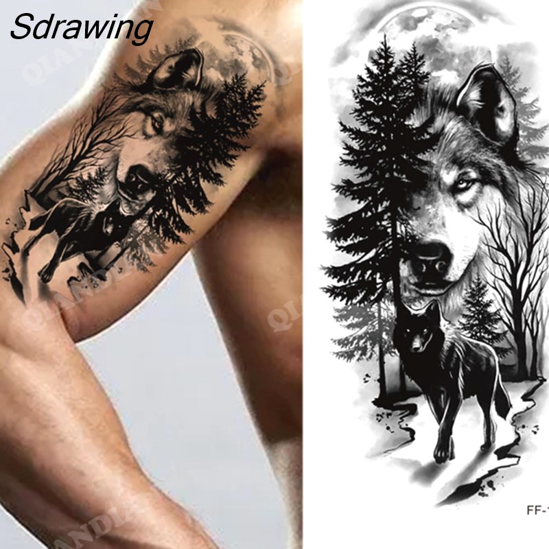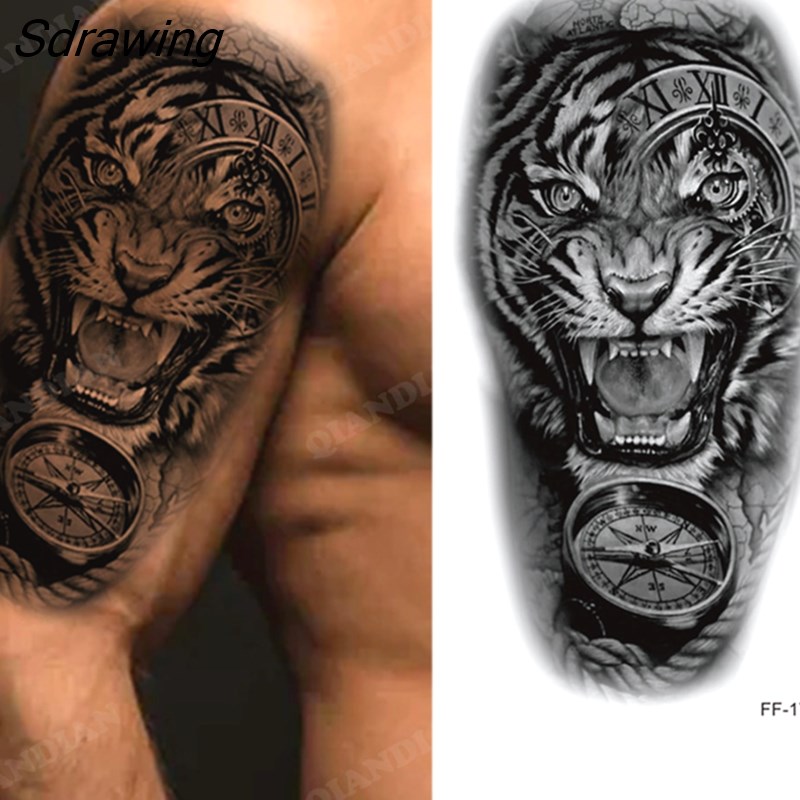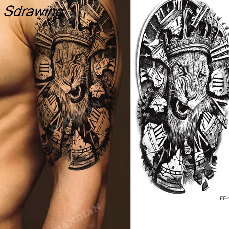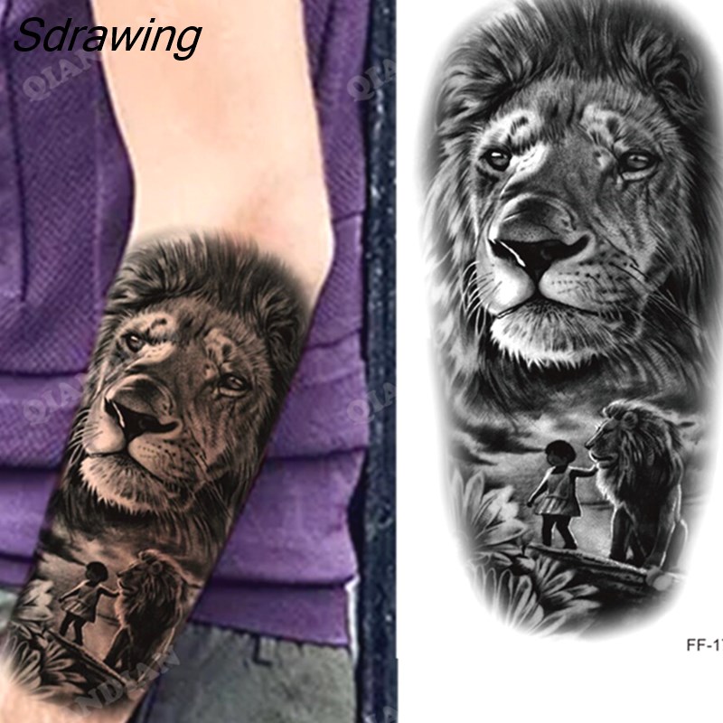Sdrawing New Waterproof Temporary Tattoo Sticker Lion King Tiger Wolf Forest Mechanical Wild Boat Men Body Art Arm Fake Tatoo Women 328-0