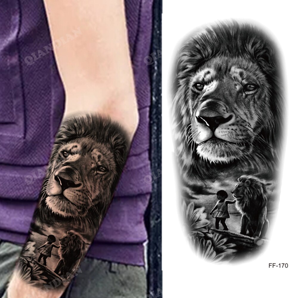 Sdrawing New Waterproof Temporary Tattoo Sticker Lion King Tiger Wolf Forest Mechanical Wild Boat Men Body Art Arm Fake Tatoo Women