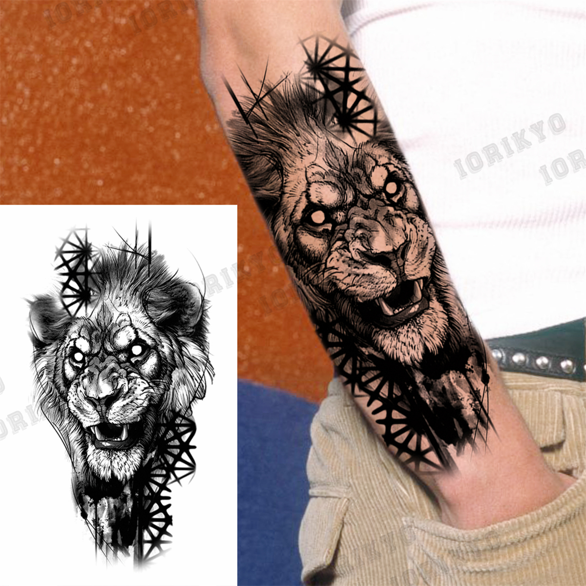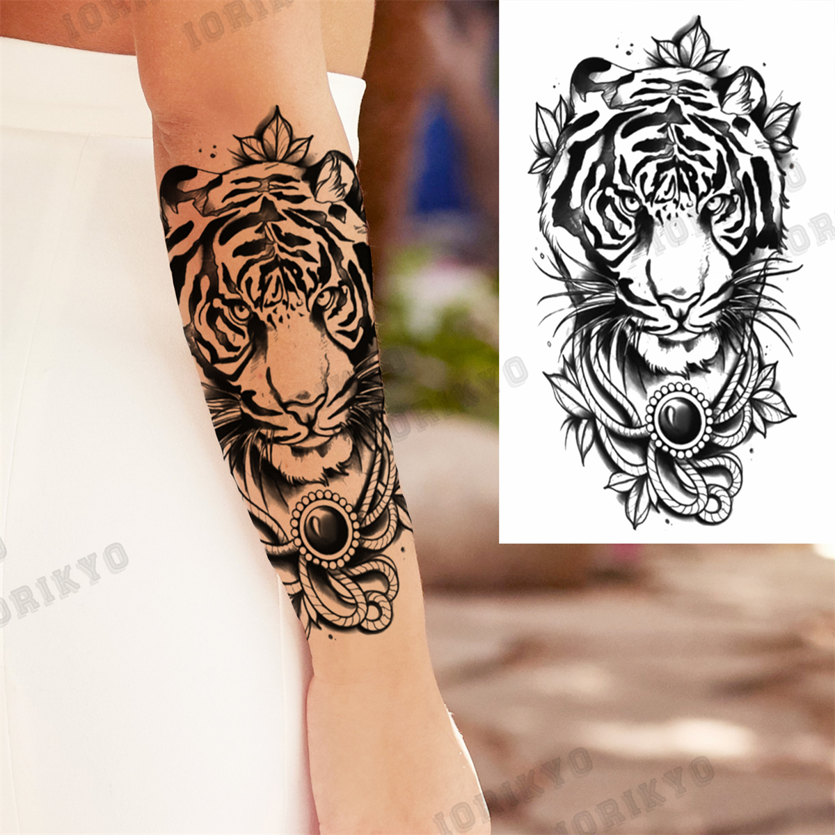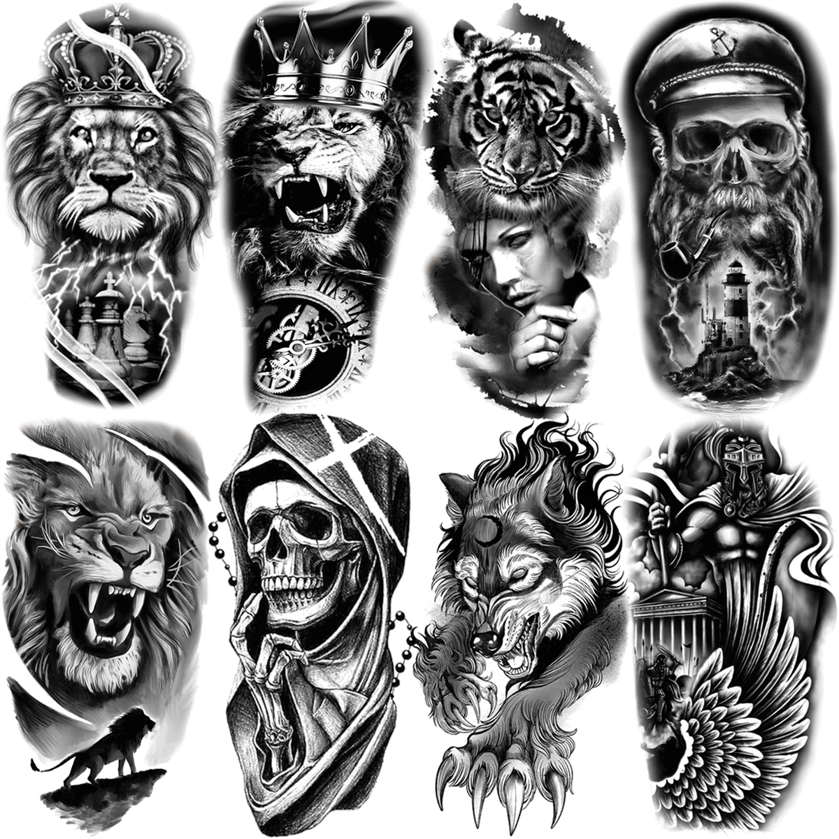 Sdrawing Tiger Skull Wolf Temporary Tattoos For Men Adult Crown Compass Pirate Warrior Fake Tattoo Body Art Decoration Tatoos Paper