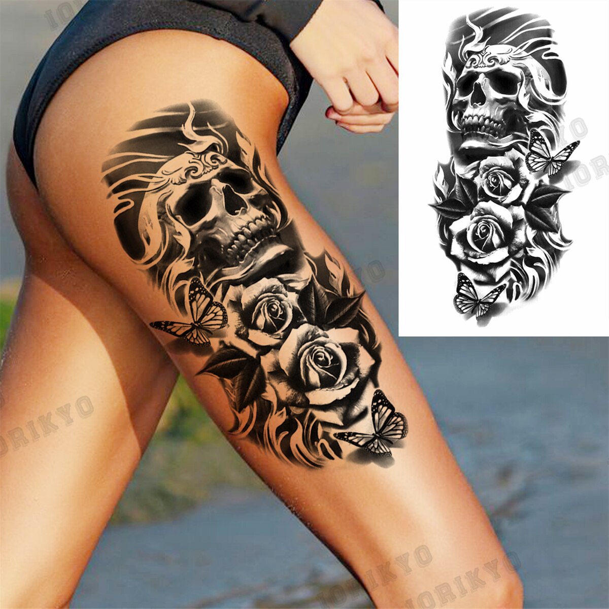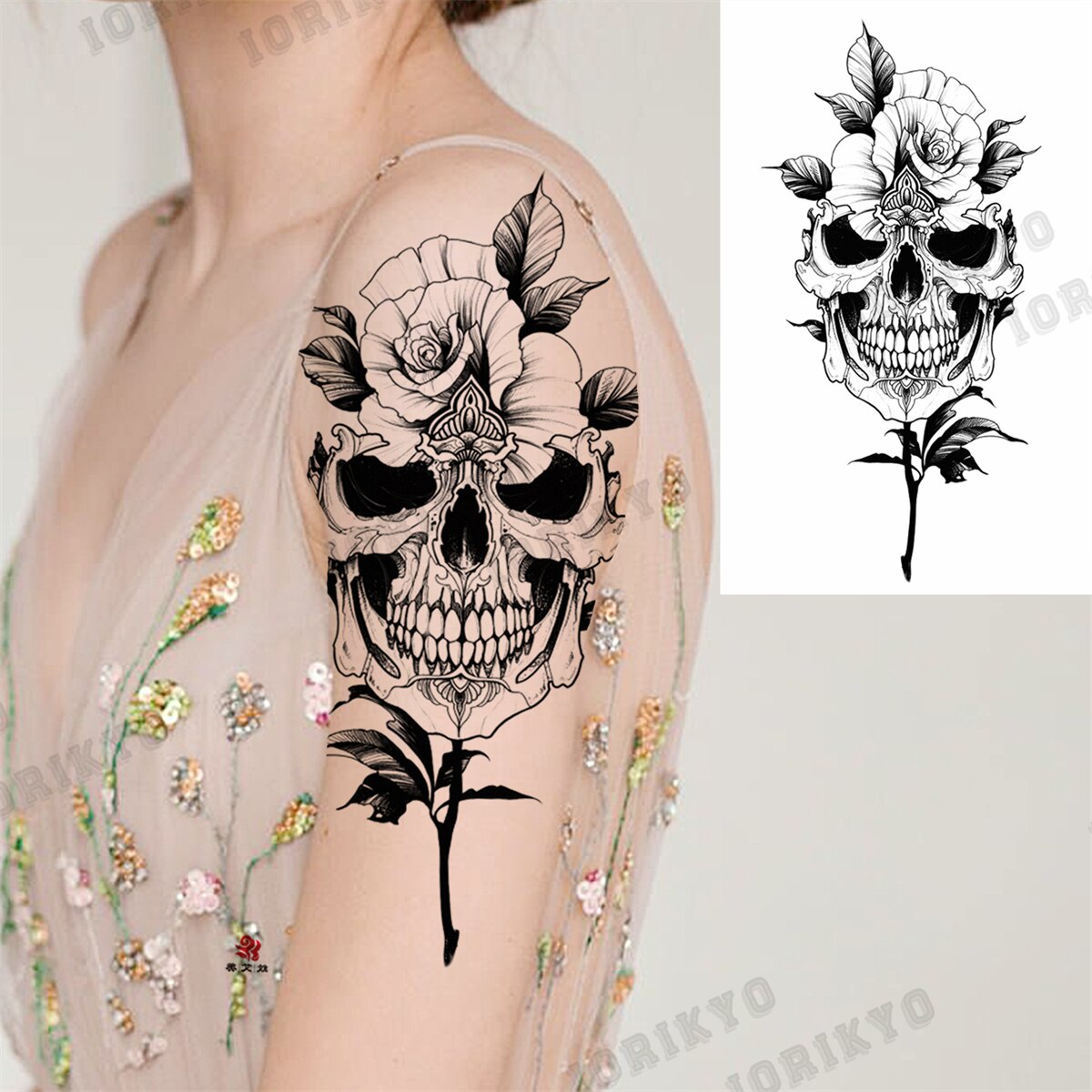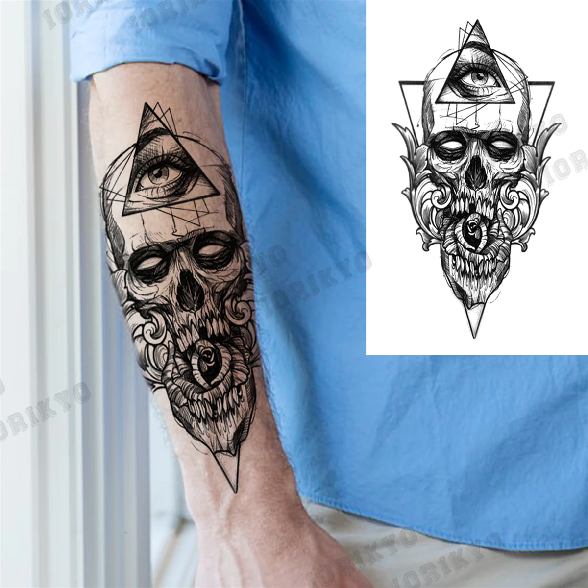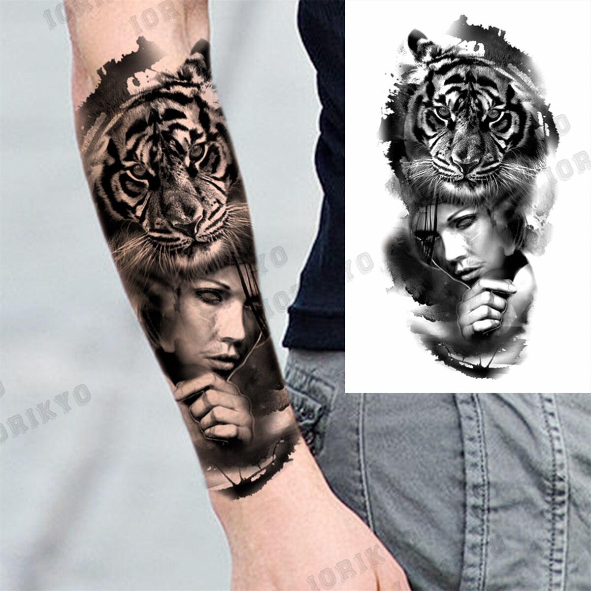Sdrawing Tiger Skull Wolf Temporary Tattoos For Men Adult Crown Compass Pirate Warrior Fake Tattoo Body Art Decoration Tatoos Paper