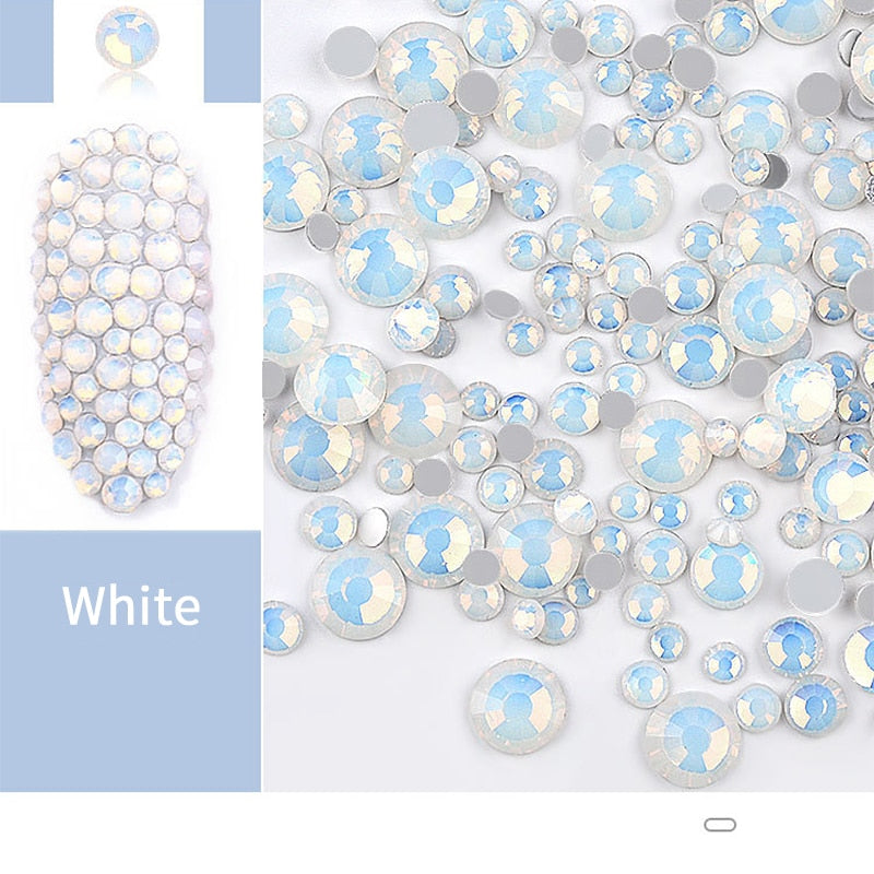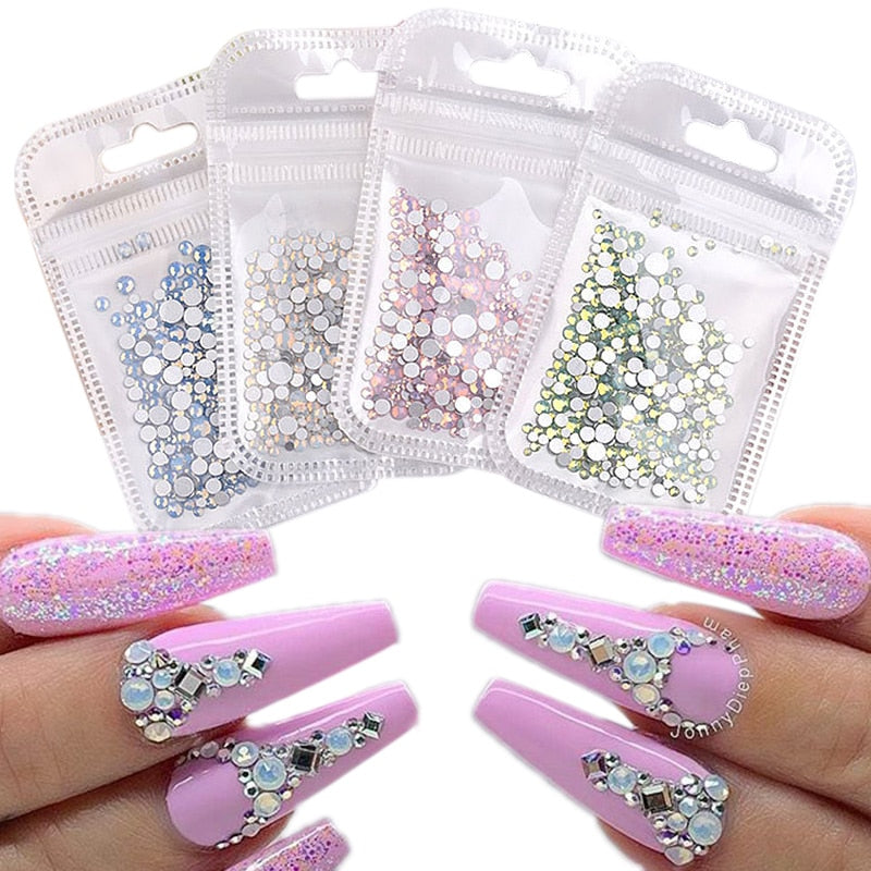 1 Bag Nail Rhinestones AB Color Opal Jelly Pink White Mixed Size Flat Back 3D Tips DIY Nail Art Decorations Crystals Stones