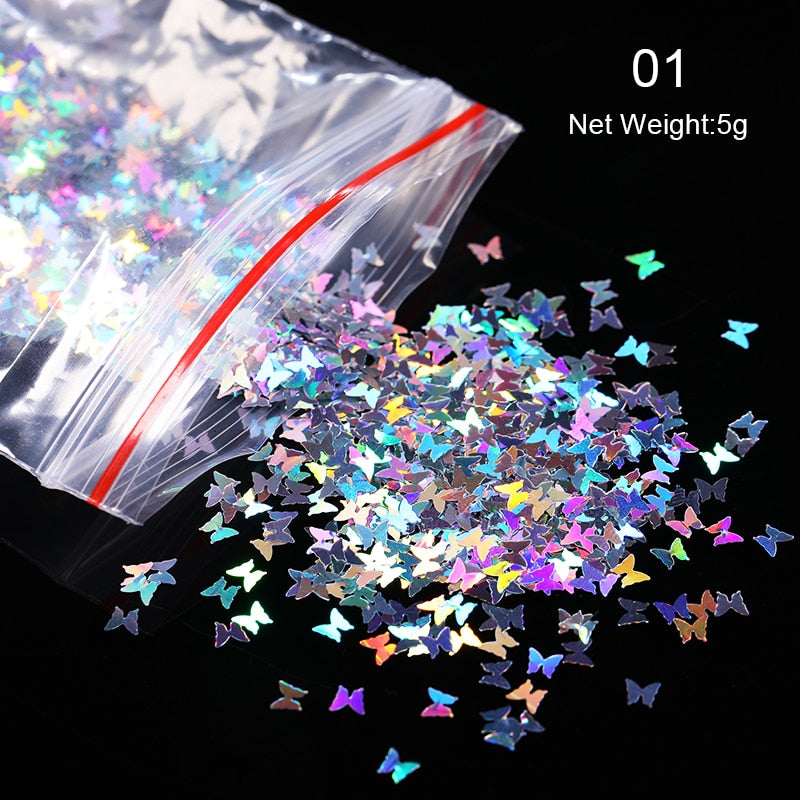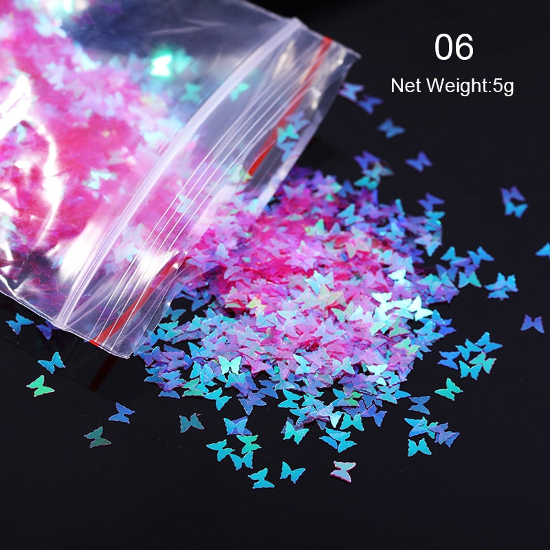 1 Bag Nail Sequins Butterfly Design 3D Glitter Colorful Nail Flakes iridescent Palliette Spangle Decoration Nail Art Sticker