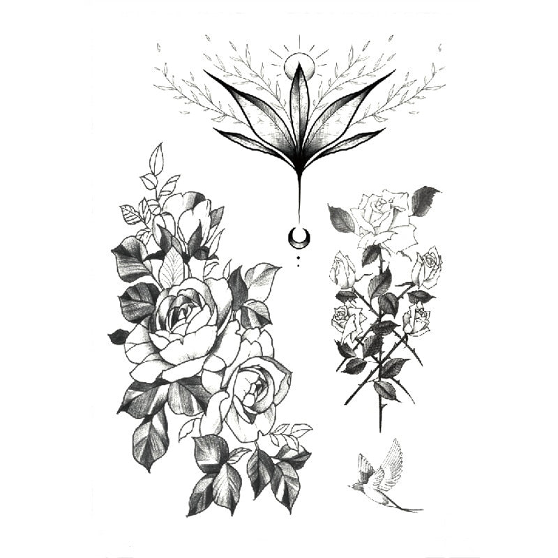 1 PC Fashion Women Girl Temporary Tattoo Sticker Black Roses Design Full Flower Arm Body Art Big Large Fake Tattoo Sticker