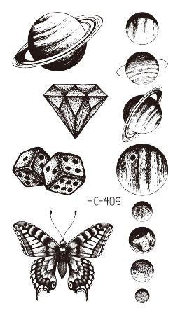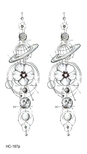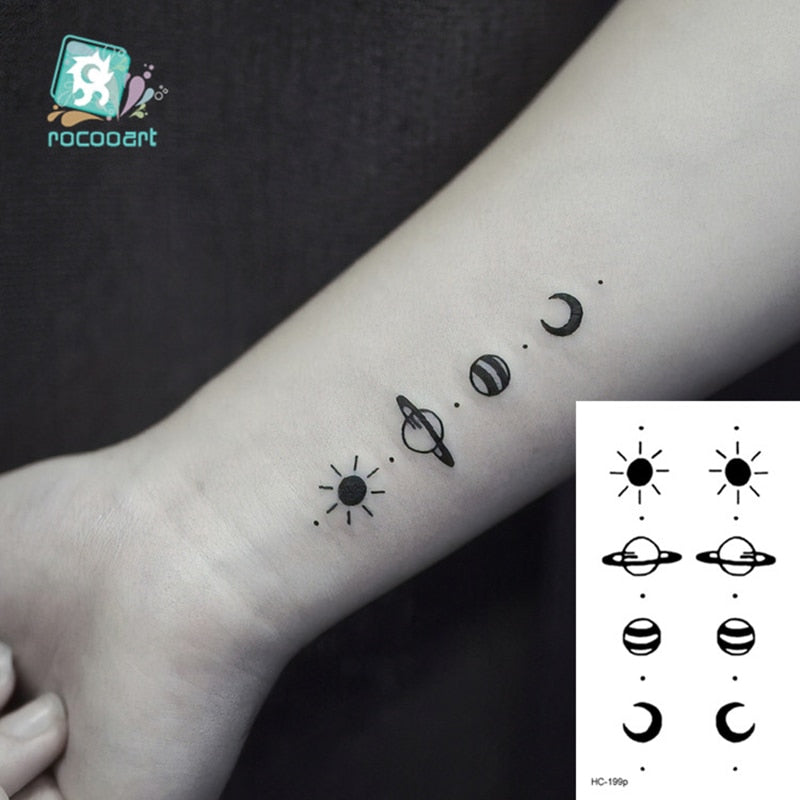 1 PC Geometric Planet Fashion Women Temporary Tattoo Sticker Water Transfer Tattoo Minimalist Small Sun Moon Design Fake Tattoo