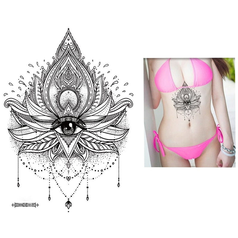 1 PIECE Under Boob Sternum Temporary Tattoo with Unalone, Spiritual Symbols,Loutus Pattern Body Art Sexy Waist Tattoo For Girl