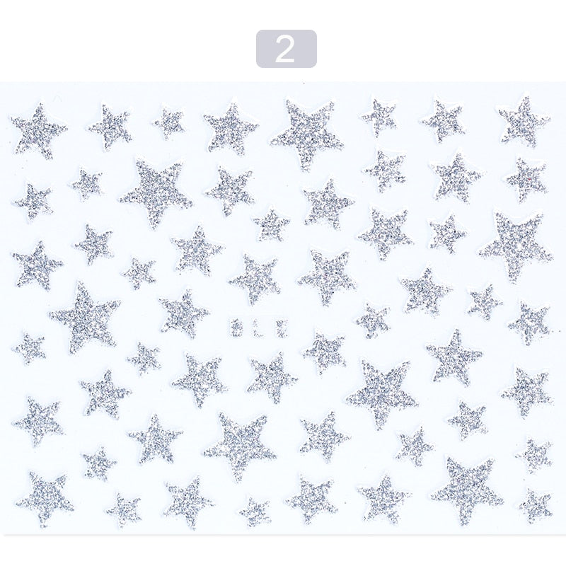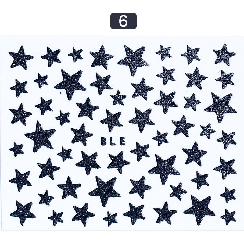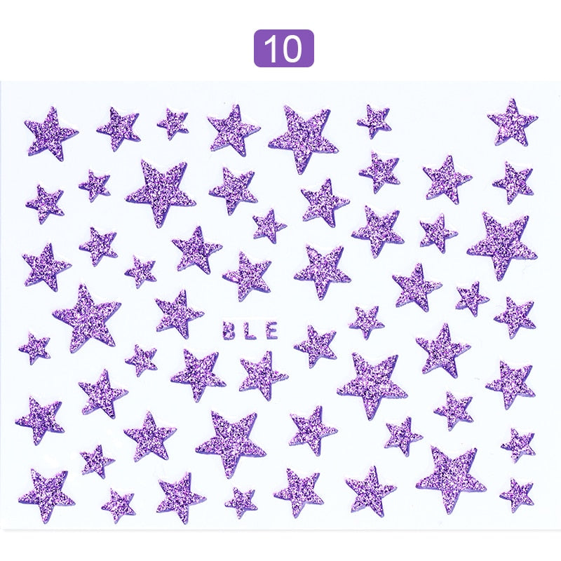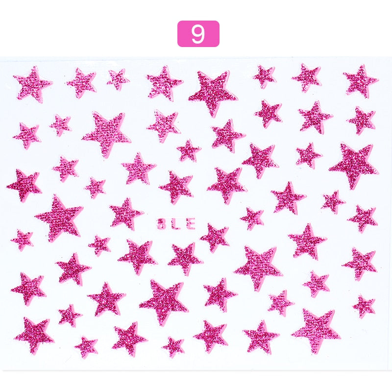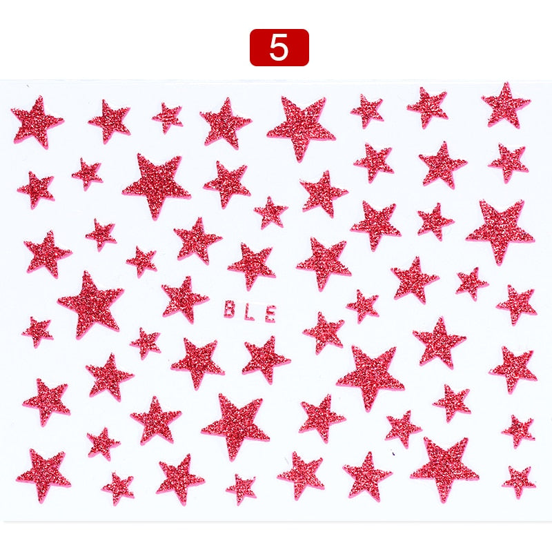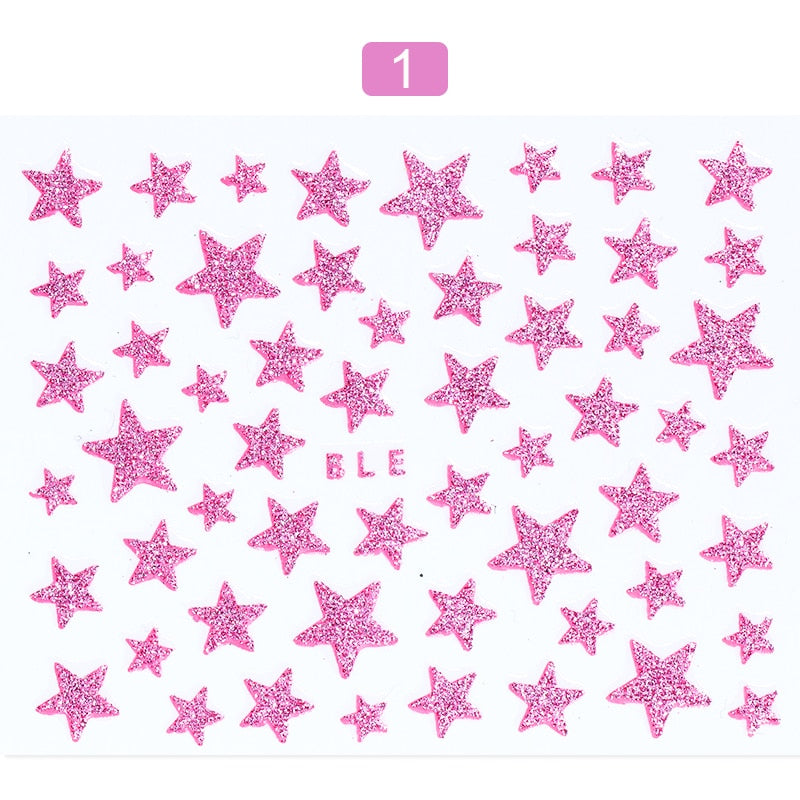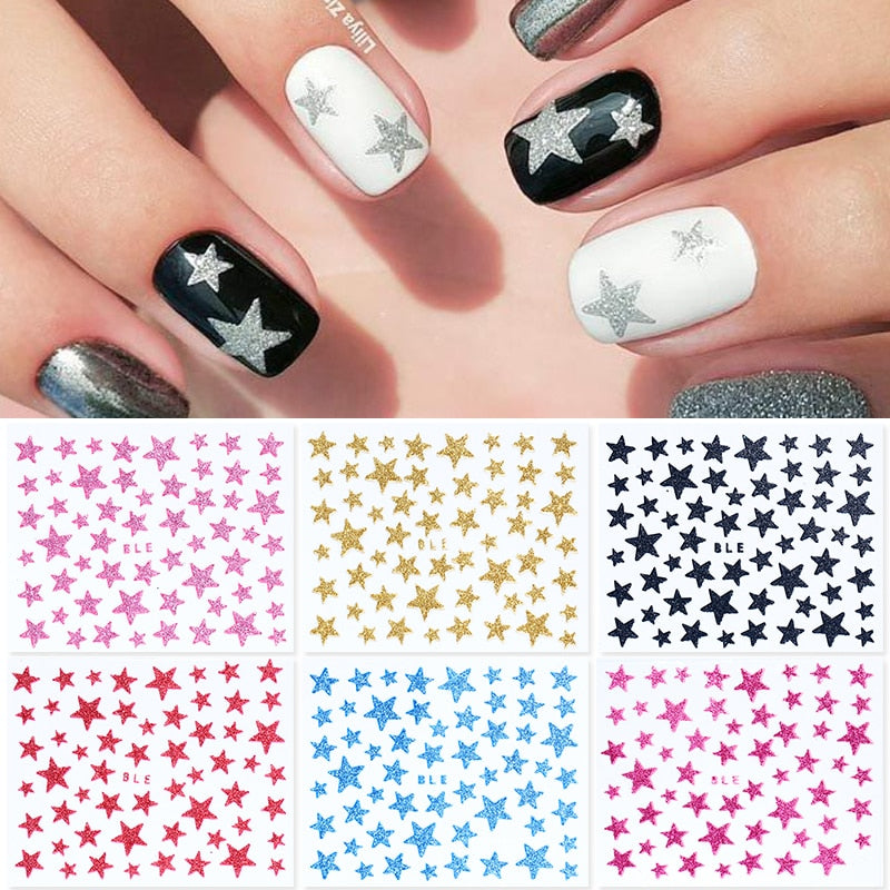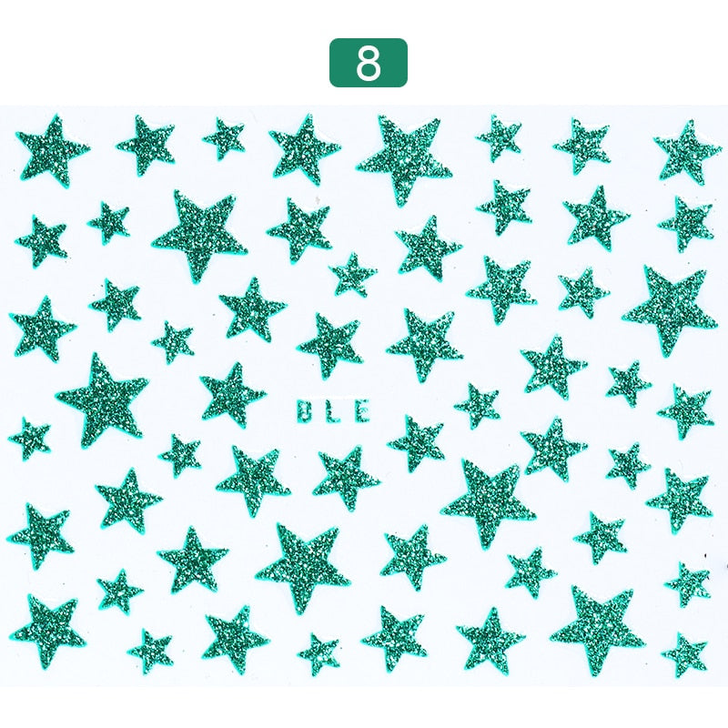 1 Sheet 3D Nail Slider Stars Glitter Shiny Decoration Decal DIY Transfer Adhesive Colorful Nail Art Tips