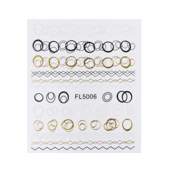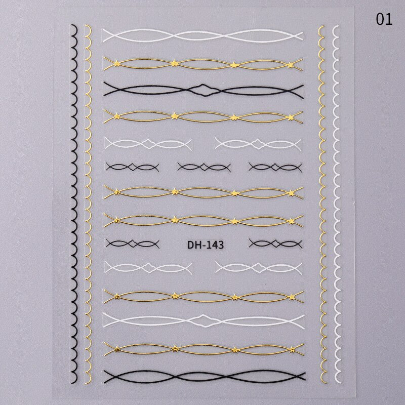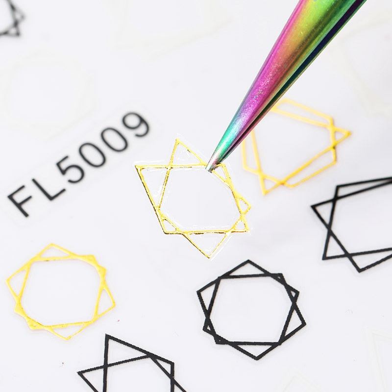 1 Sheet 5D Gold Black Sliver Geometric Linear Sticker Decals Nail Art Designs Adhesive Transfer Sliders Manicures Decoration