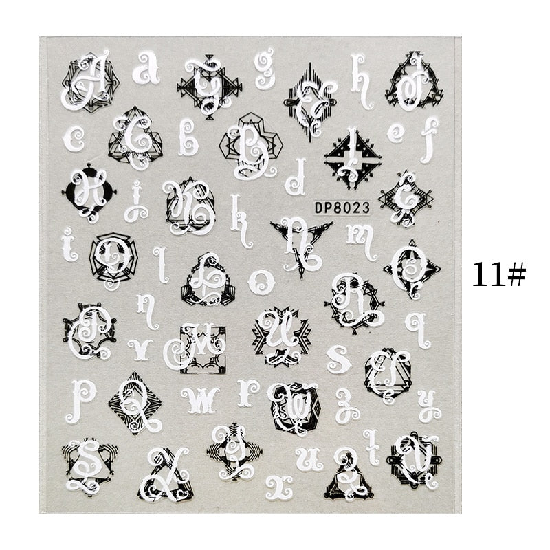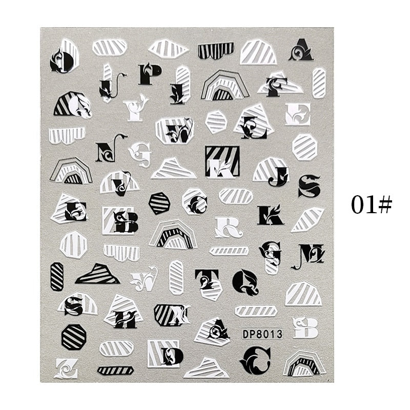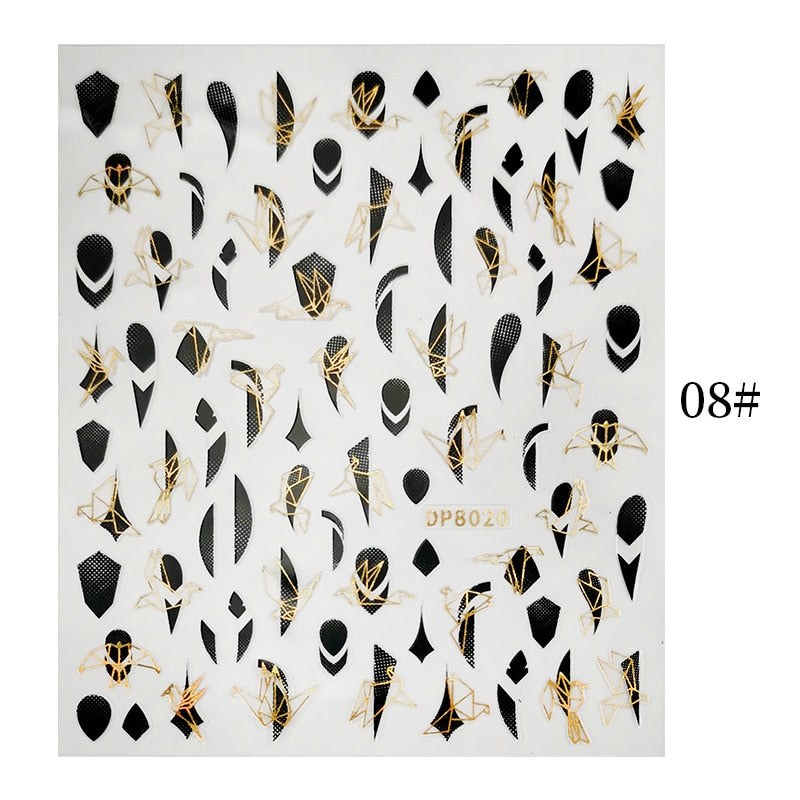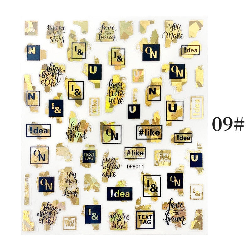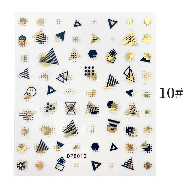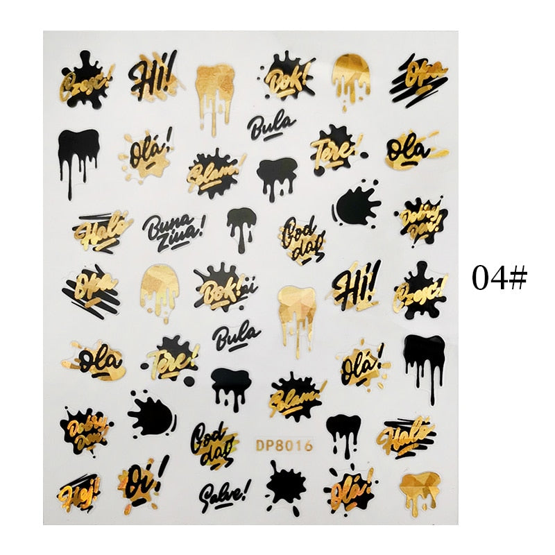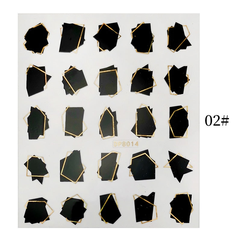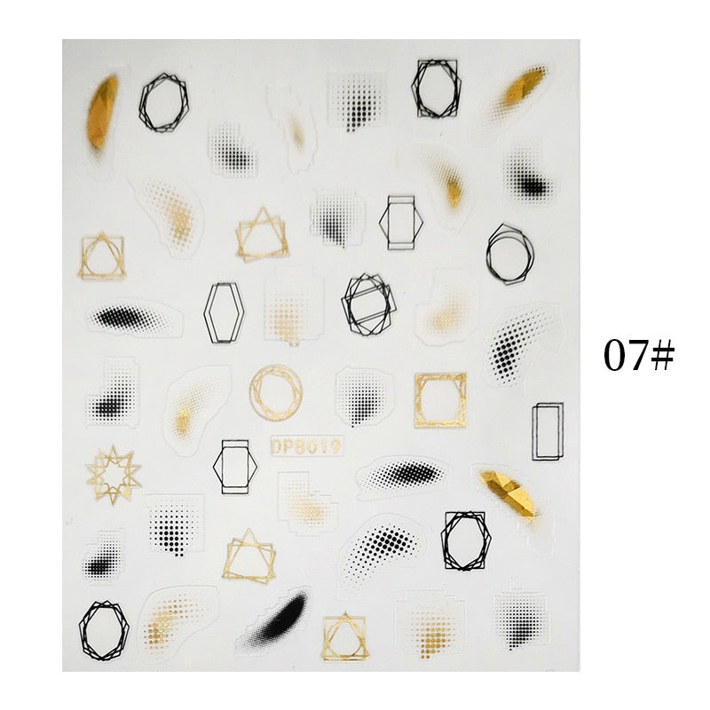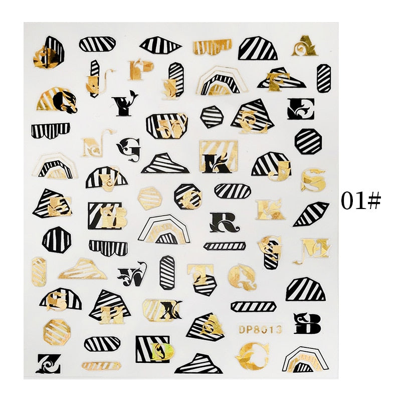 1 Sheet Bronzing Abstract Color Block 3D Nail Sticker Art Letters Design Transfer Sliders Paper DIY Manicuring Wraps