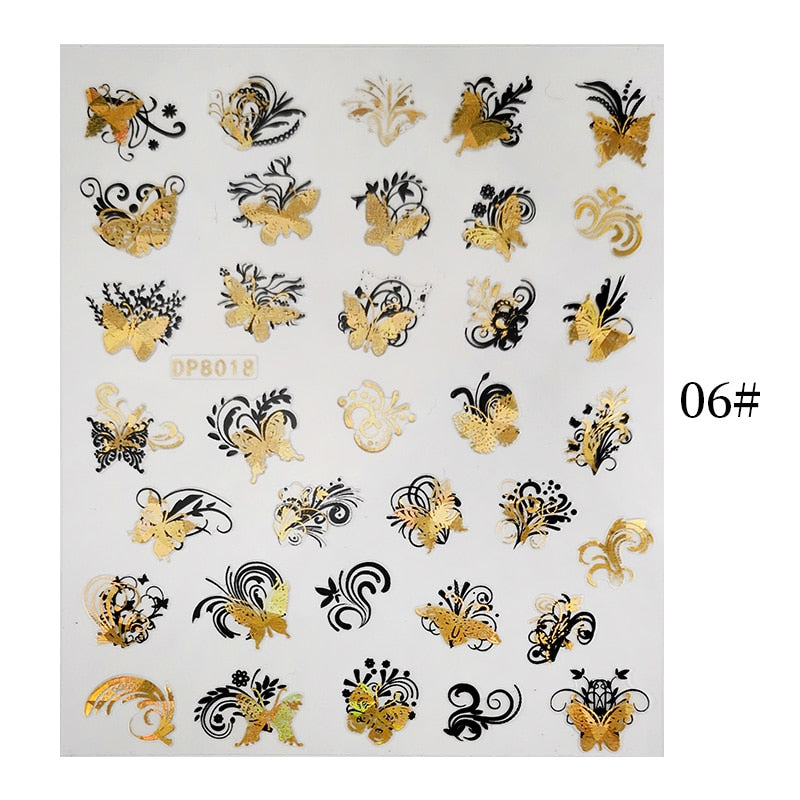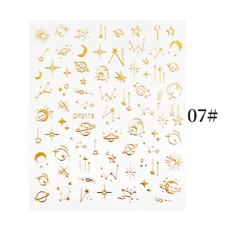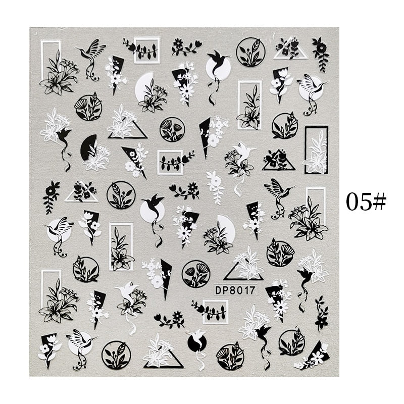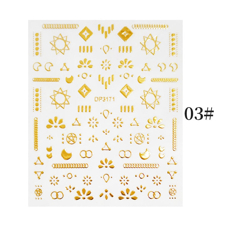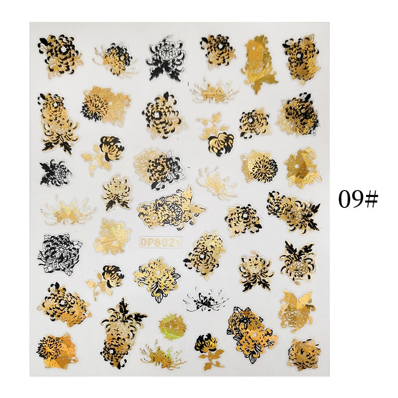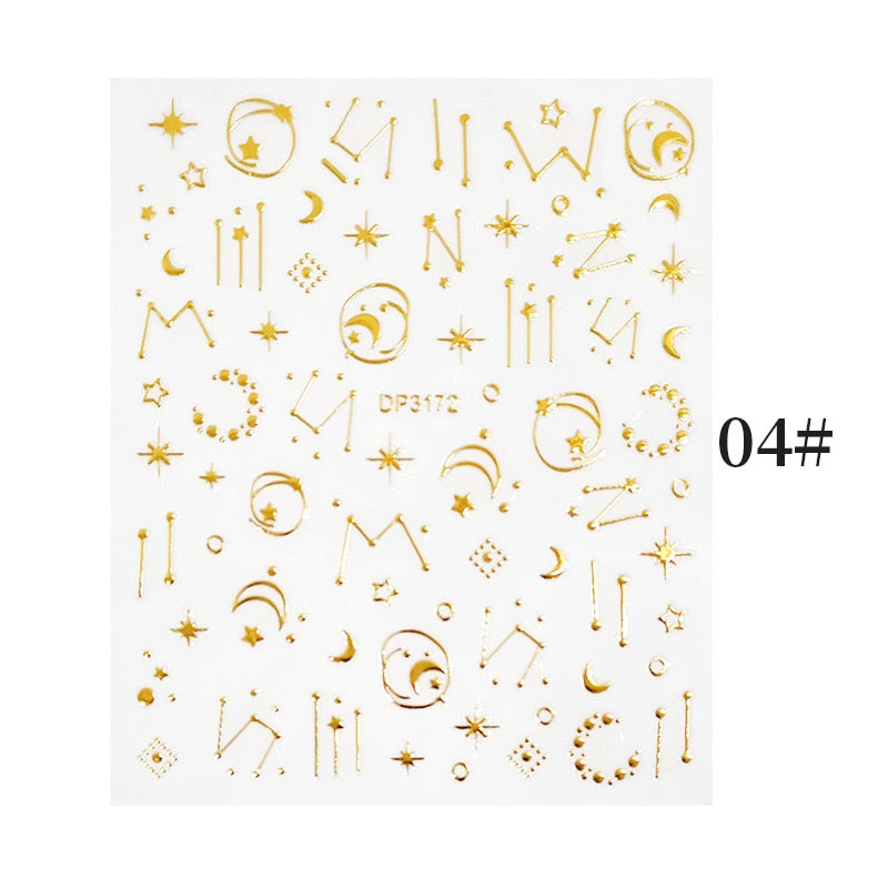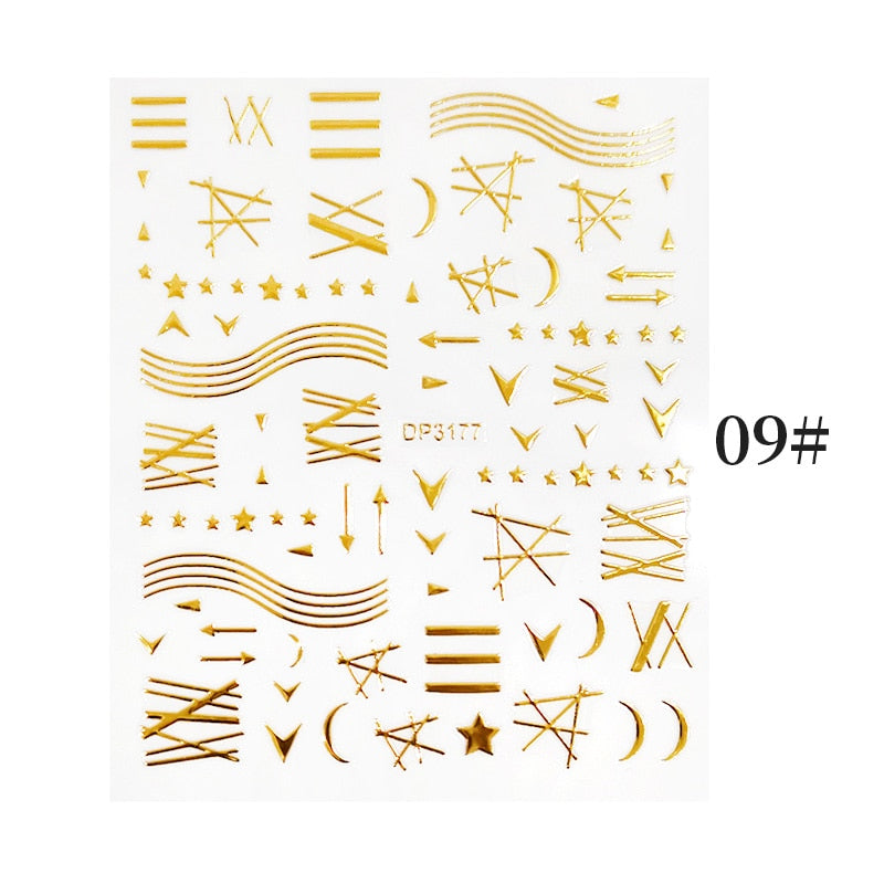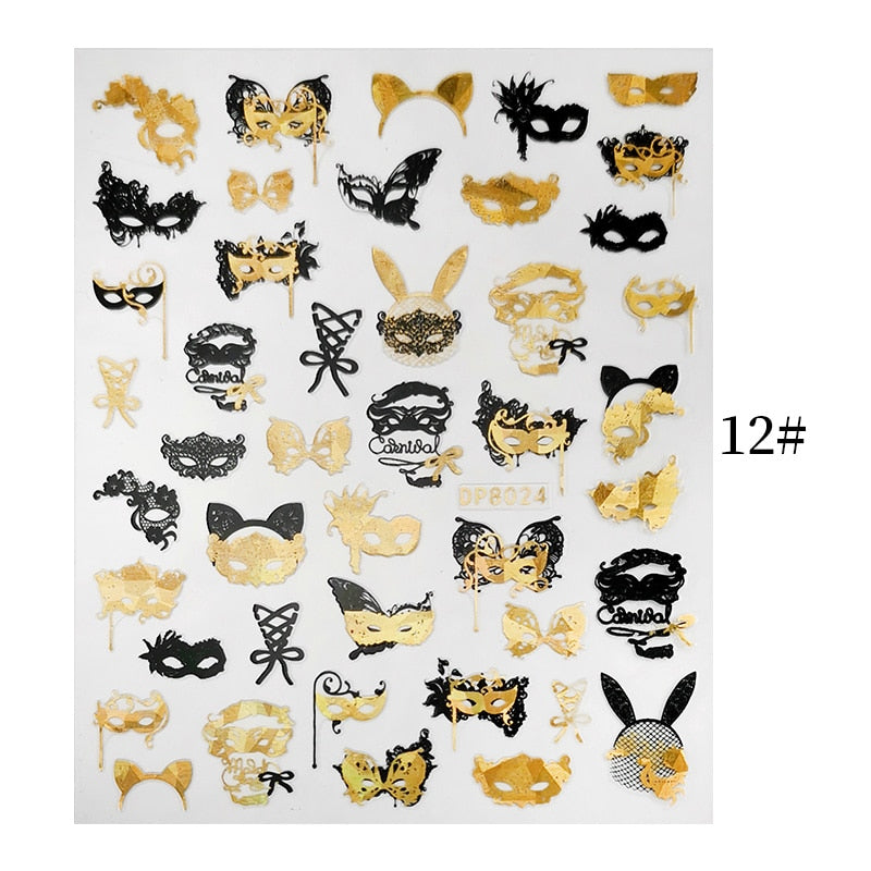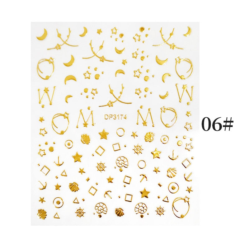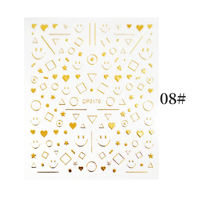 1 Sheet Bronzing Abstract Color Block 3D Nail Sticker Art Letters Design Transfer Sliders Paper DIY Manicuring Wraps