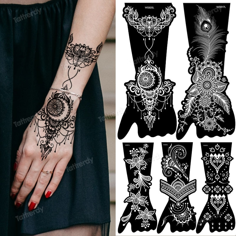 1 Sheet Flower Mandala Henna Tattoo Stencils for Painting Wedding on Hand Sleeve Bride Beauty Airbrush Stencil Templates Indian