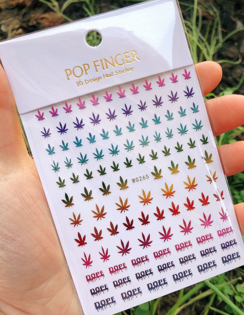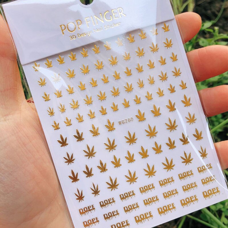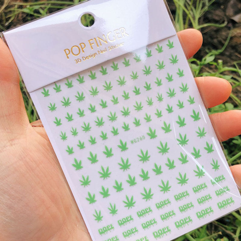 10 Color Luminous Fashion 3D Color Nail Art Stickers Manicure Leaf Weed Design Applique Decoration 8.0 * 10.3CM