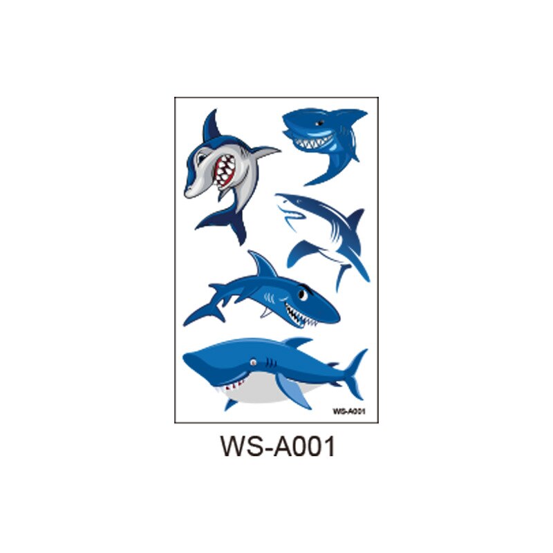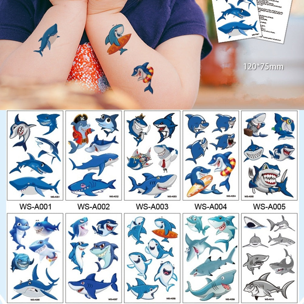 10 kinds Cartoon Shark Tattoo Children Cute Makeup Temporary Body Stickers Blue Fish Disposable tatouage temporaire