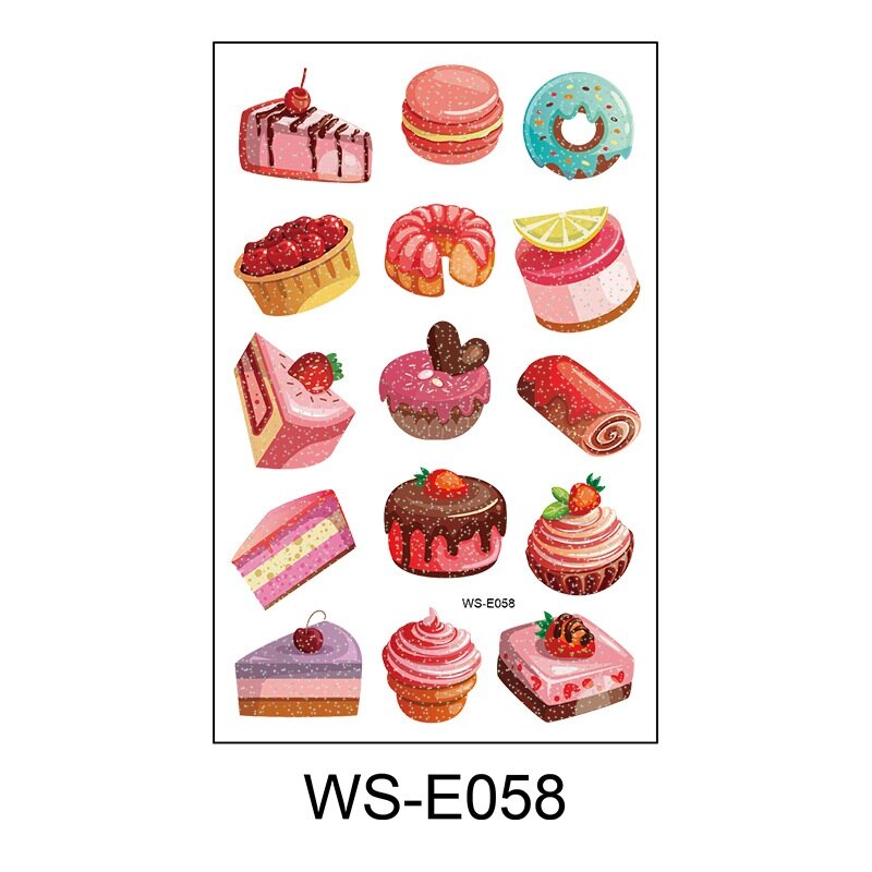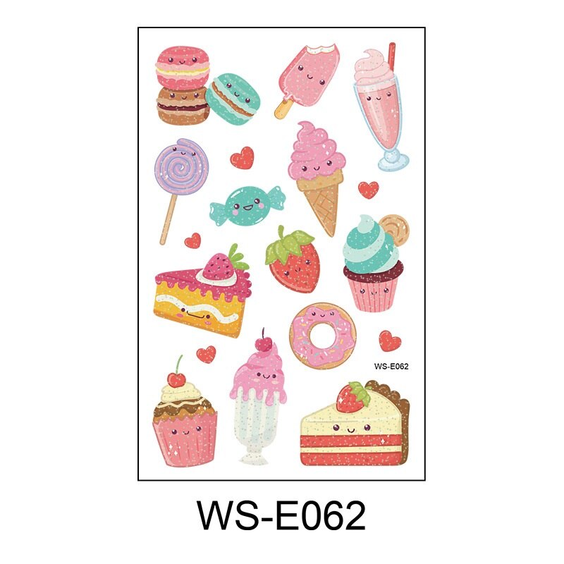 10 Kinds Glitter Powder Temporary Tattoos Cartoon Ice Cream Candy Cakes Kids Fake Tattoo Sticker Cute Party Makeup Tools