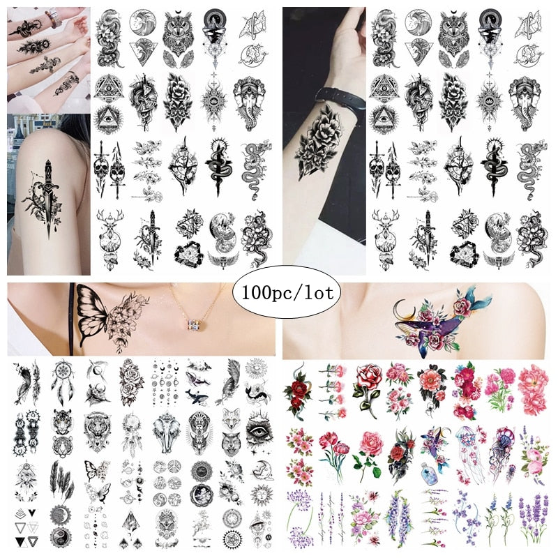 100 Piece Small Totem Animal Waterproof Temporary Tattoo Sticker Men Women Wholesale Flower Body Art Fake Sexy Arm Tattoo Set