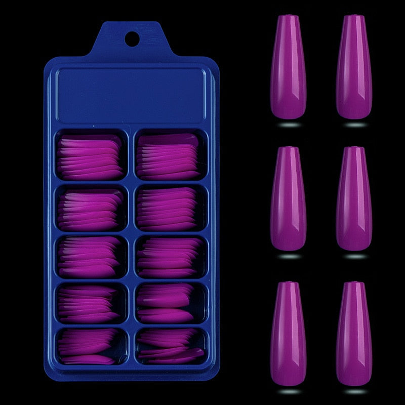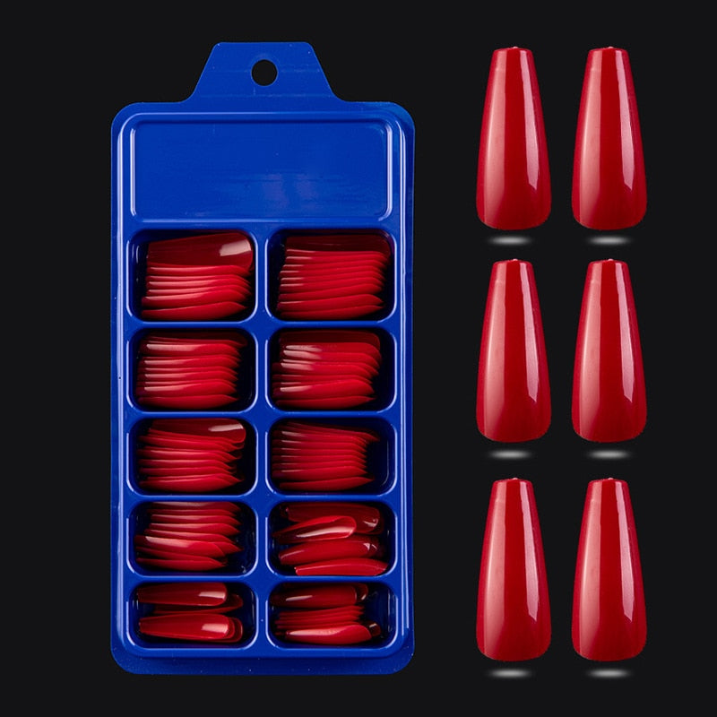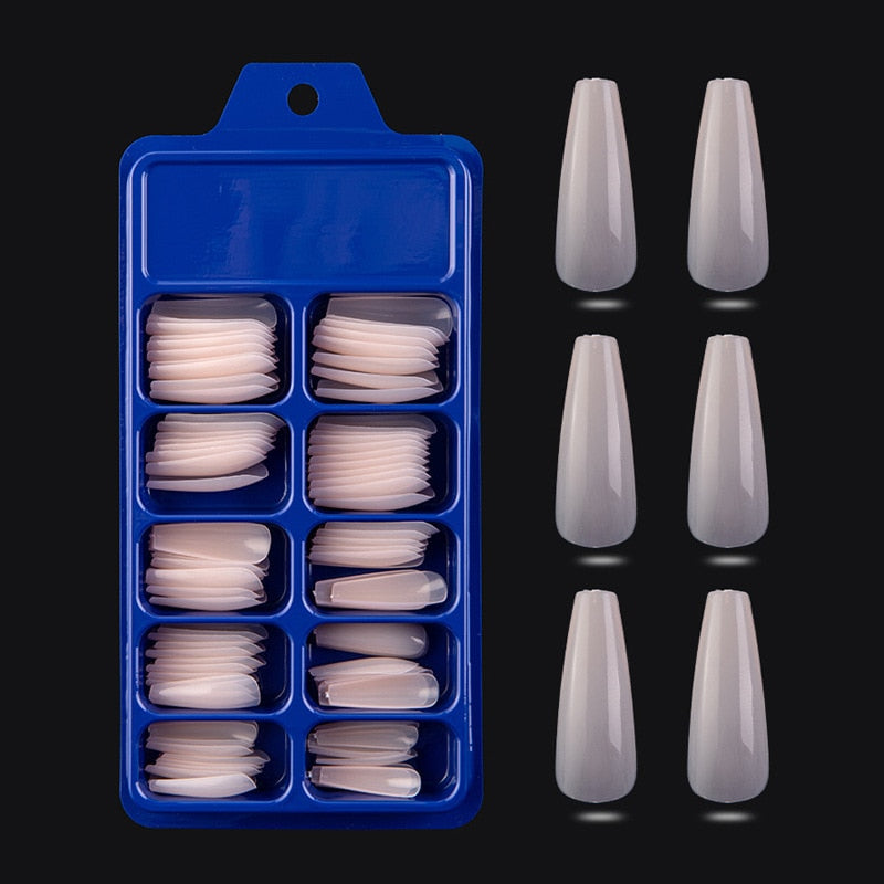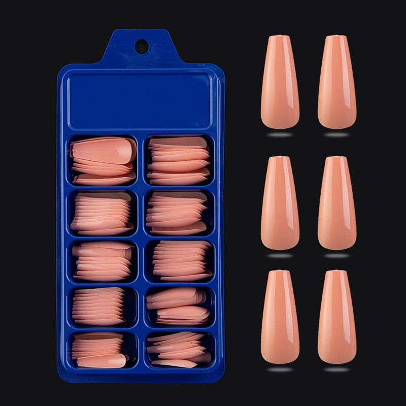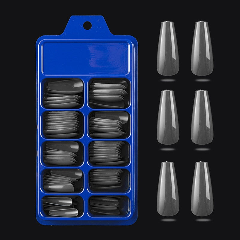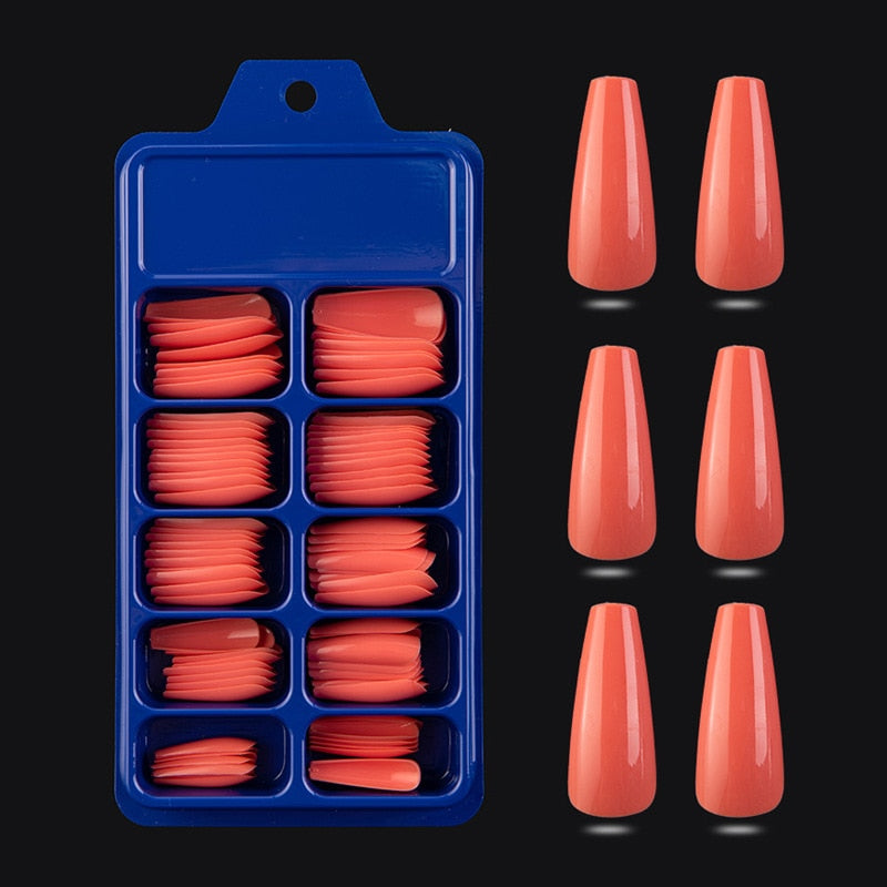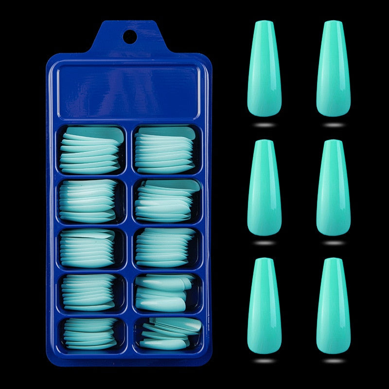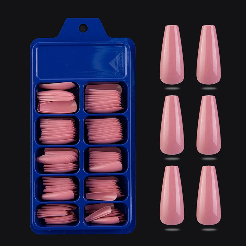 100 Pieces Long Press Fake Nails Full Acrylic Pressed Fake Nail Cover Reusable Full Coverage Nail Tips Manicure Tool CL05