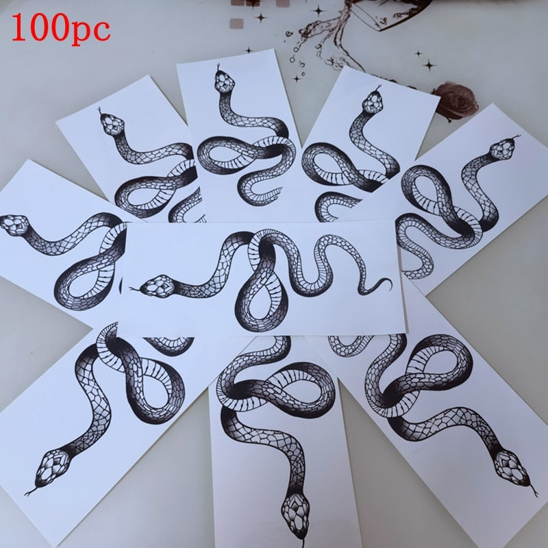 100pc Flower Arm Snake Waterproof Temporary Tattoo Sticker Men Women Big Size Black Cool Fashion Personality Art Fake Tattoo Set