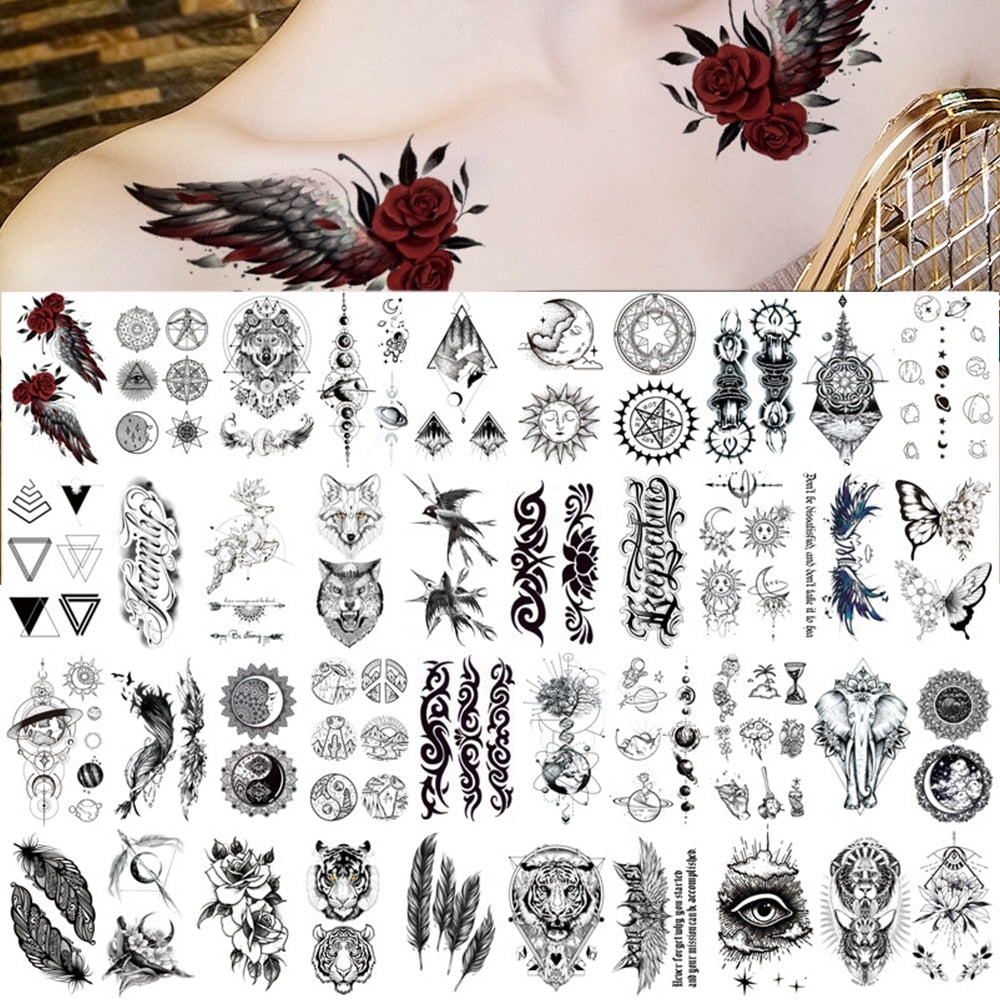 100Pcs Mini PersonalityTemporary Tattoo Sticker Flower Animal Eagle Snake Dragon Scorpion Cross Finger Neck Body Women Man Tatoo