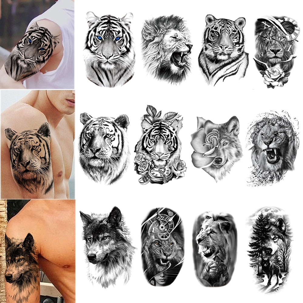 Style 1: Wolf,Tiger,Skull, Flower, Rose, Snake, Lion Tattoos