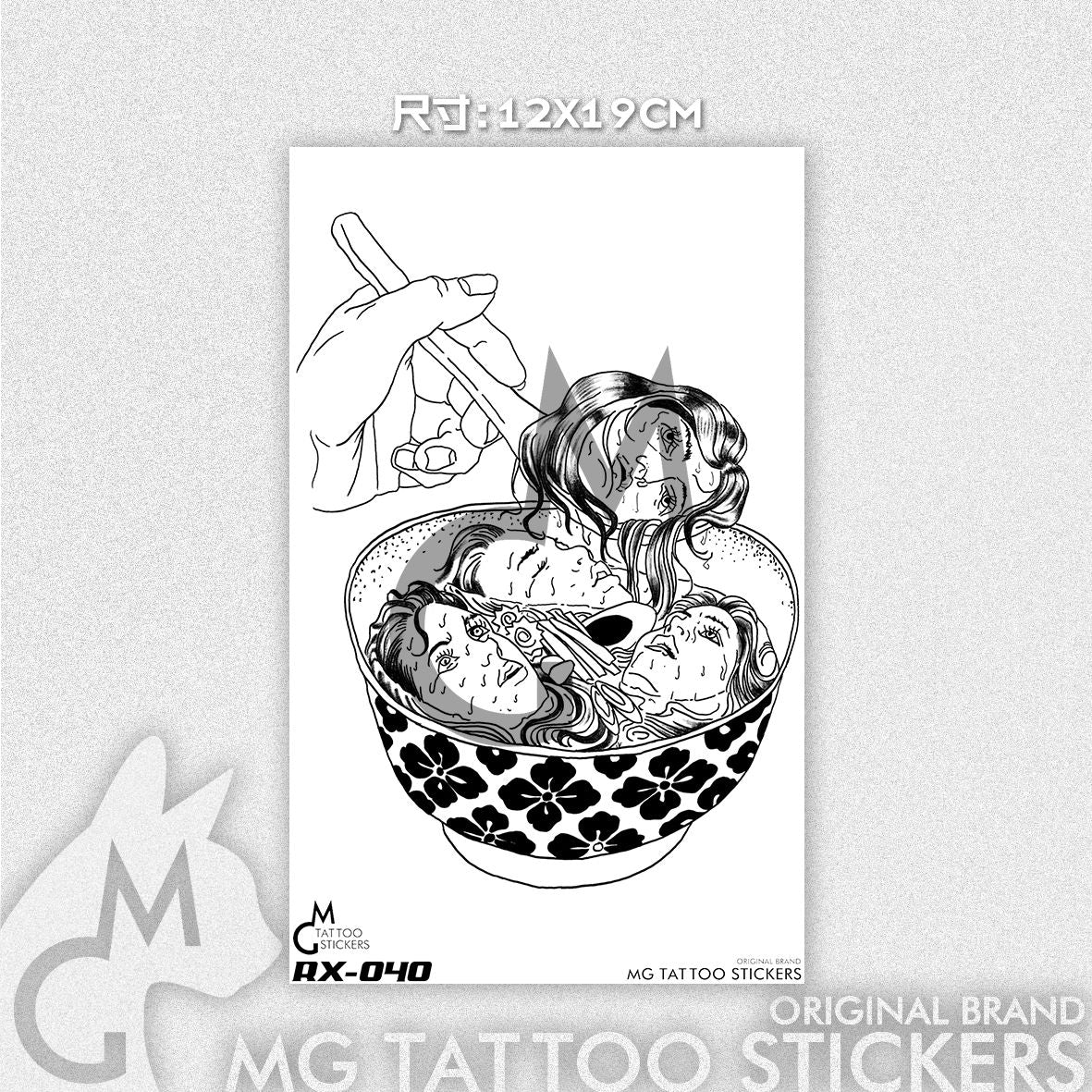 12*19cm Hand-painted TATTOO Mysterious Dark Late Night Evil Dumplings Alternative Human Head Pattern Tattoo Stickers