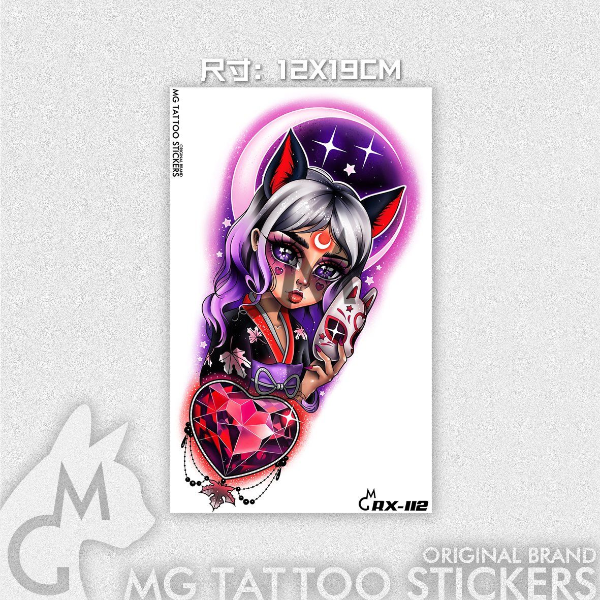 12*19cm Japanese Ukiyo-e Fox Geisha Anime Cartoon Beautiful Girl Flower Arm Tattoo Sticker