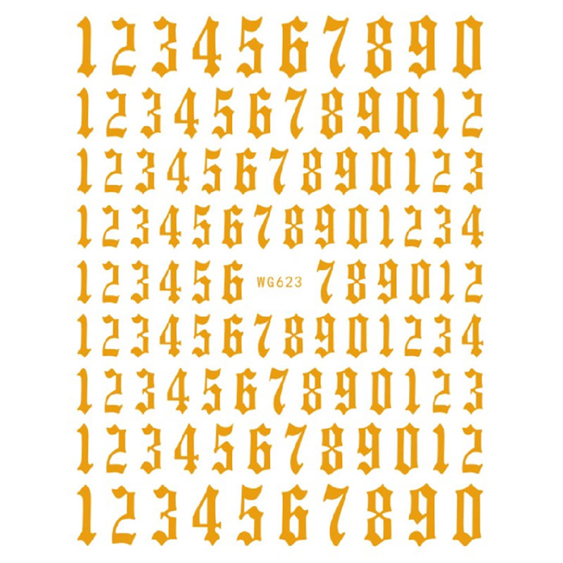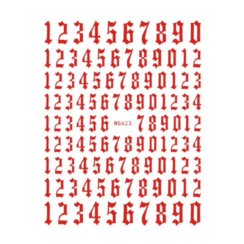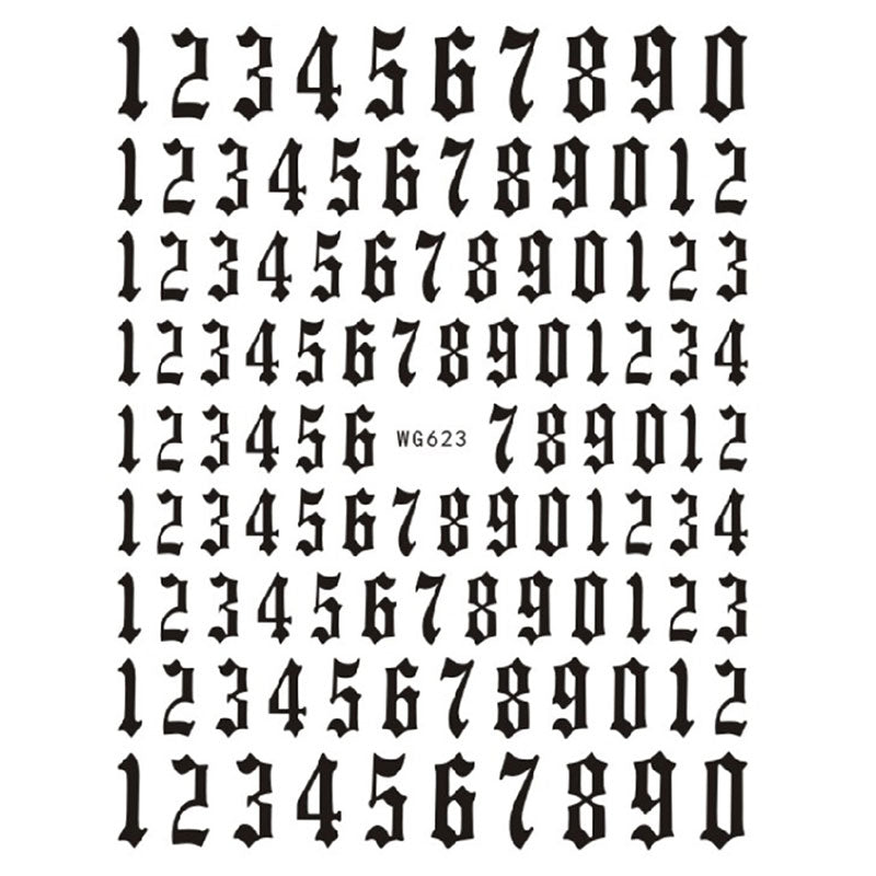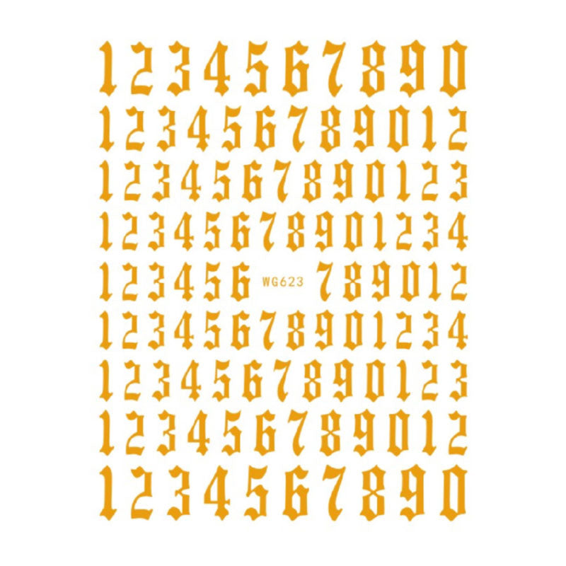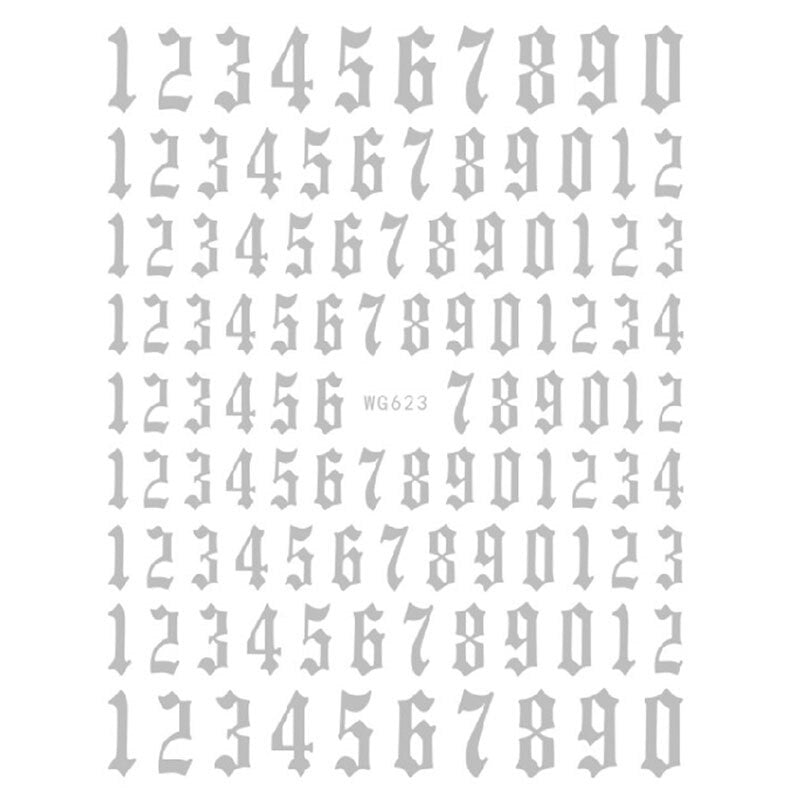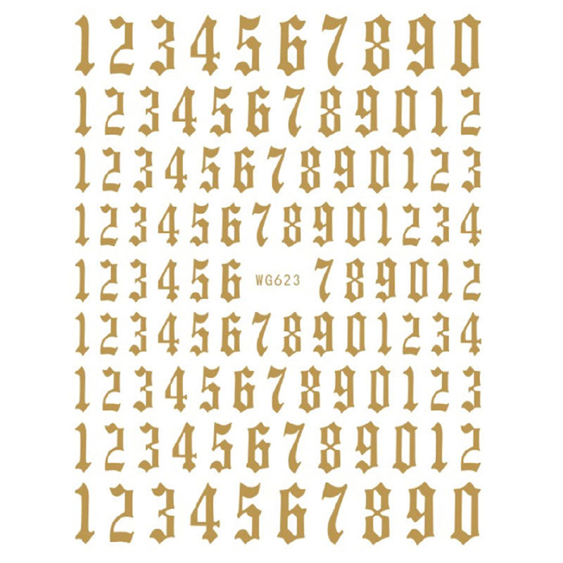 12-color Number Pattern Nail Sticker Decoration 3D Nail Art Stickers English Old Font Arabic Numeral Decals Designer Nail Foil