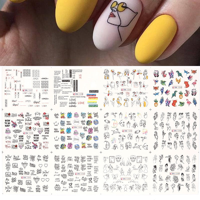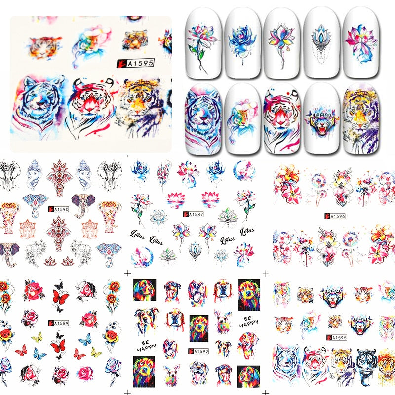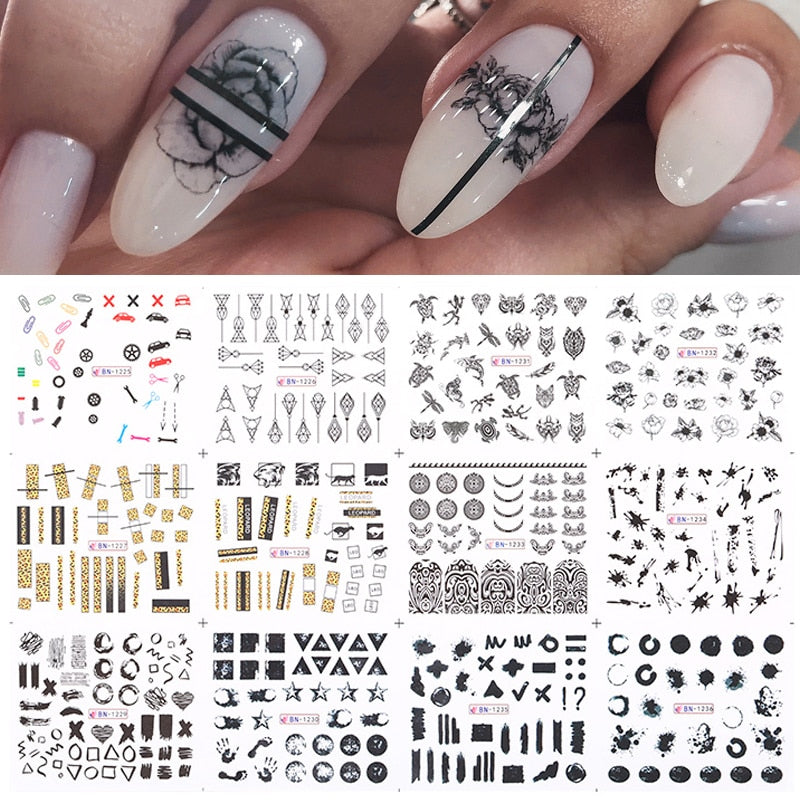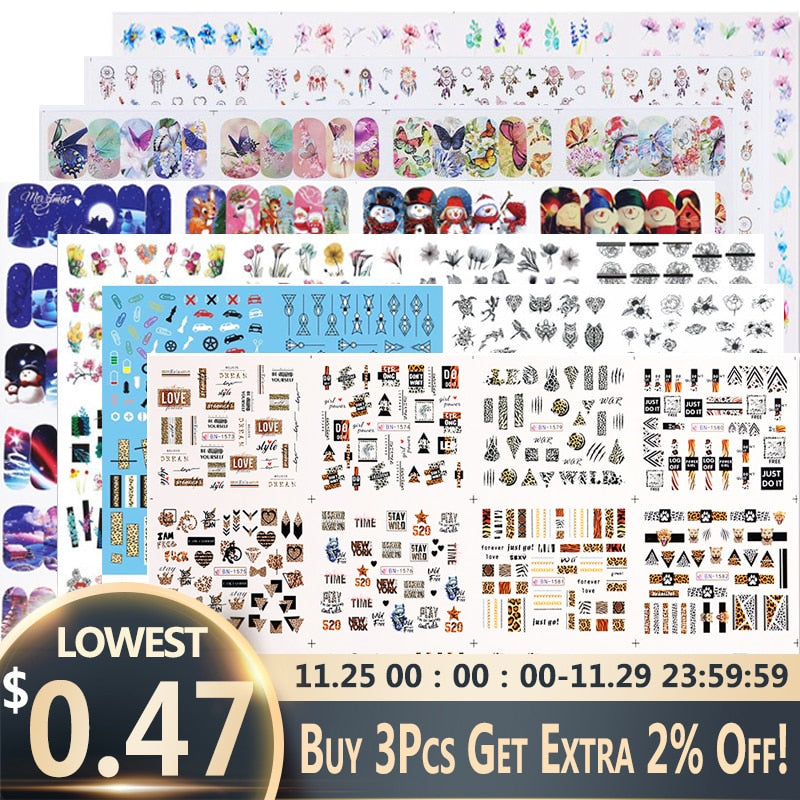 12 Designs Nail Stickers Set Snowflake Floral Geometric Nail Art Water Transfer Decals Sliders Flower Leaf Manicures Decoration