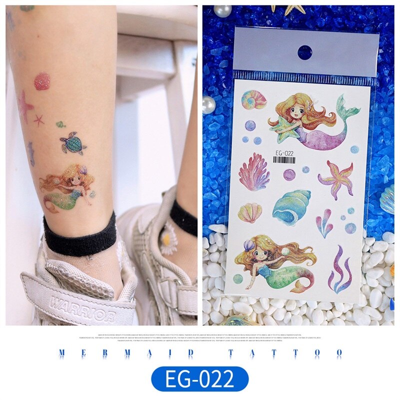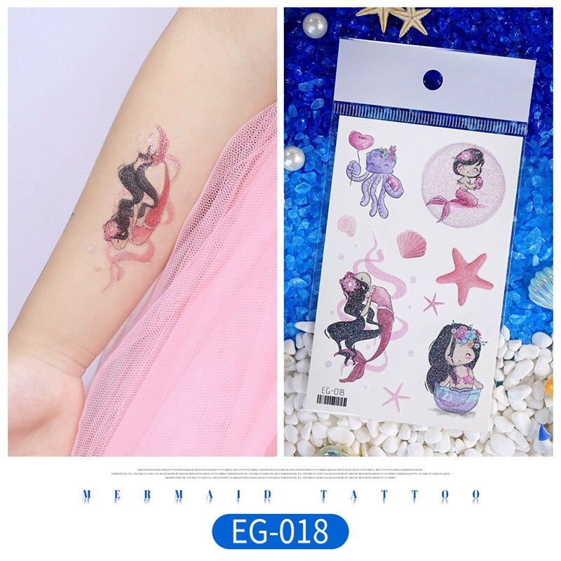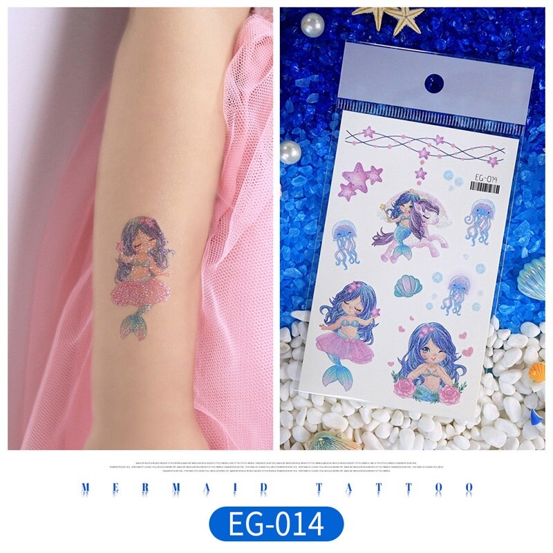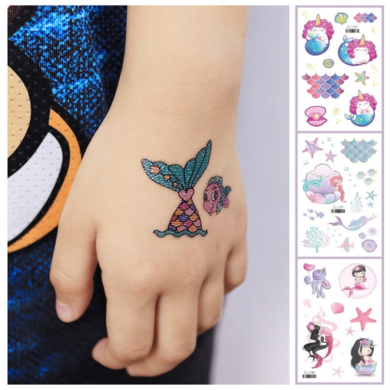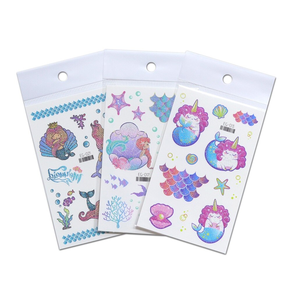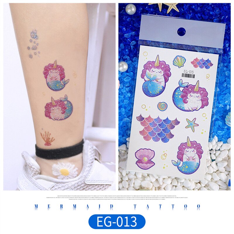 12 kinds Glitter Powder Temporary Tattoo Cartoon Mermaid Ocean Stickers tatouage temporaire Disposable Party Makeup