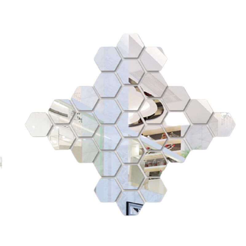 12pcs Hexagon Ball Room Bathroom Decor Acrylic Wall Mirror Irregular Mirror Living Room Decoration Mini Sticker Mirror