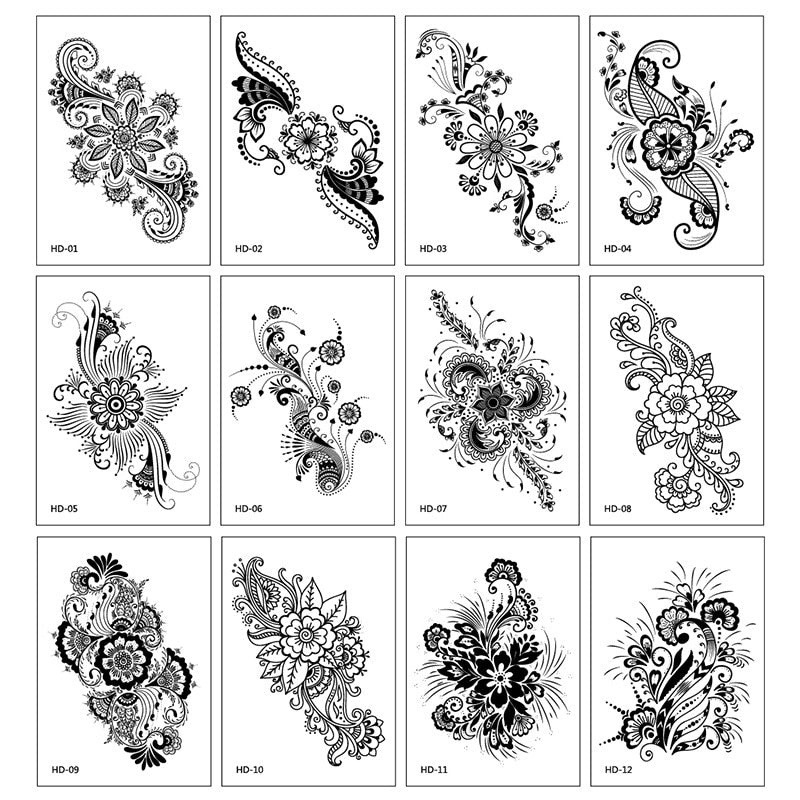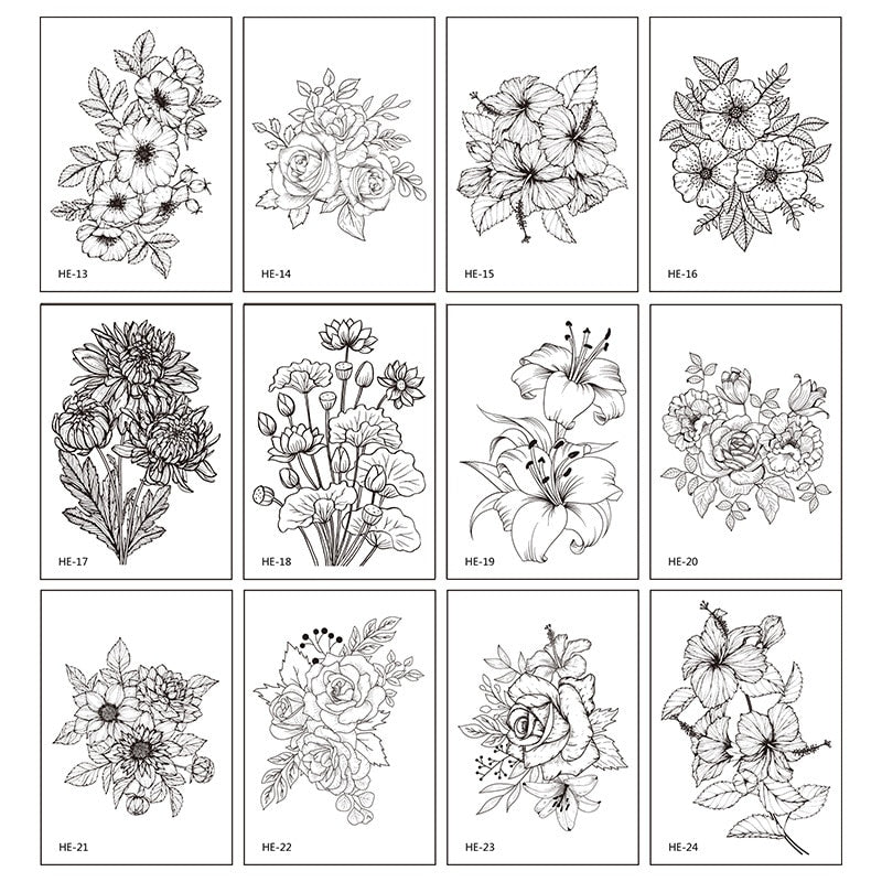 12Pcs/Lot Sketch Flower Temporary Tatoo Sticker Black and White Waterproof Flower Arm Tattoo Sticker Fake Tattoo for Woman Art
