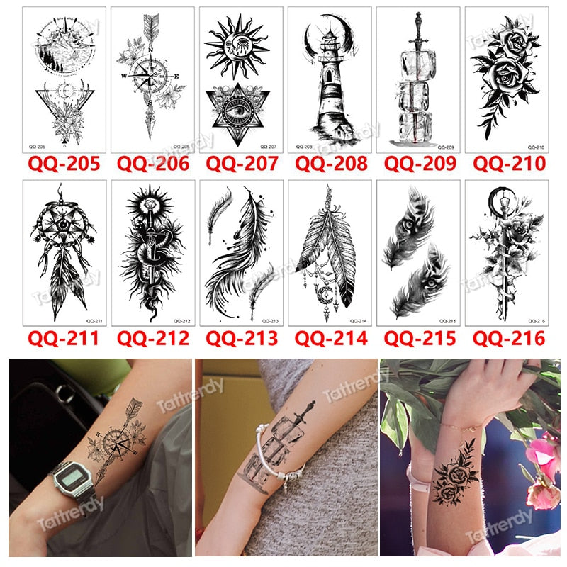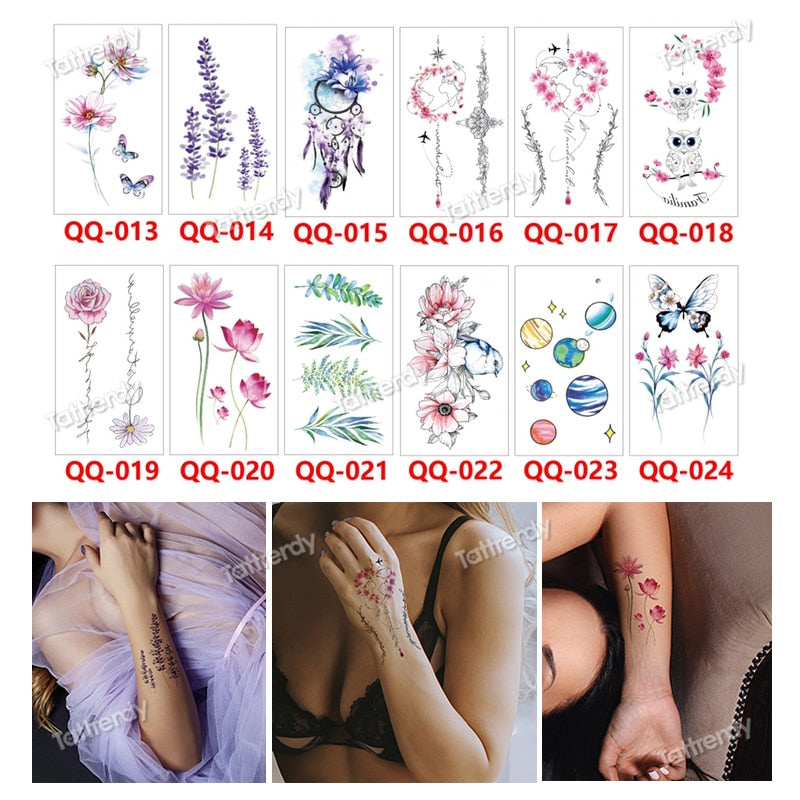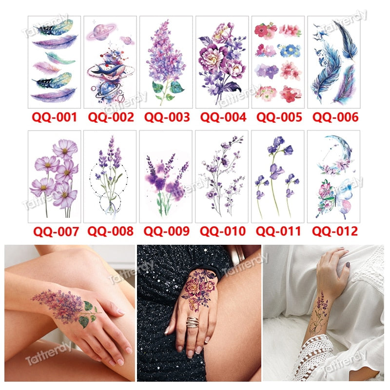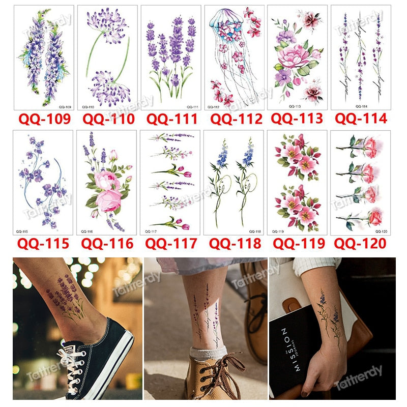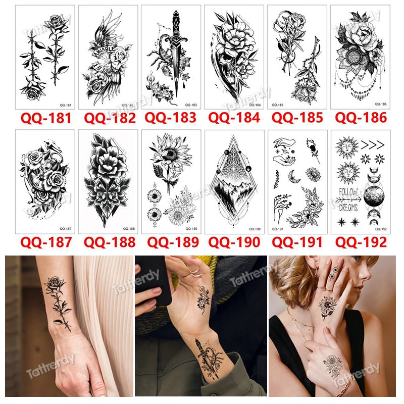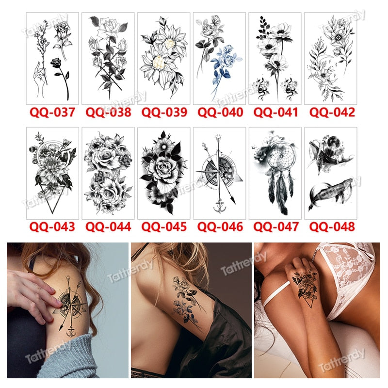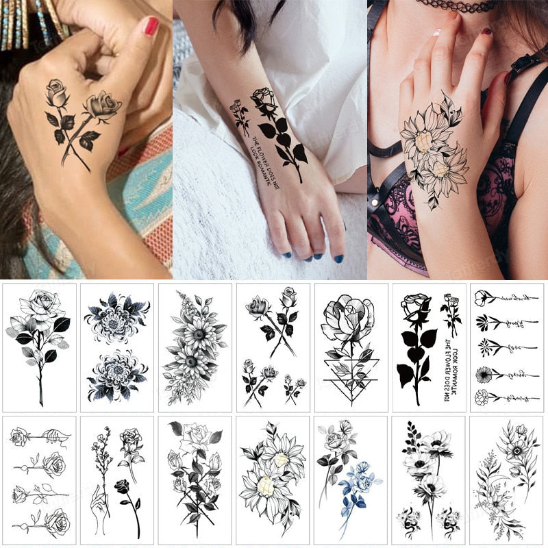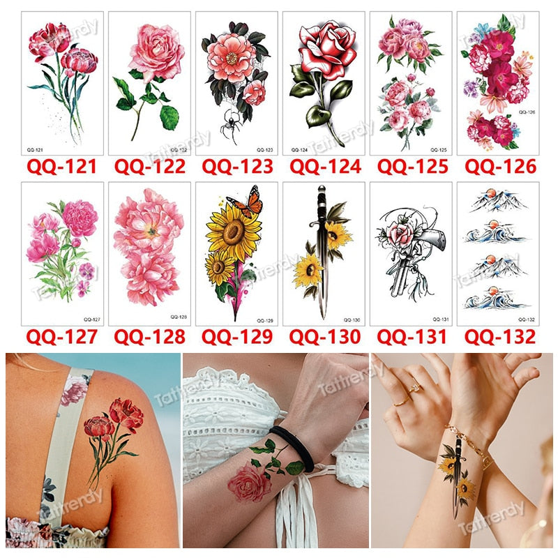 12Pcs/Set Waterproof Temporary Tattoo Sticker Small Rose Daisy Peony Flash Tatoo Flower Hand Ankle Wrist Fake Tatto For Body Art